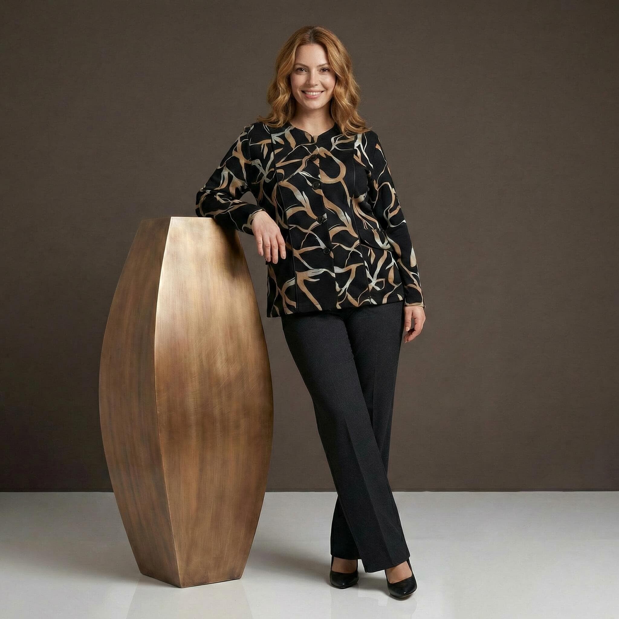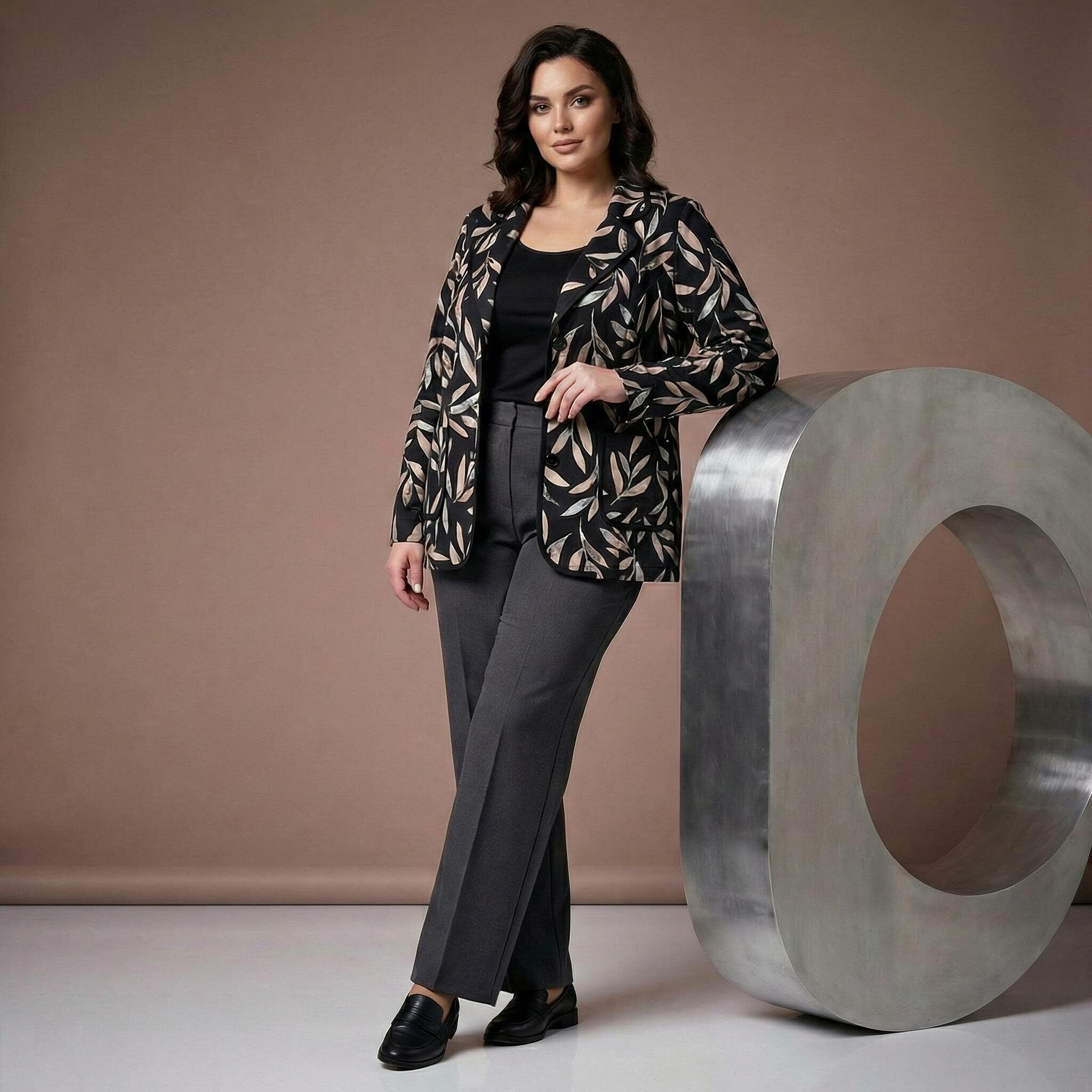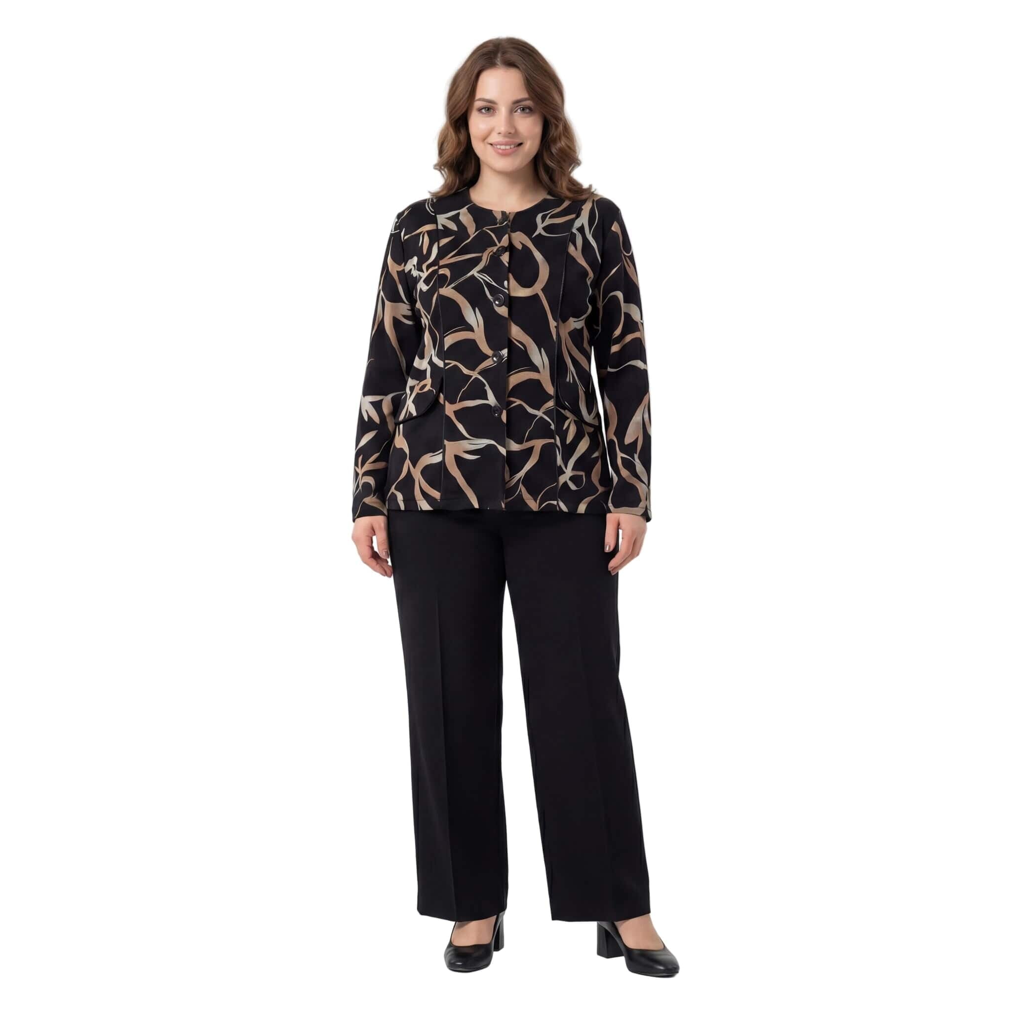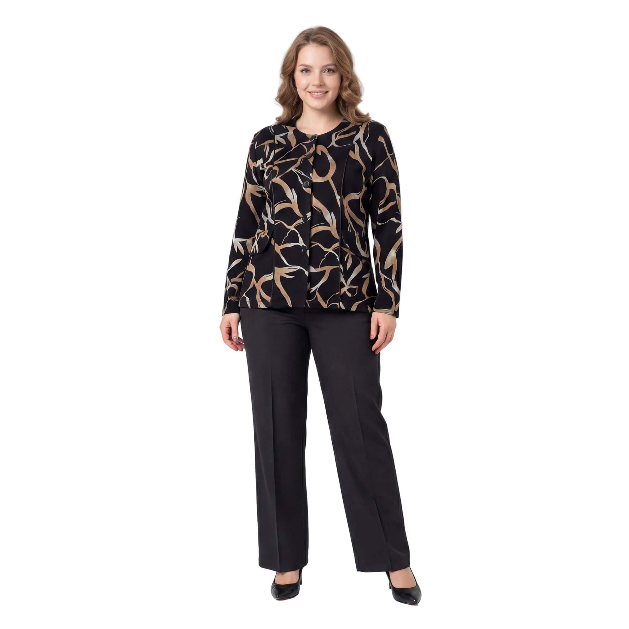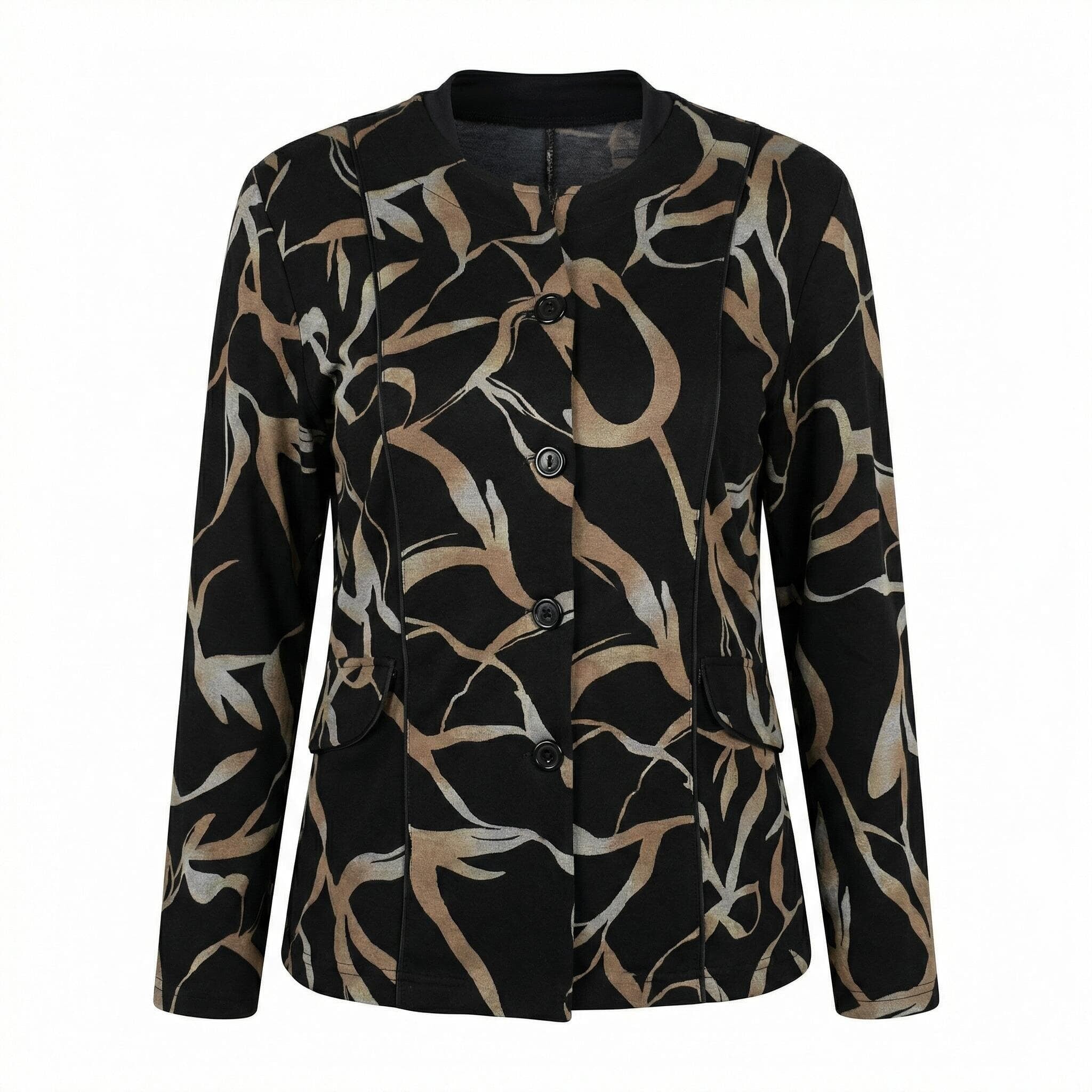 Κομψό μαύρο σακάκι μεγάλα μεγέθη με αφηρημένο σχέδιο
