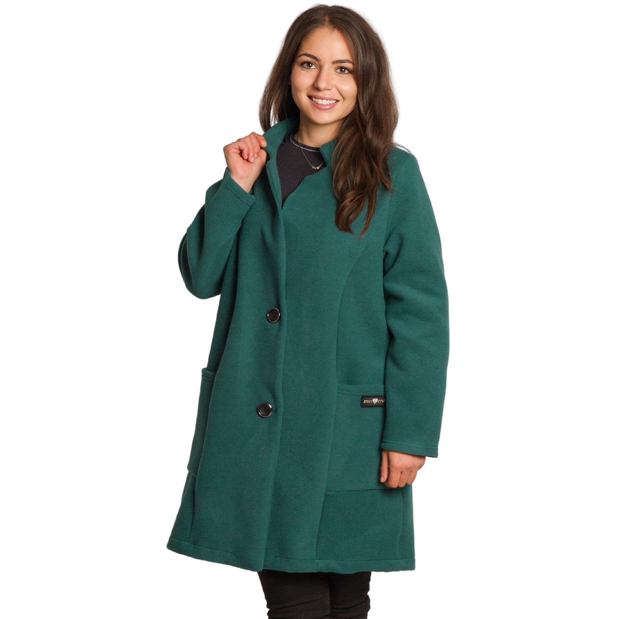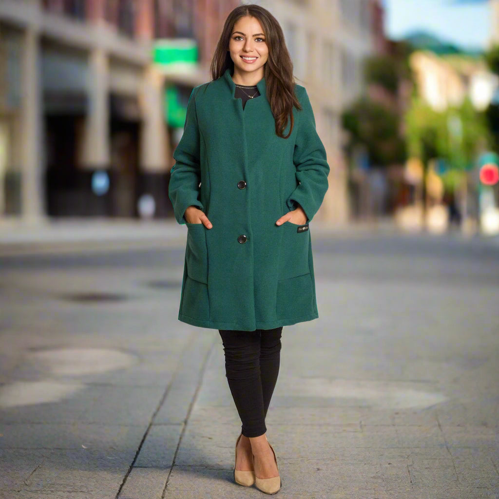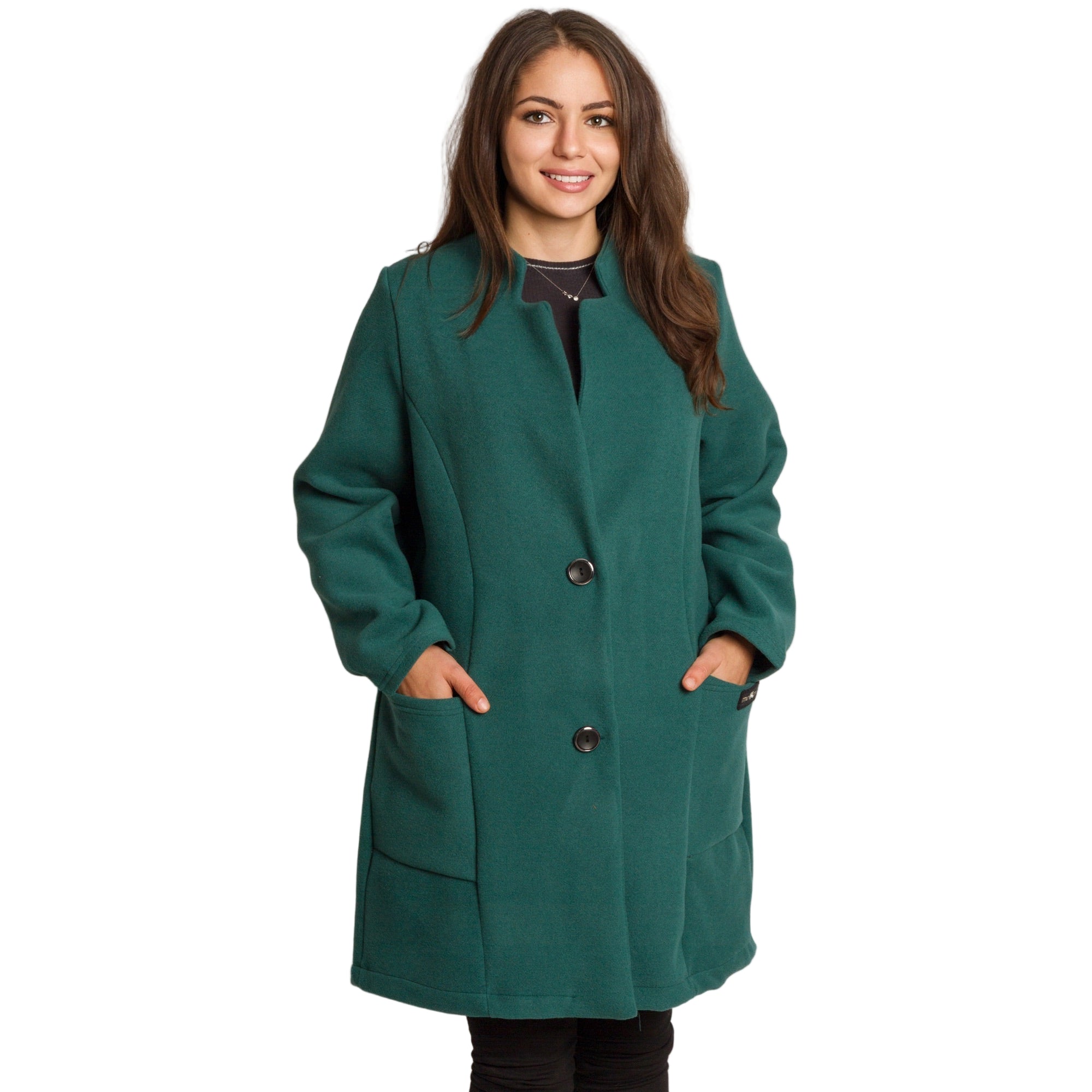 Μάξι παλτό σε πράσινο χρώμα με κουμπιά και άνετη γραμμή