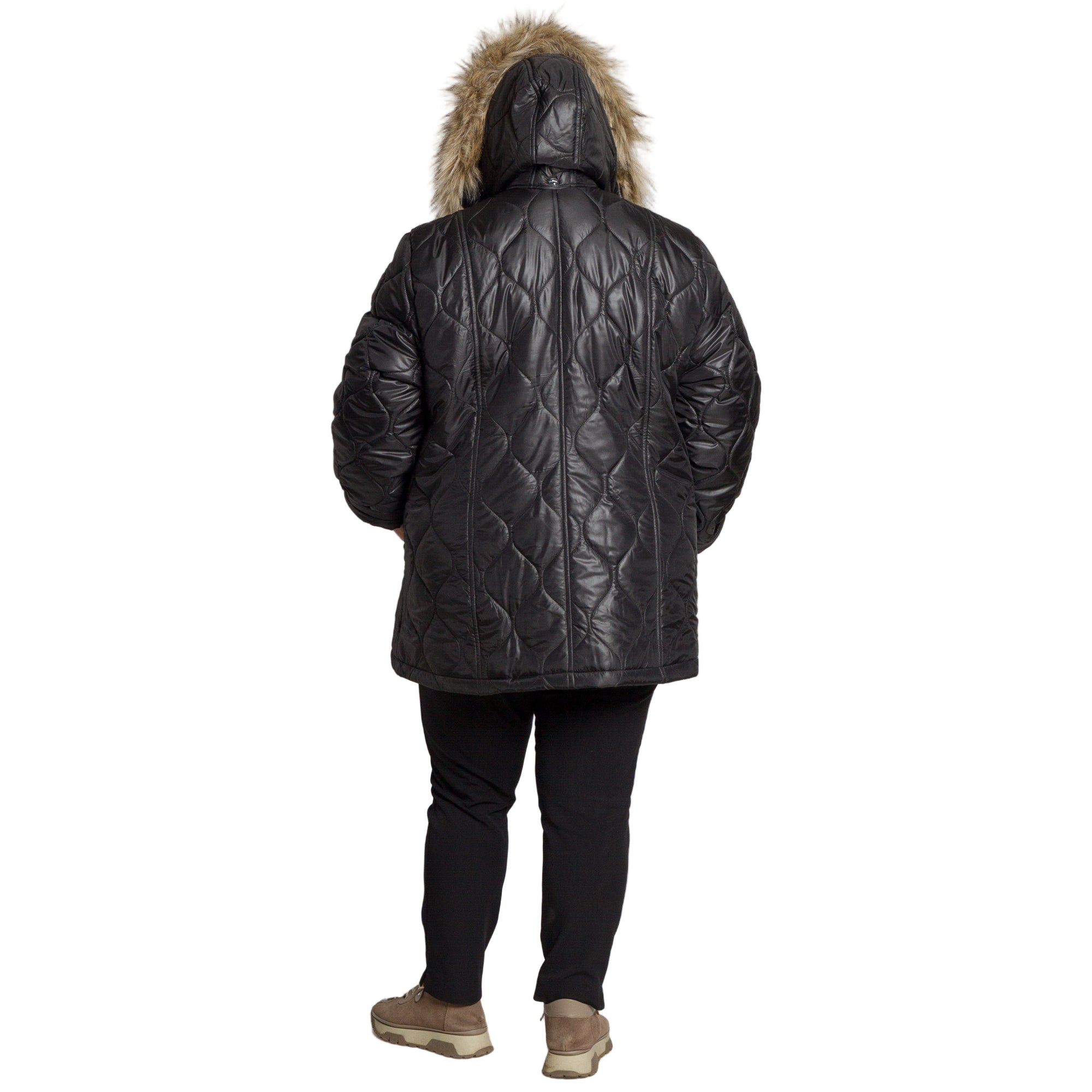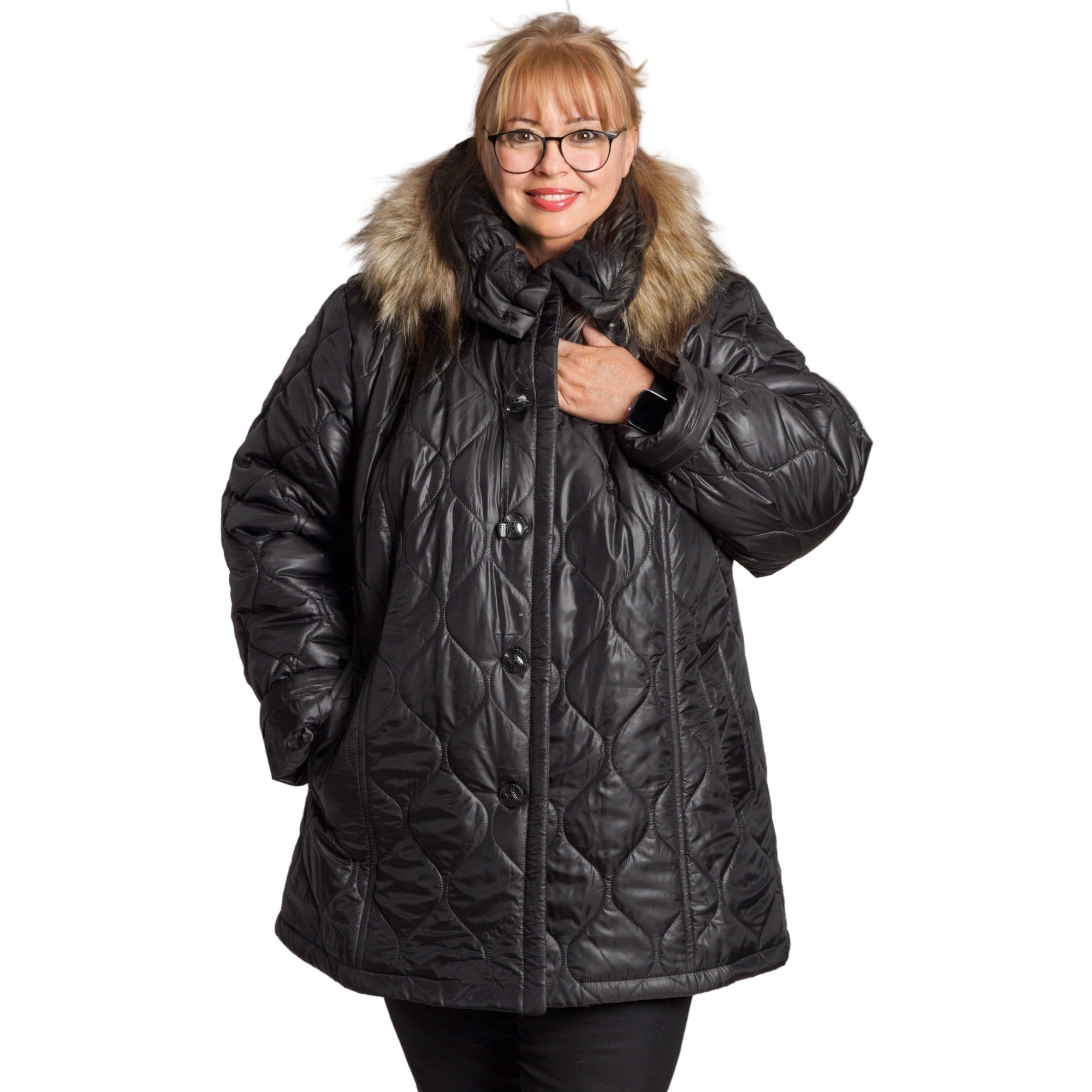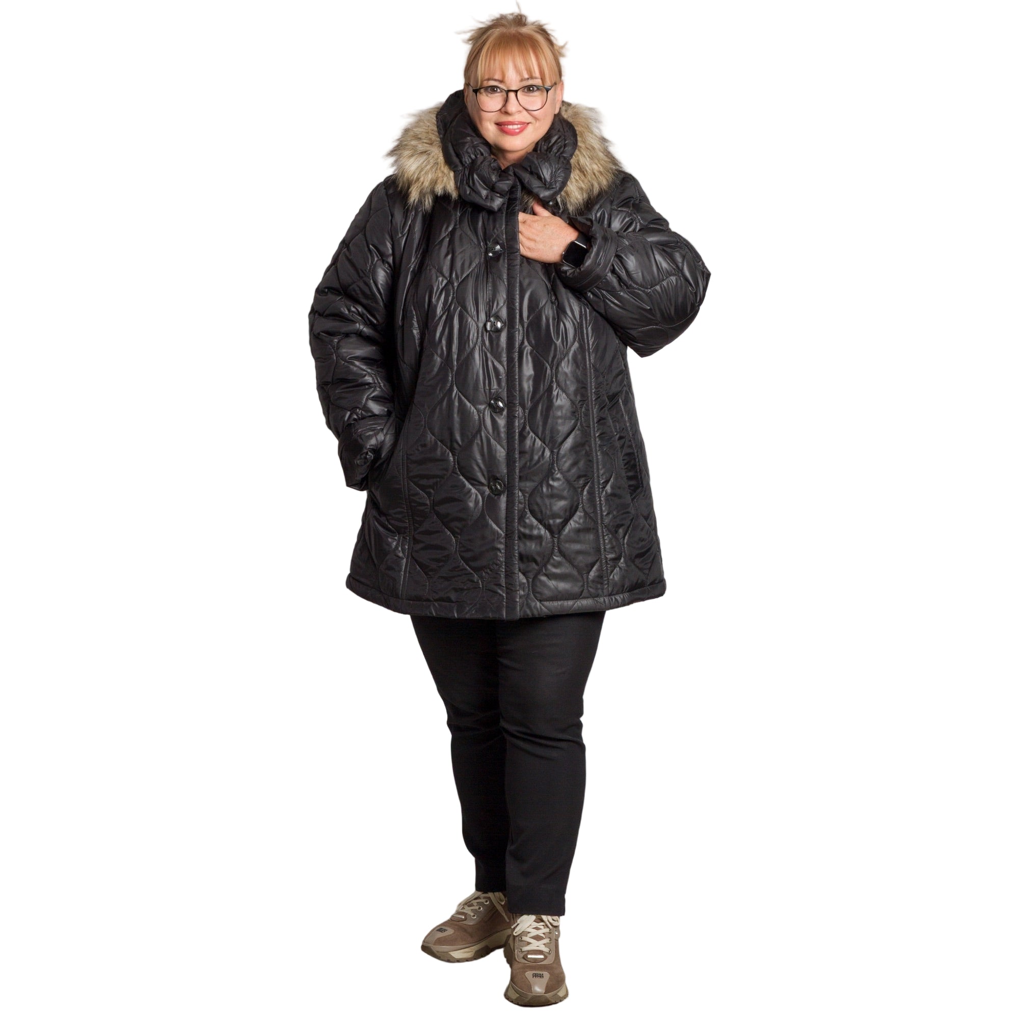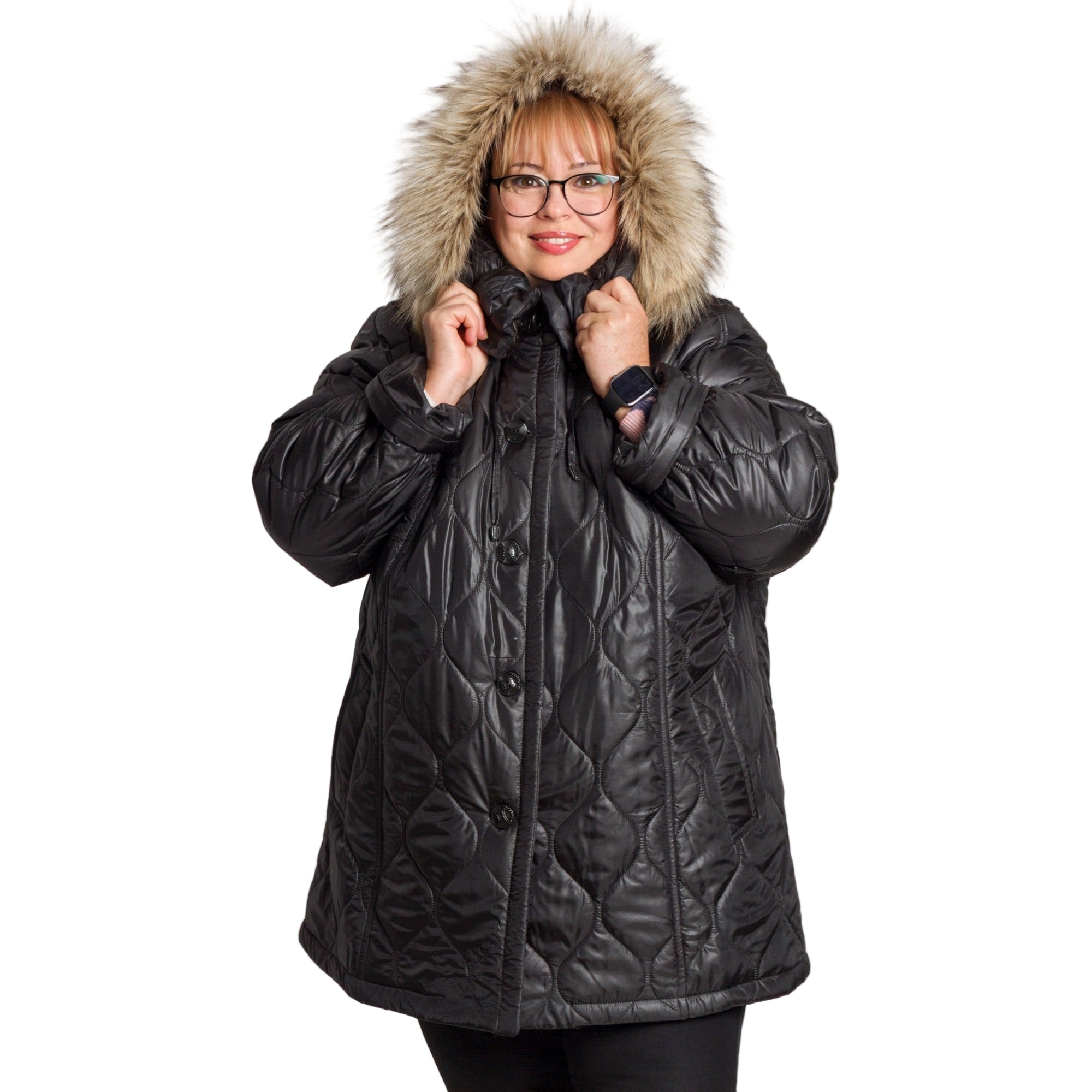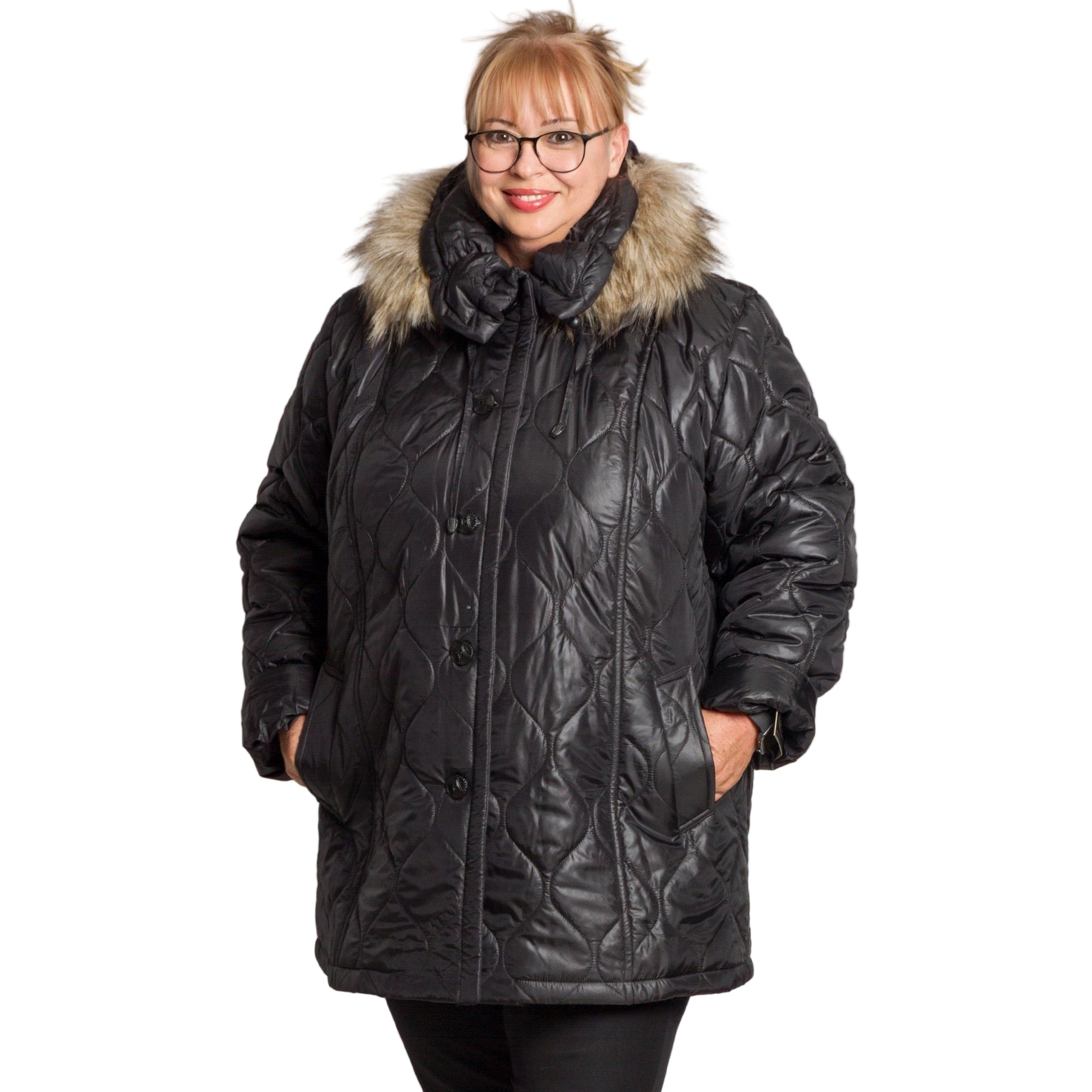 Μαύρο γυναικείο μπουφάν με κουκούλα σε μεγάλα μεγέθη