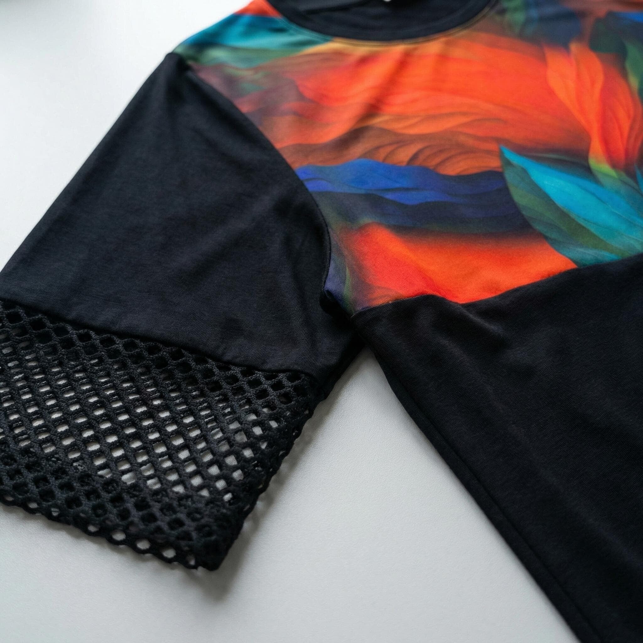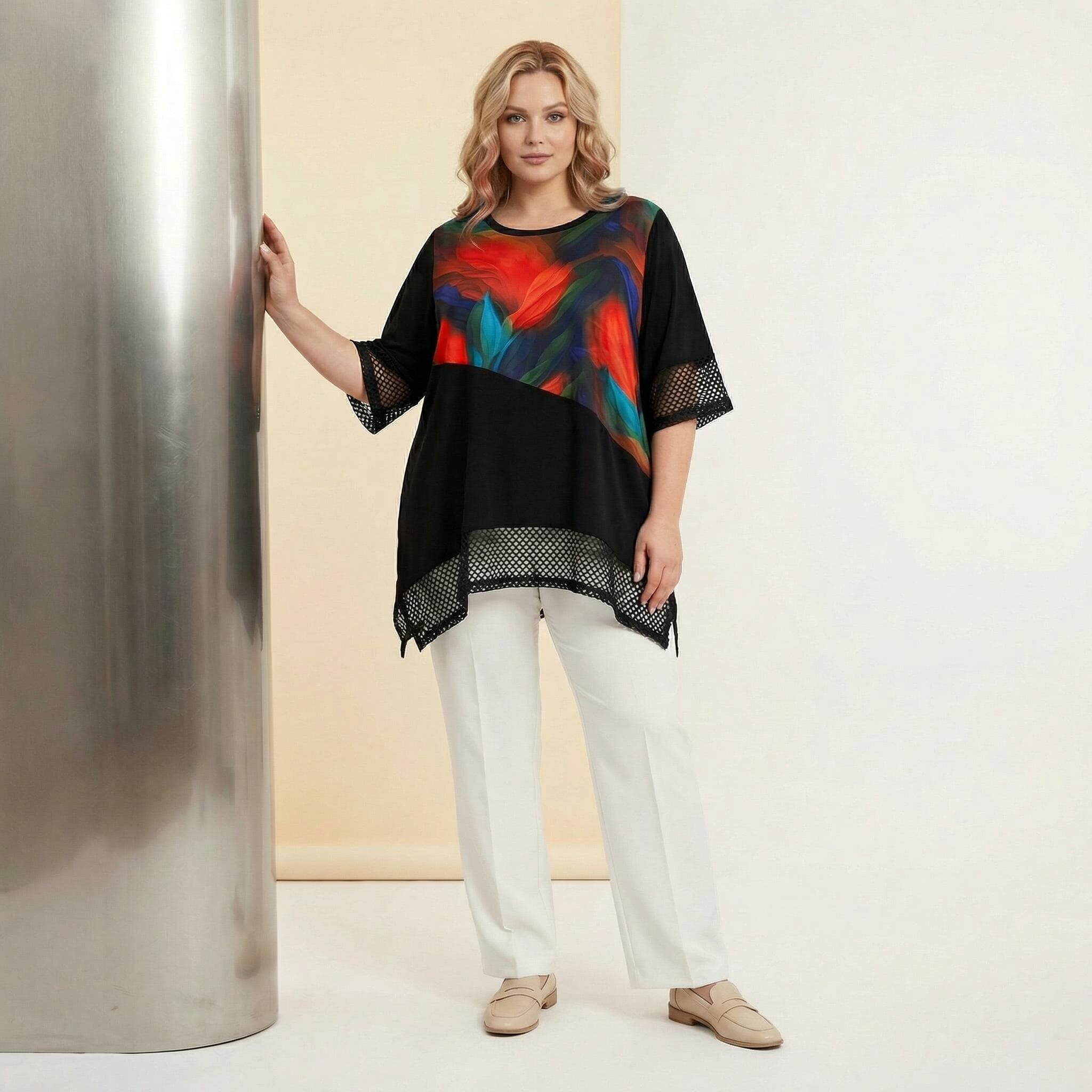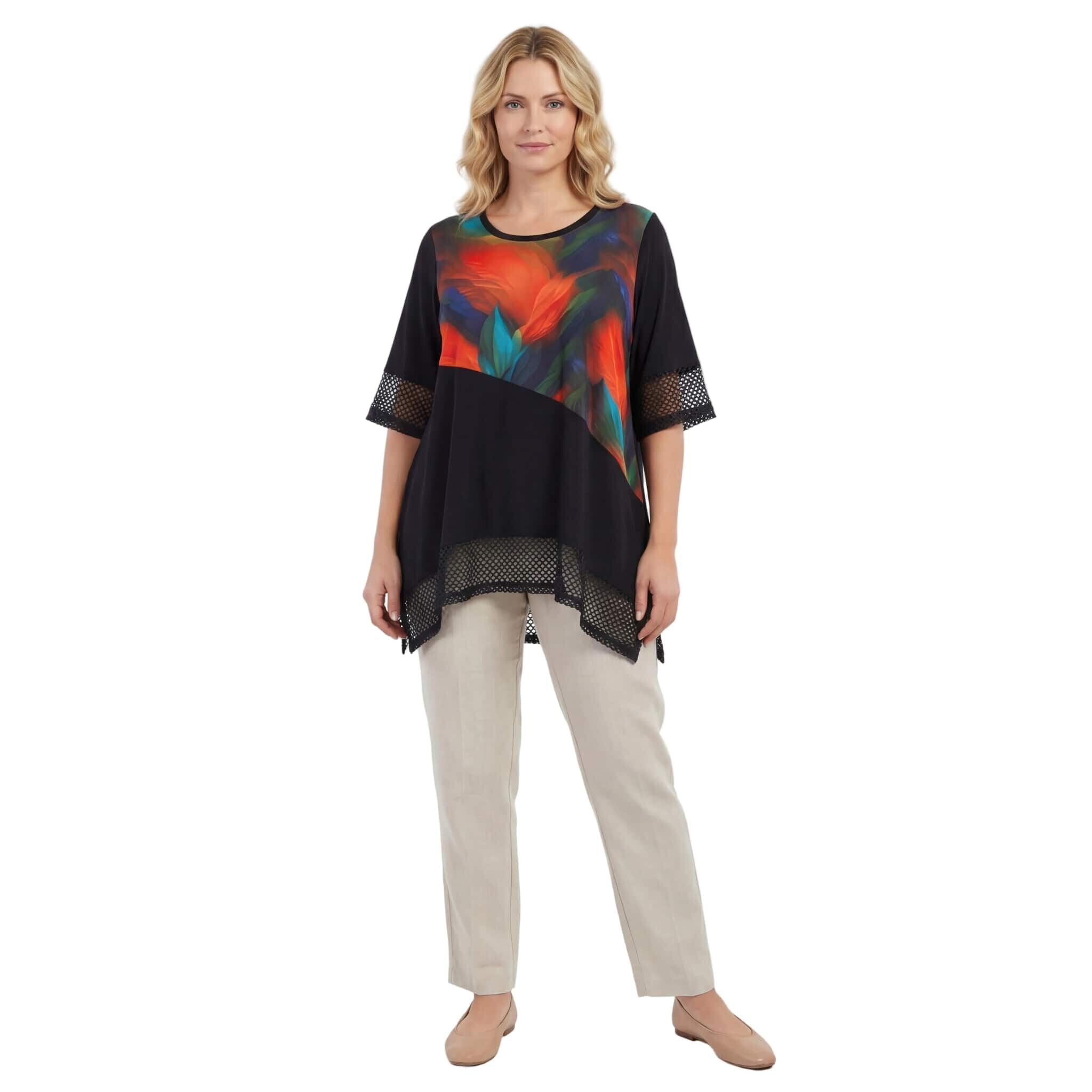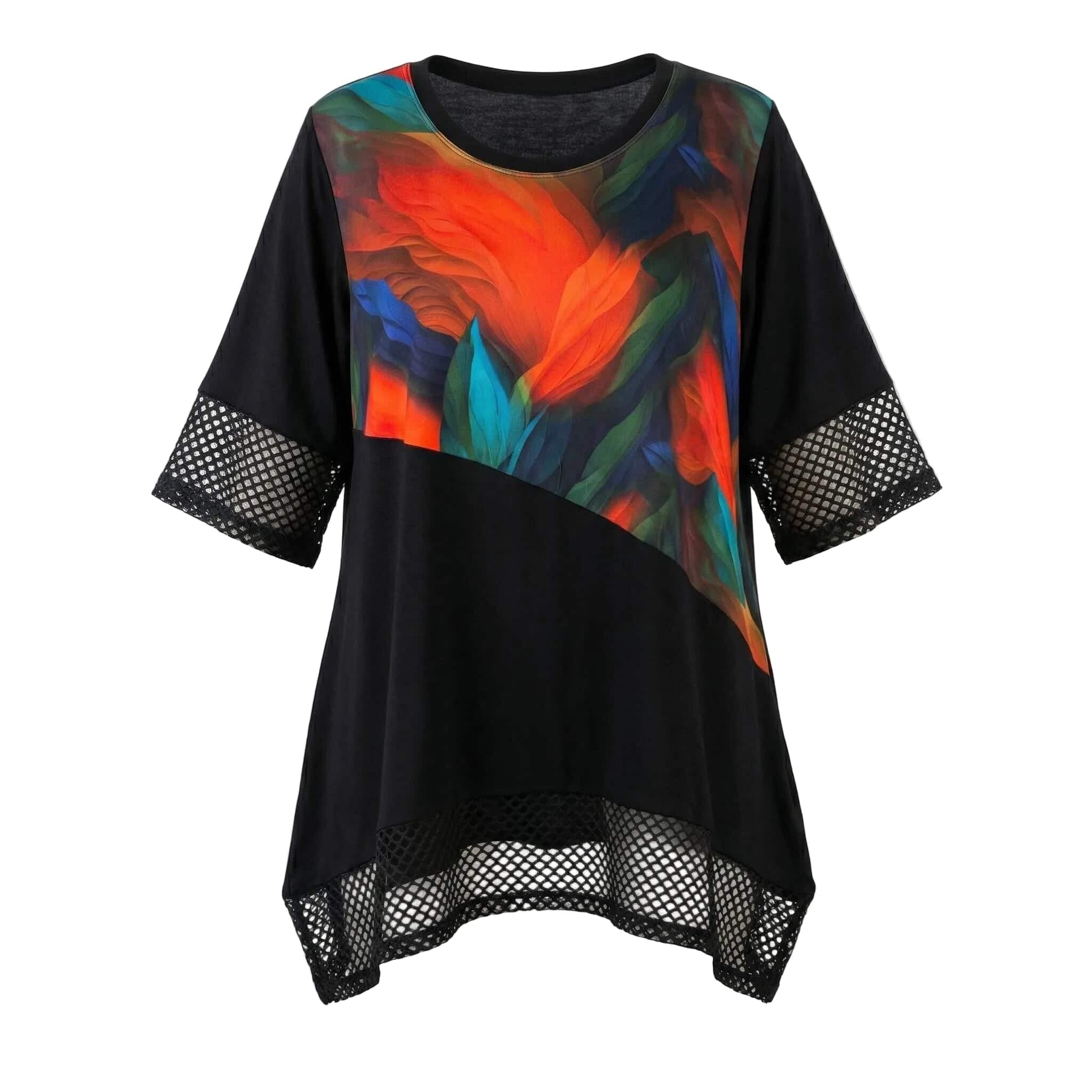 Μαύρη επίσημη τουνίκ σε μεγάλα μεγέθη με δίχτυ και ασύμμετρη γραμμή