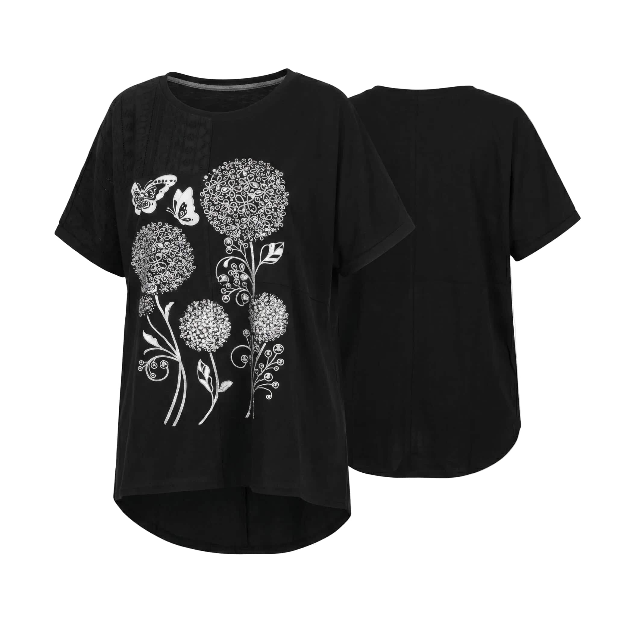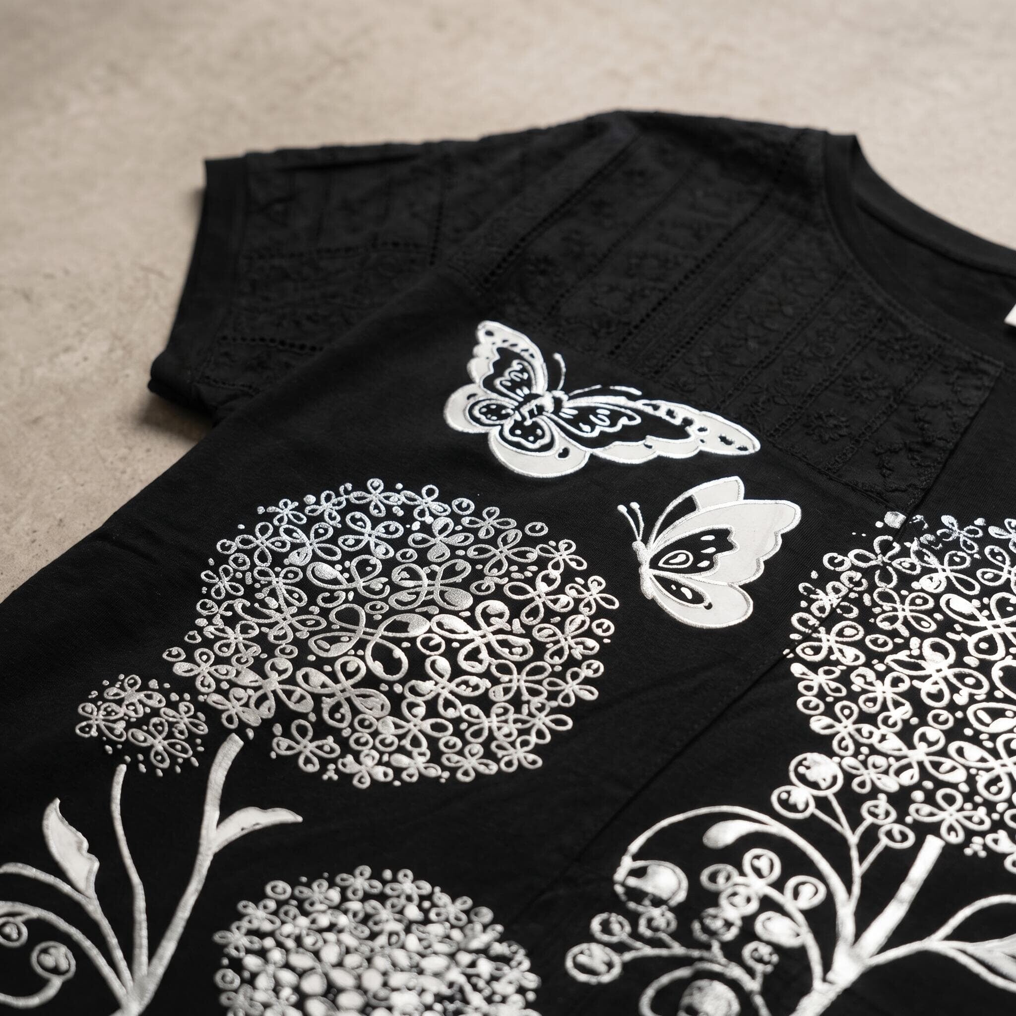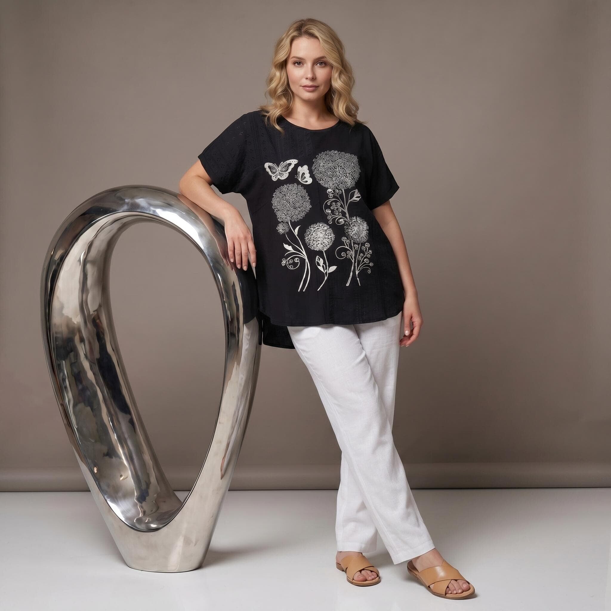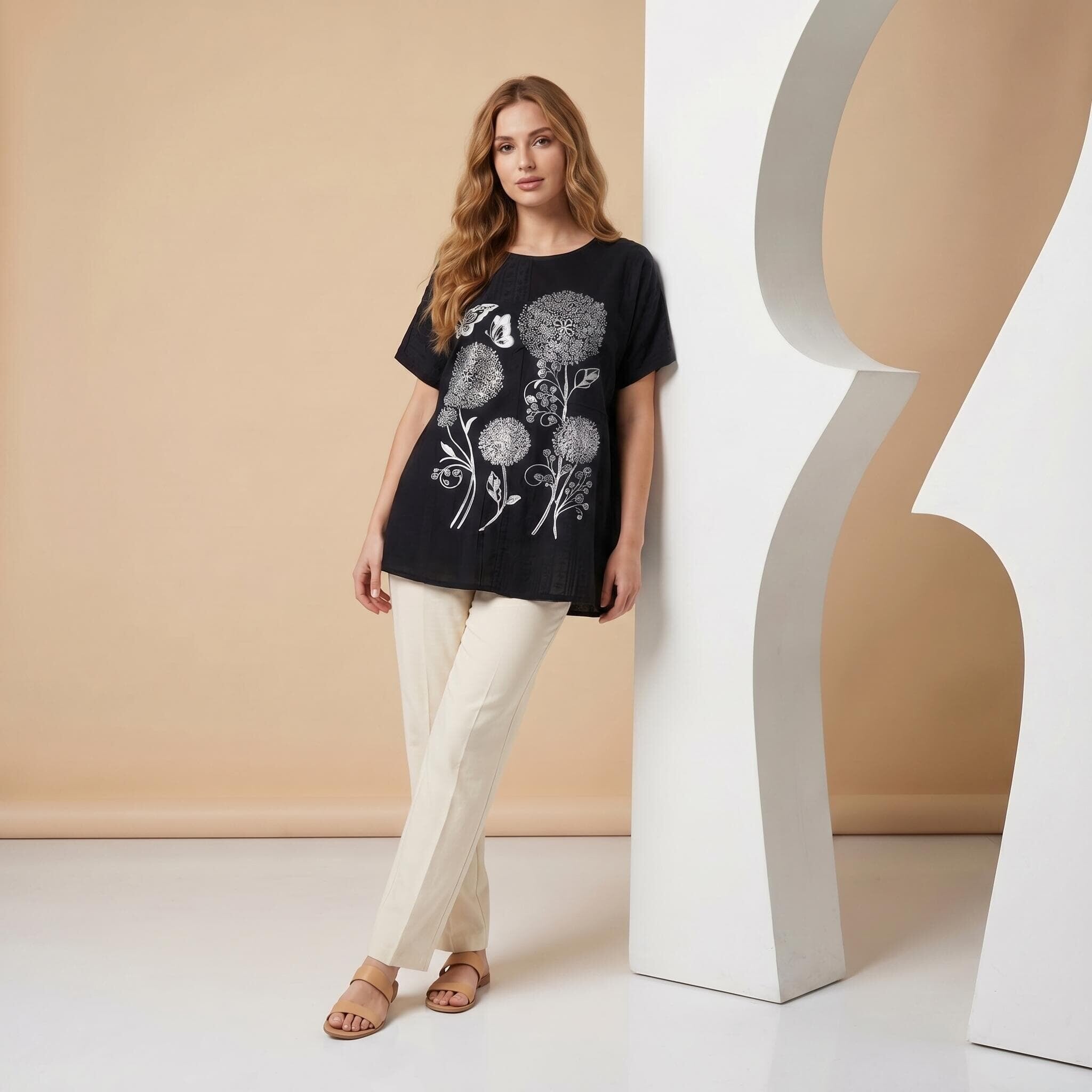 Μαύρη καλοκαιρινή μάξι τουνίκ με εντυπωσιακό απλικέ λουλουδιών