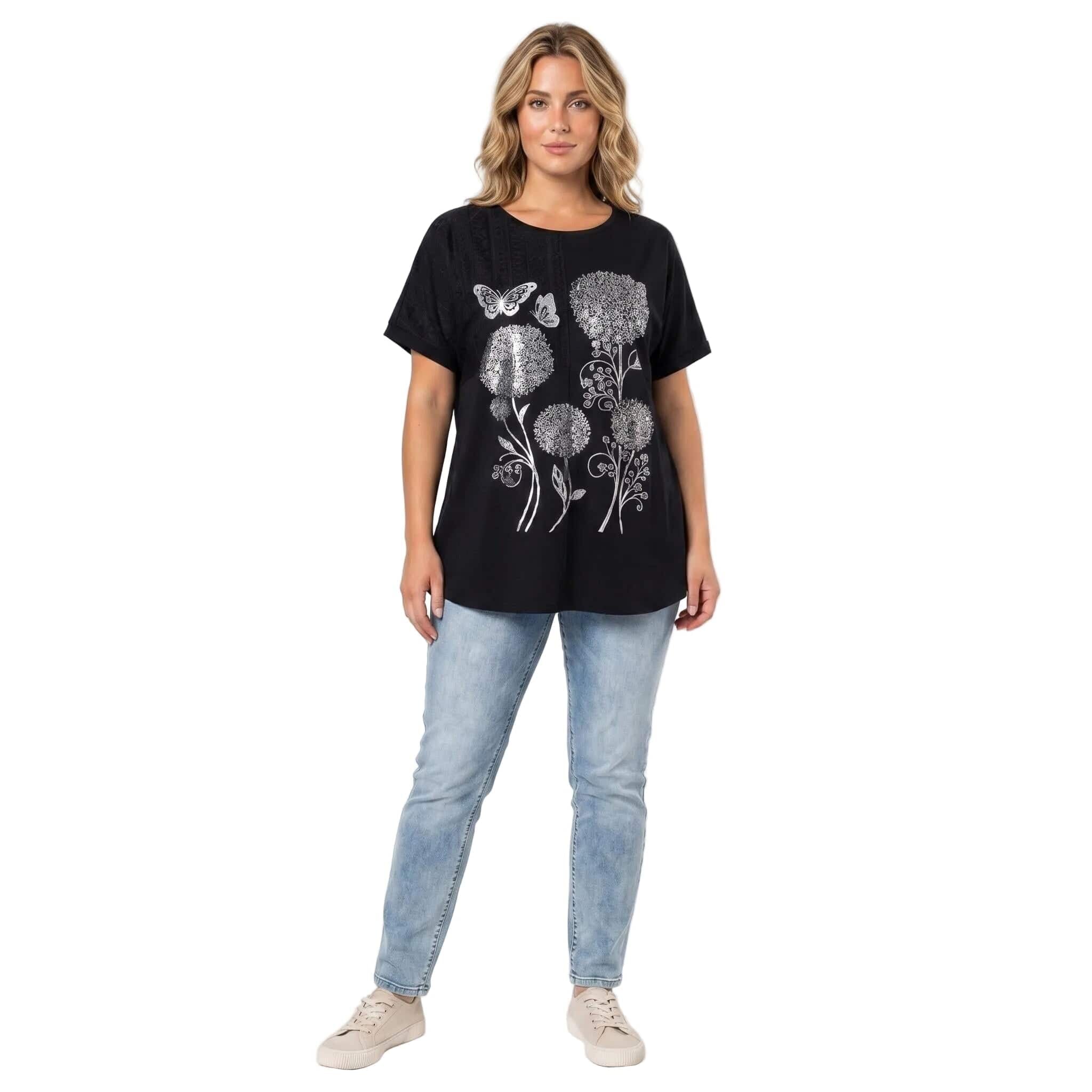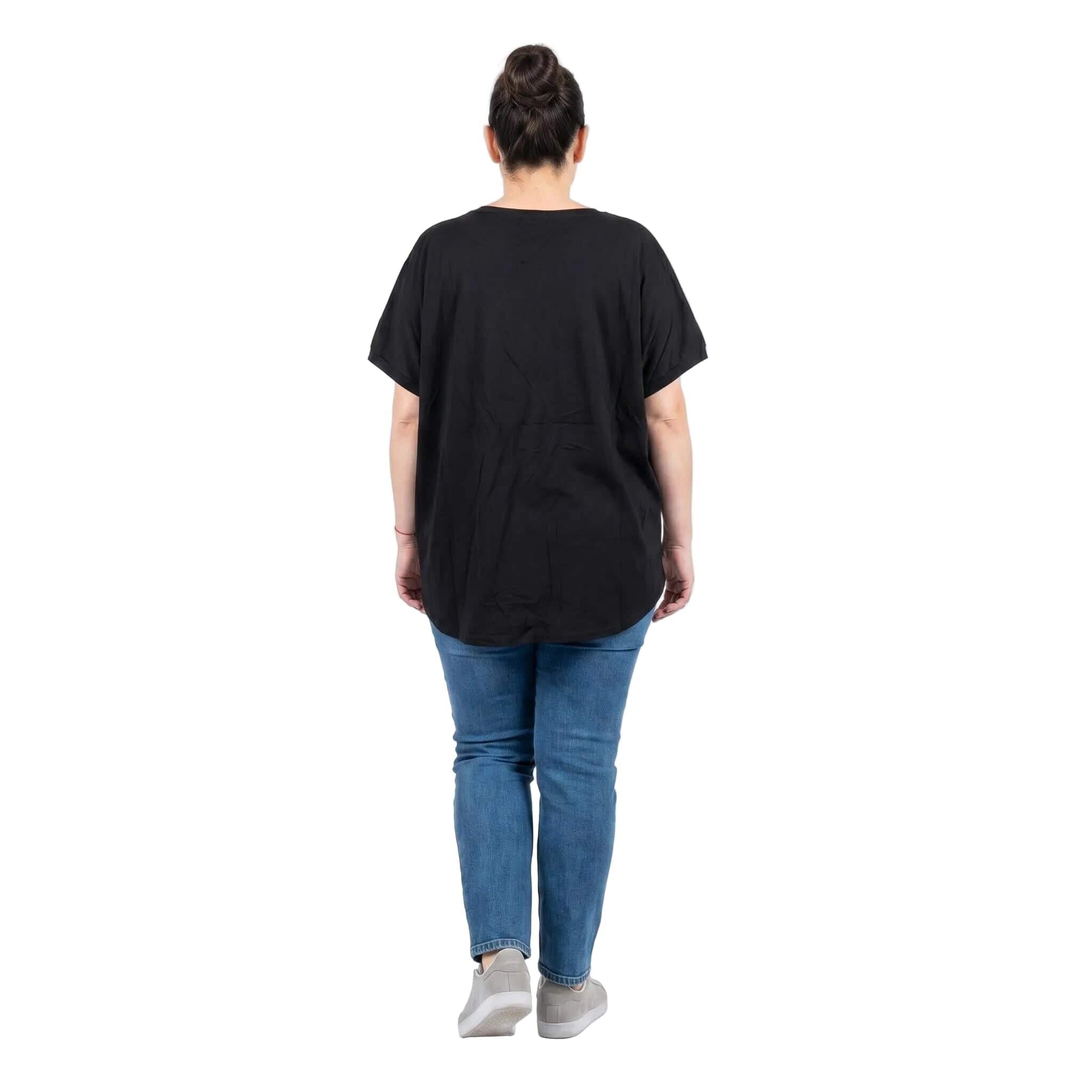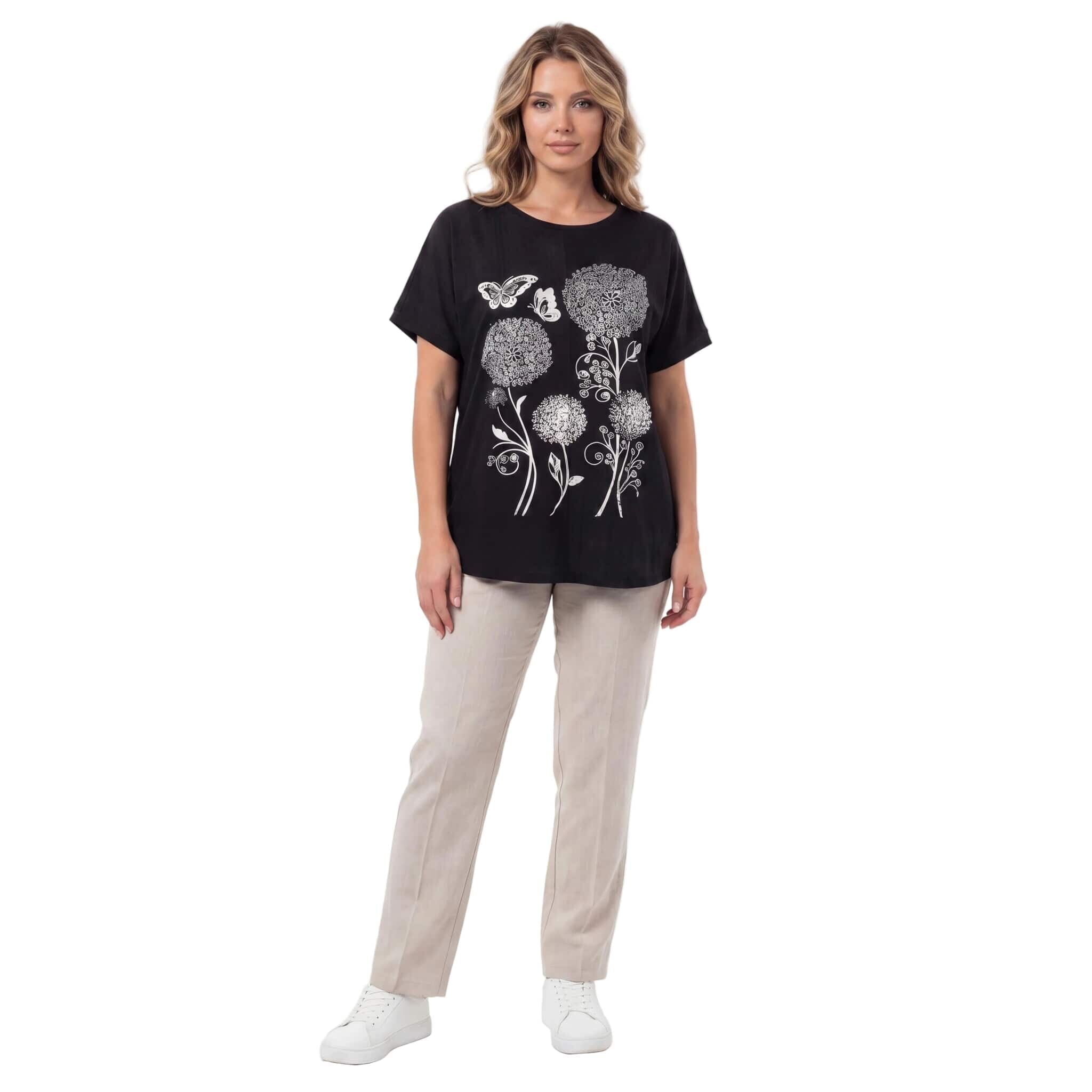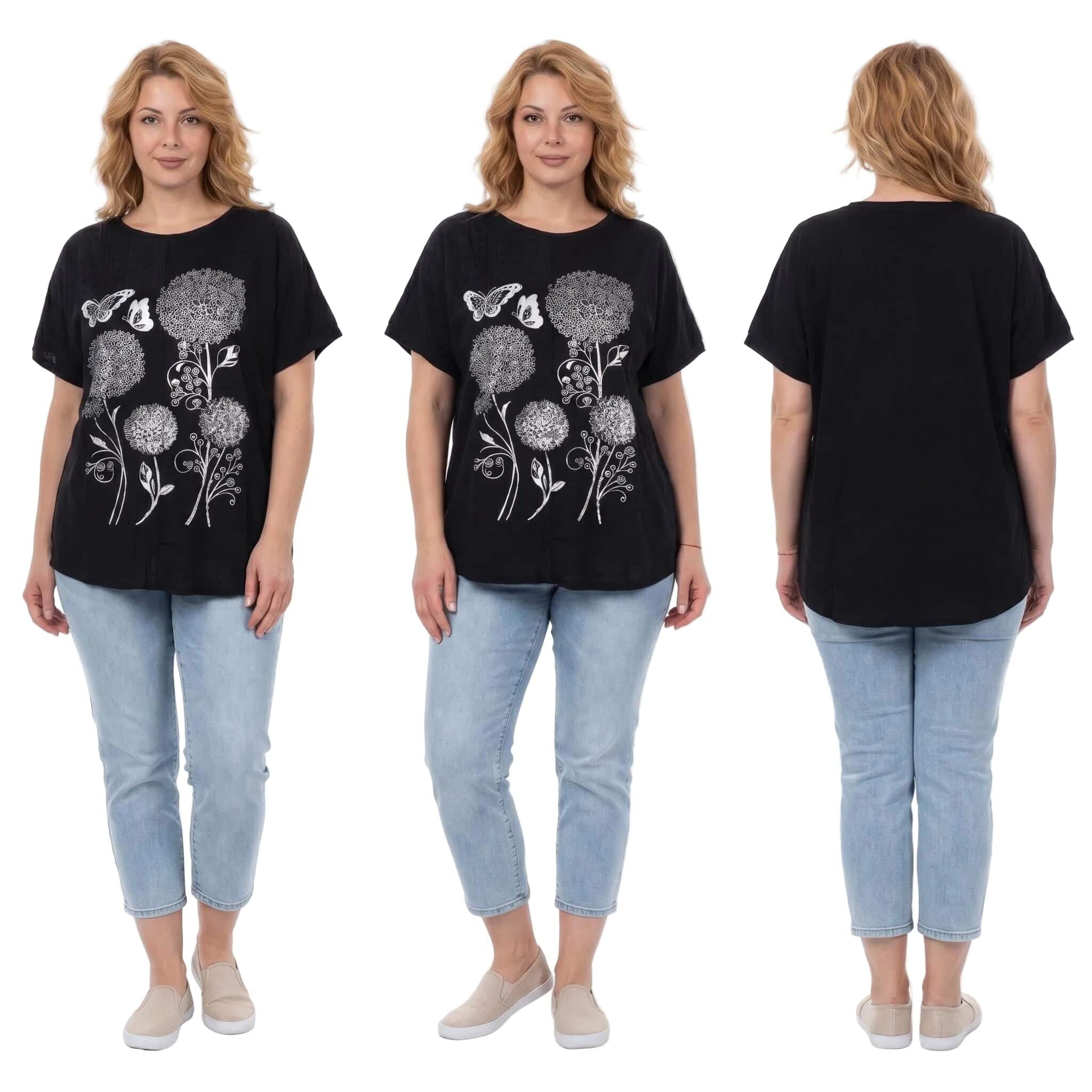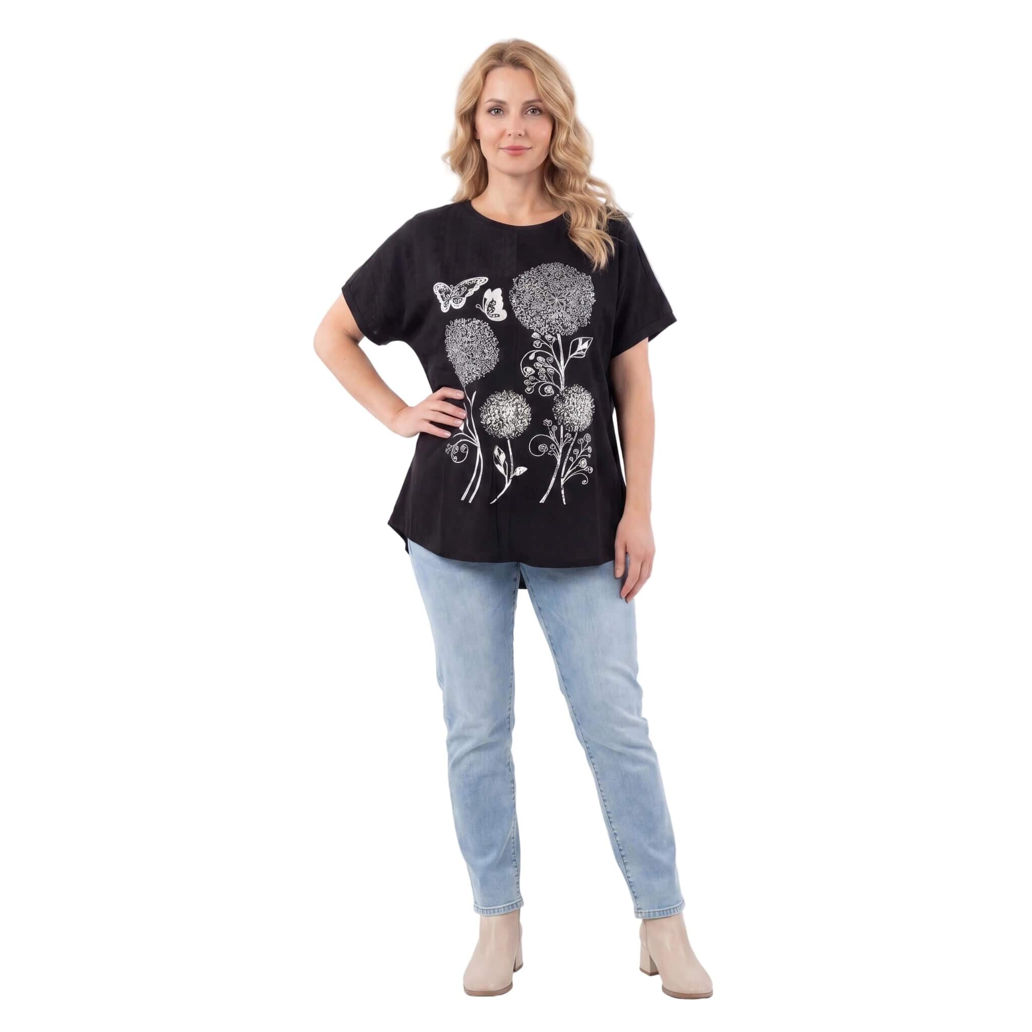 Μαύρη καλοκαιρινή μάξι τουνίκ με εντυπωσιακό απλικέ λουλουδιών