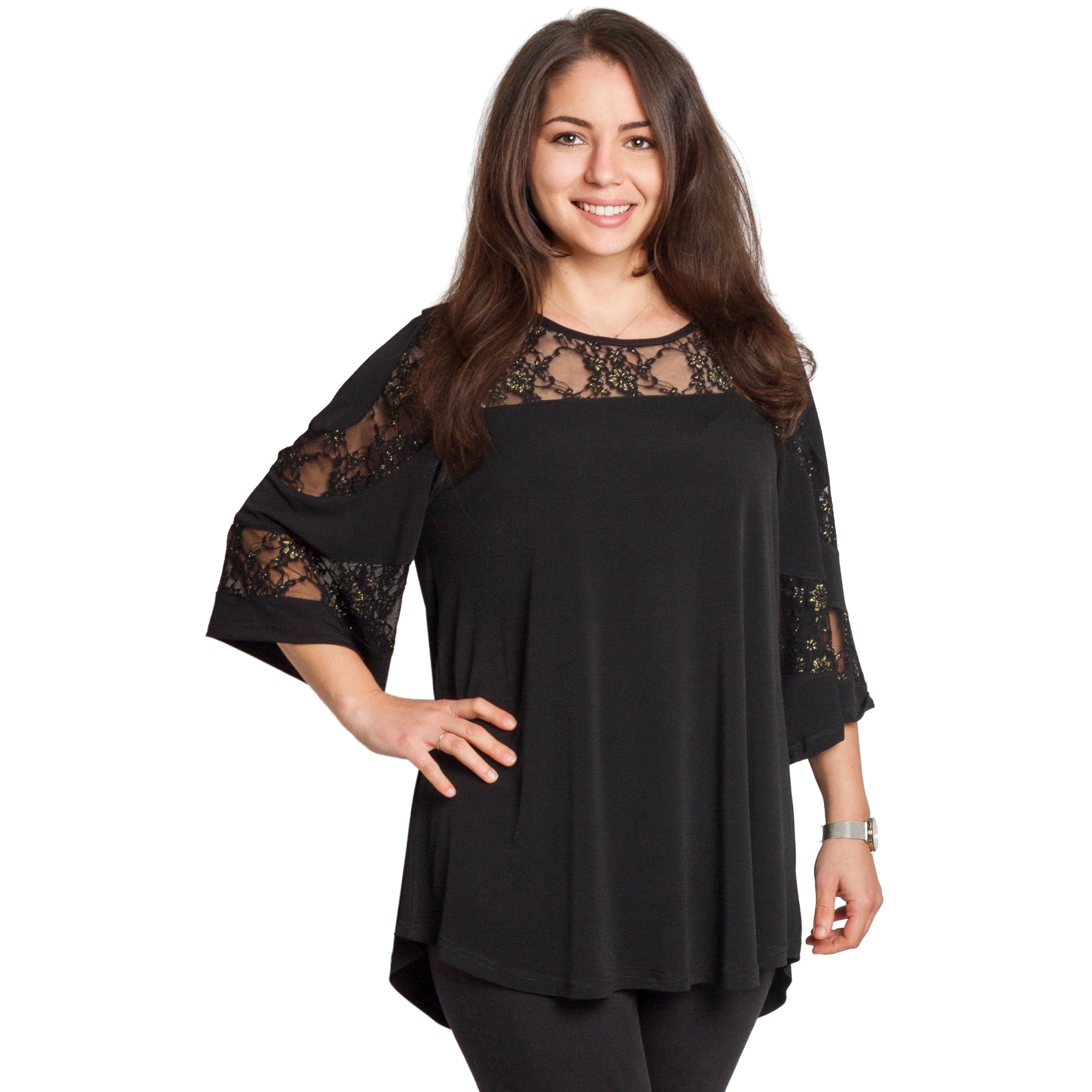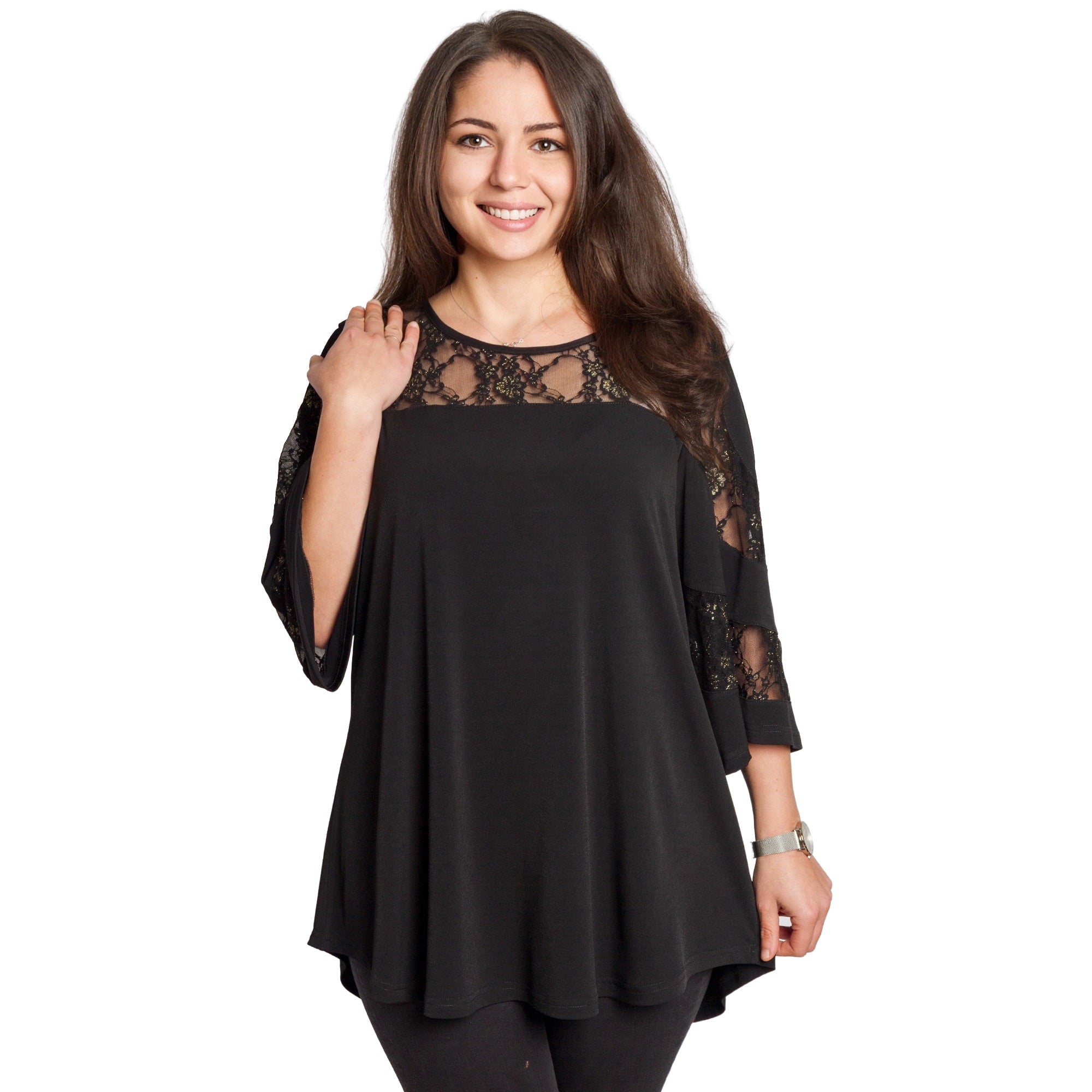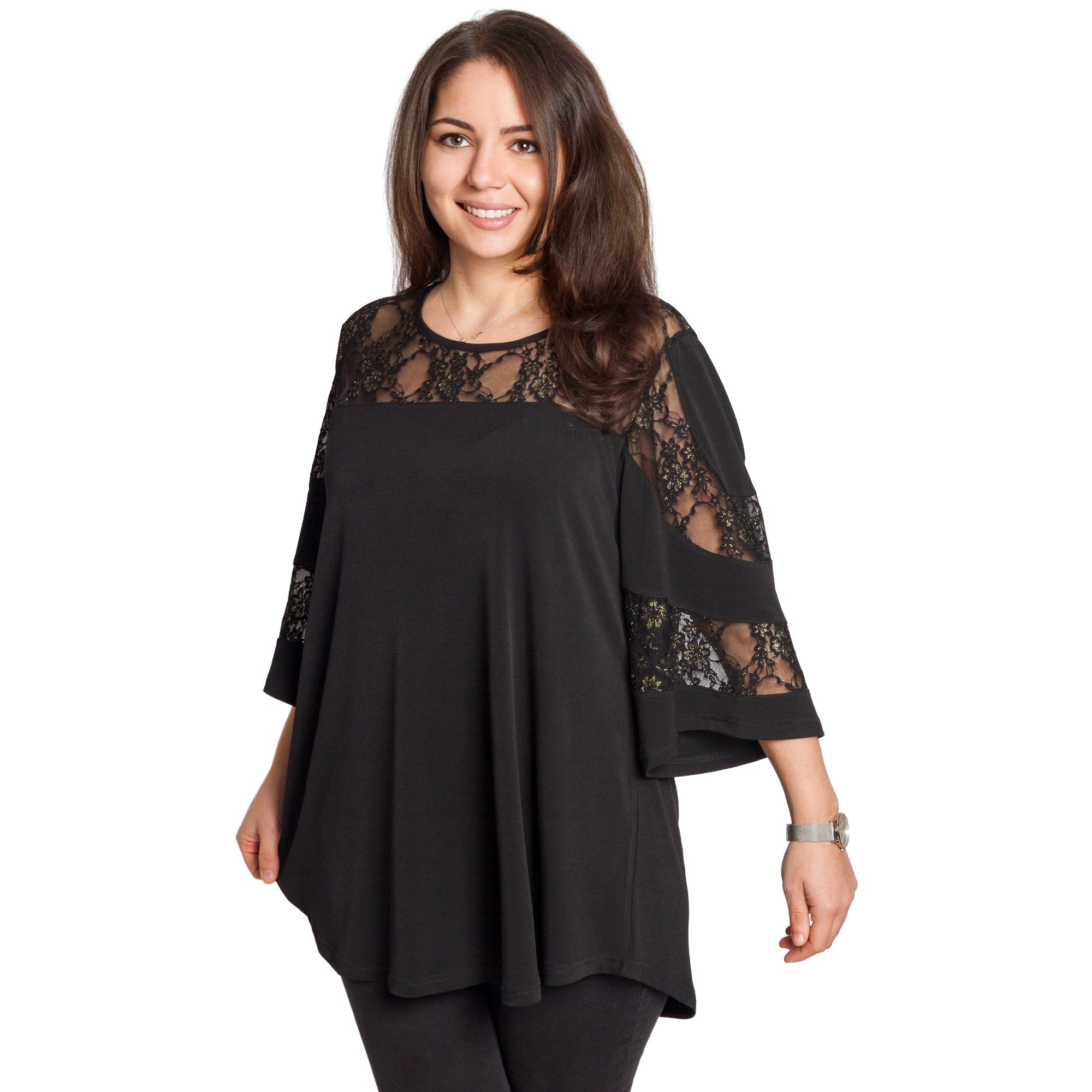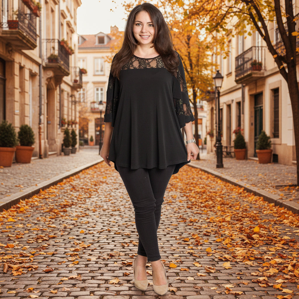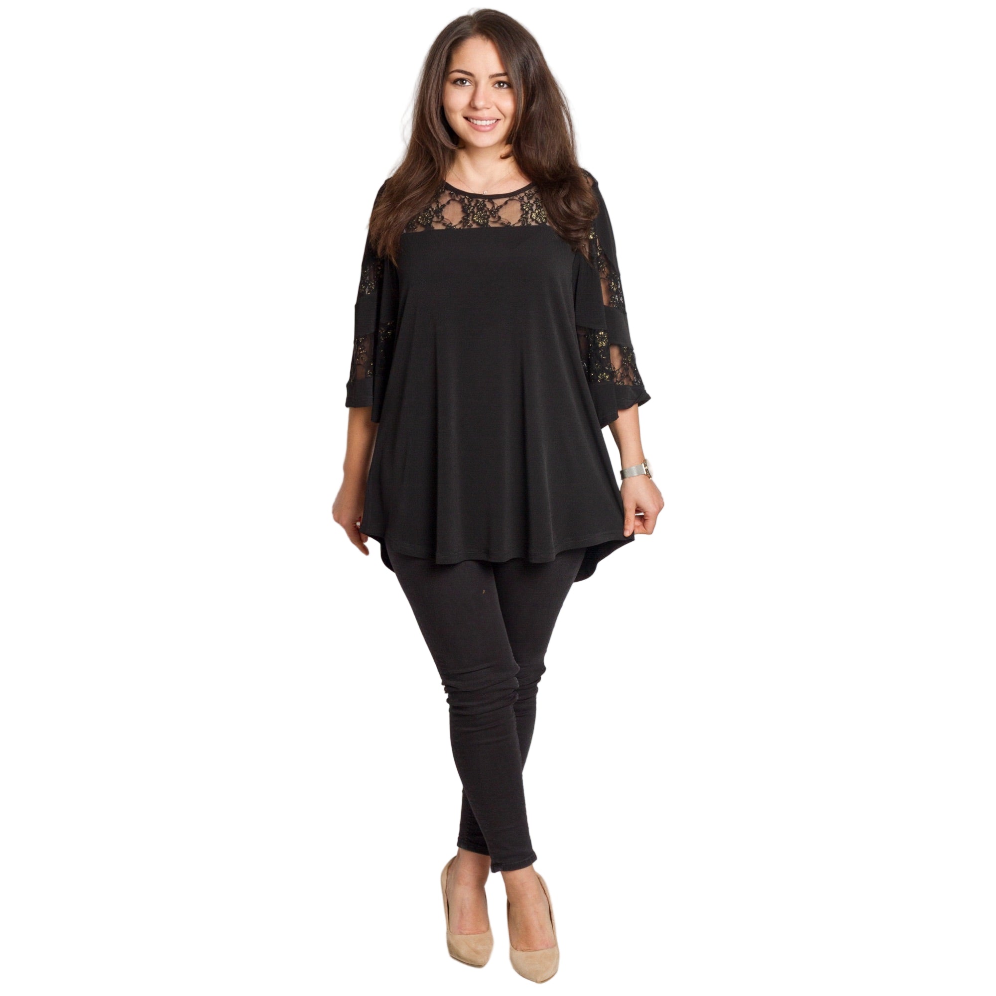Μαύρη τουνίκ με δαντέλα & άνετη γραμμή σε μεγάλα μεγέθη
