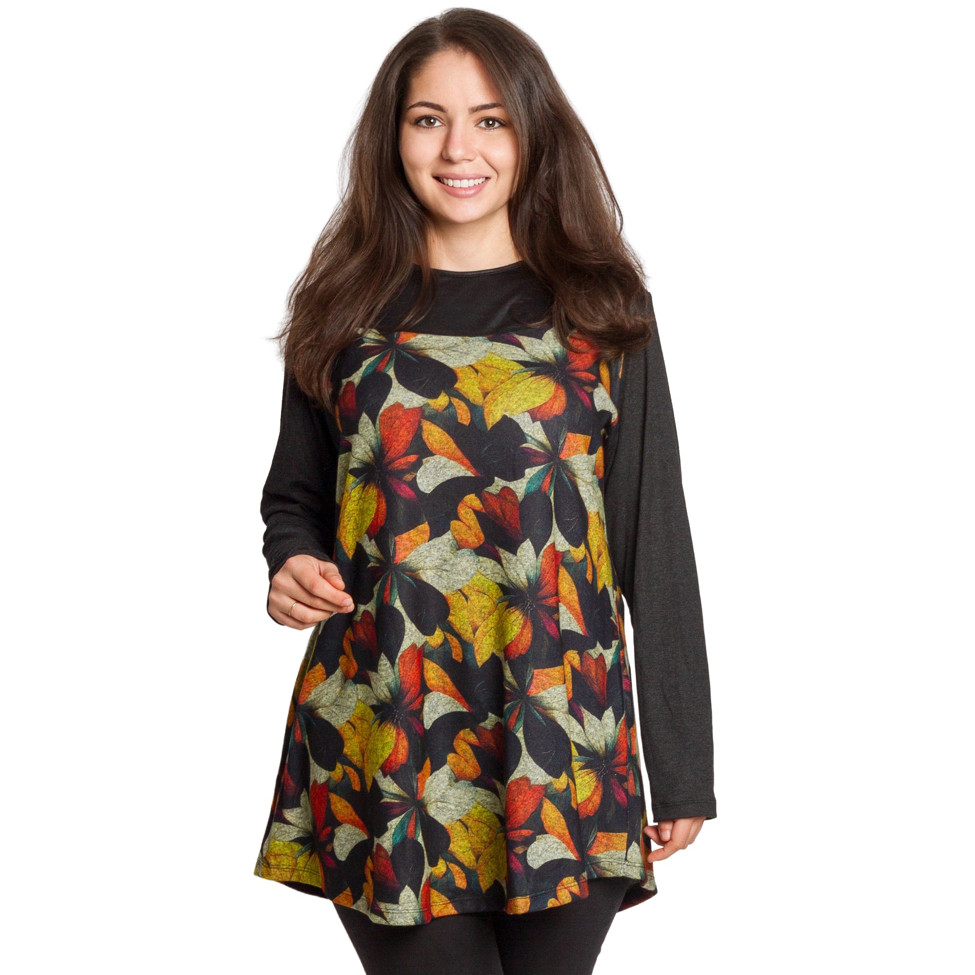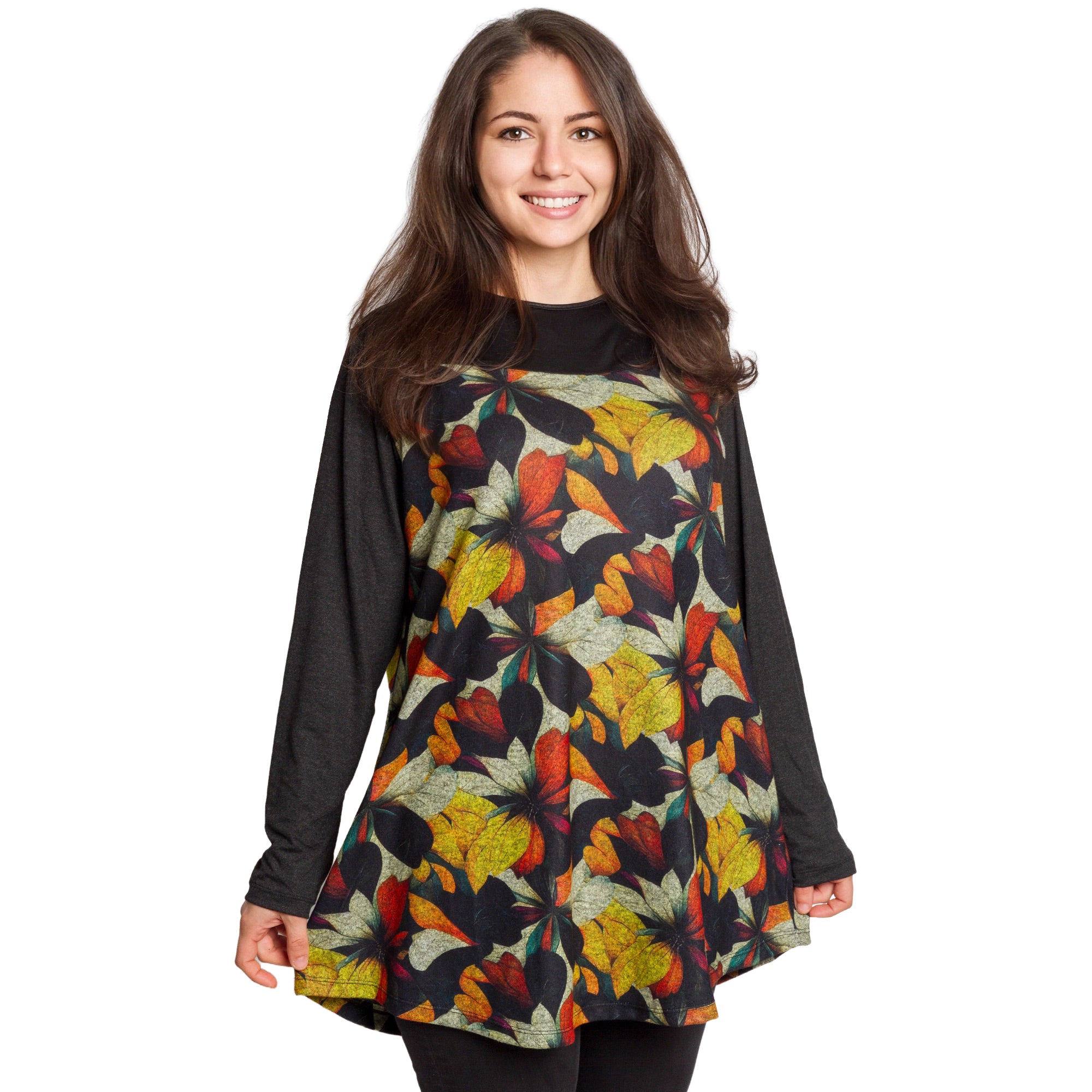 Μαύρη τουνίκ με ζεστό φλοράλ μοτίβο