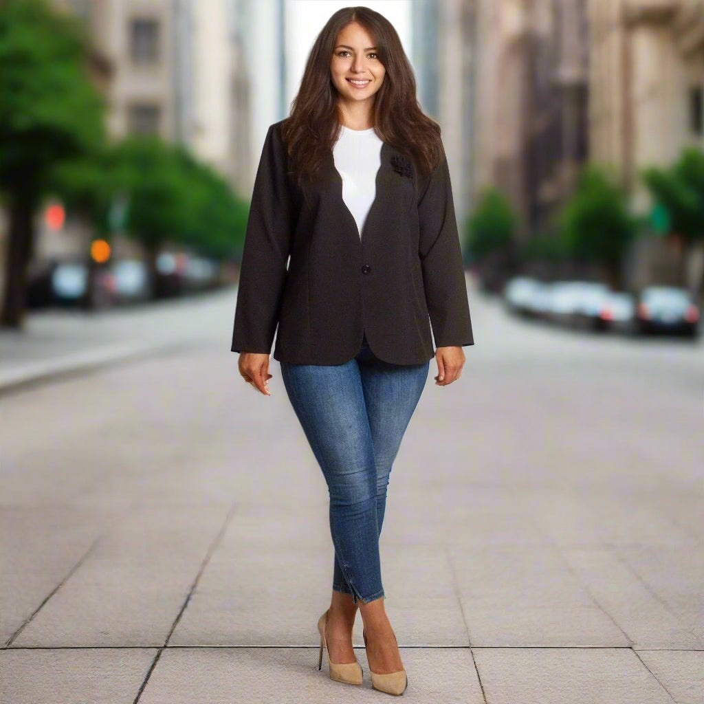 Μαύρο επίσημο σακάκι με μακρύ μανίκι σε μεγάλα μεγέθη