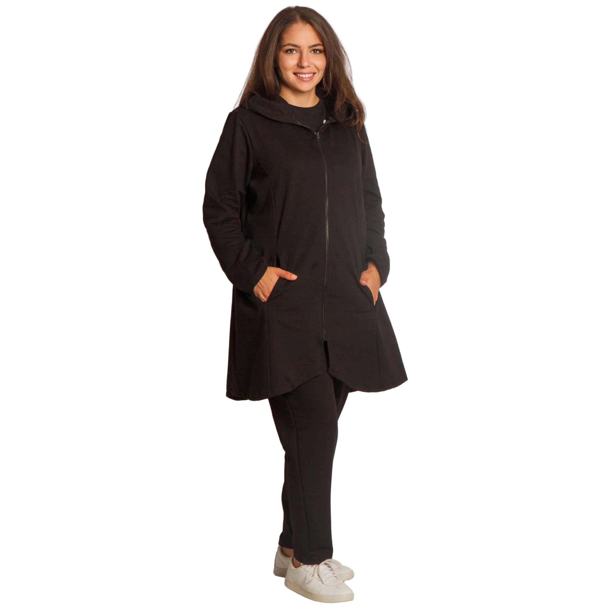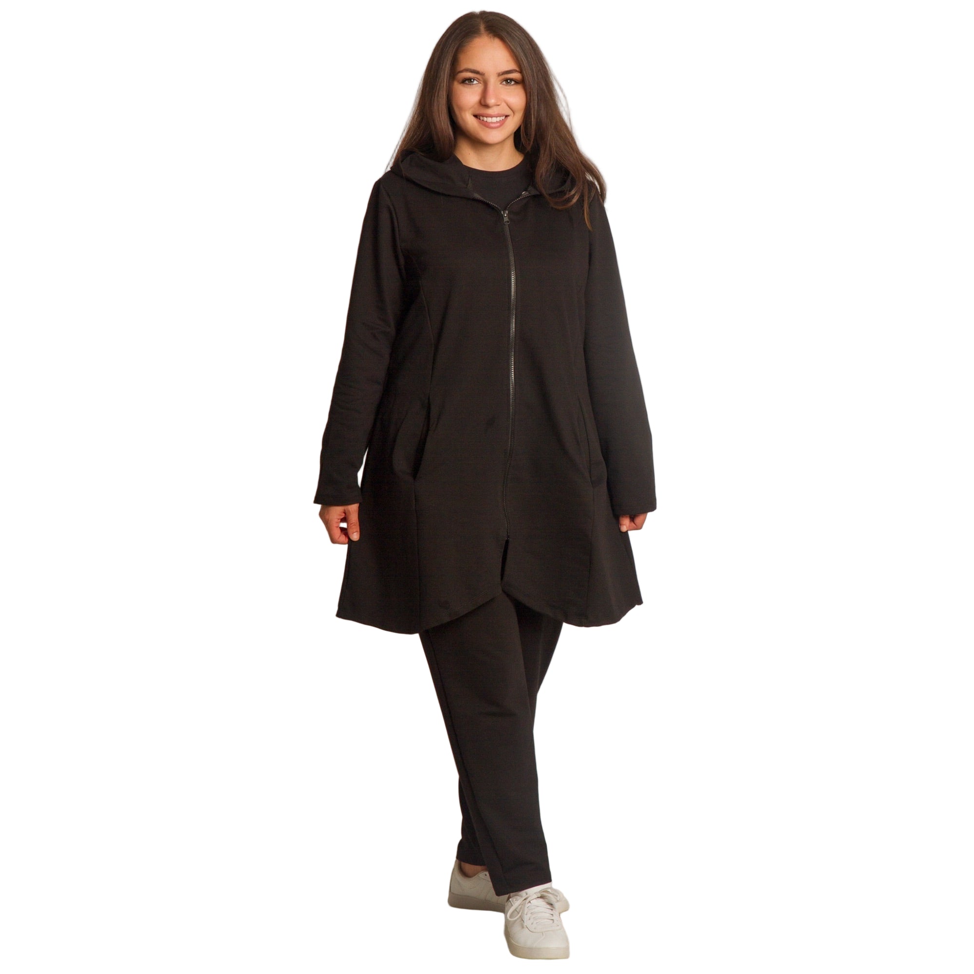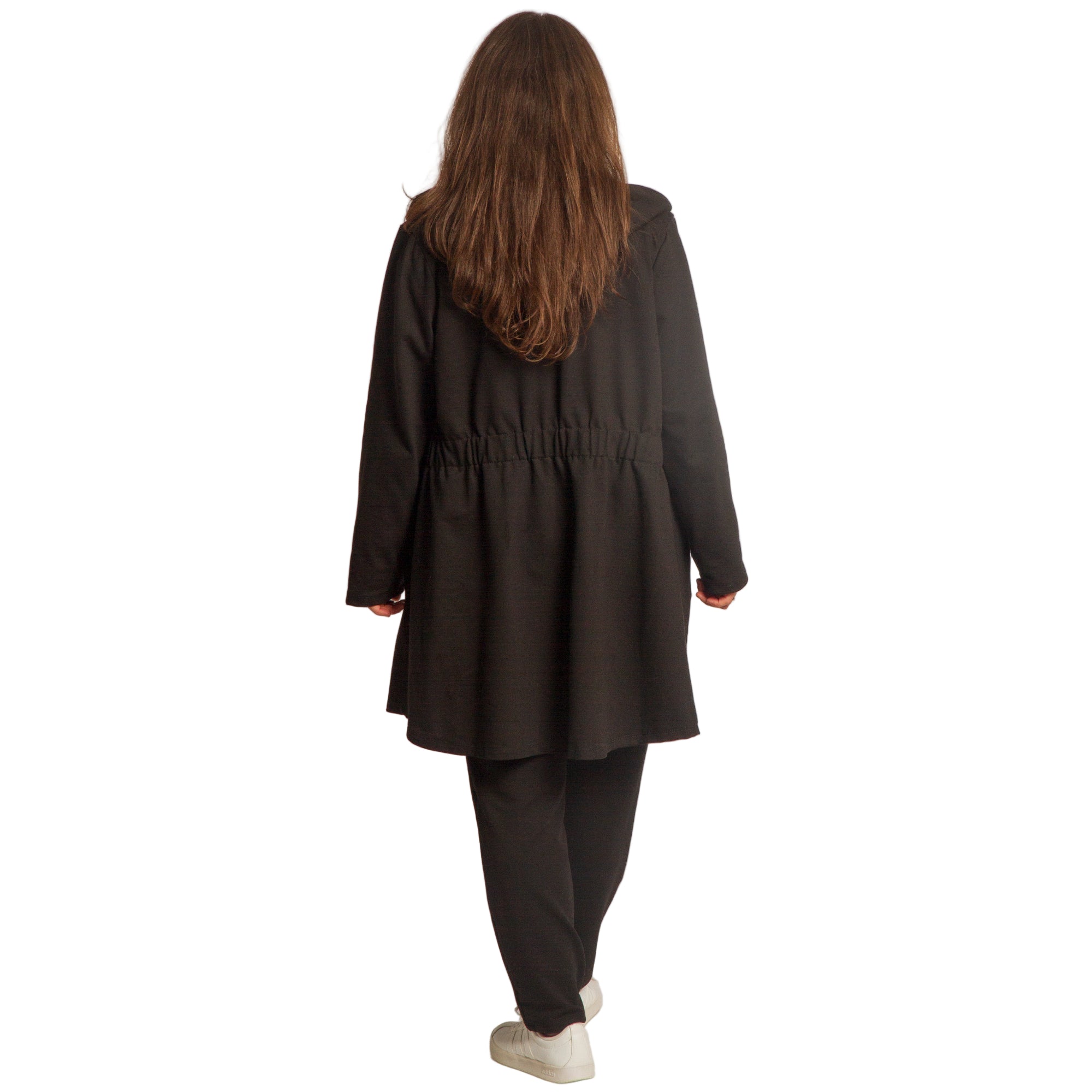 Μαύρη γυναικεία ζακέτα σε μεγάλα μεγέθη με κουκούλα