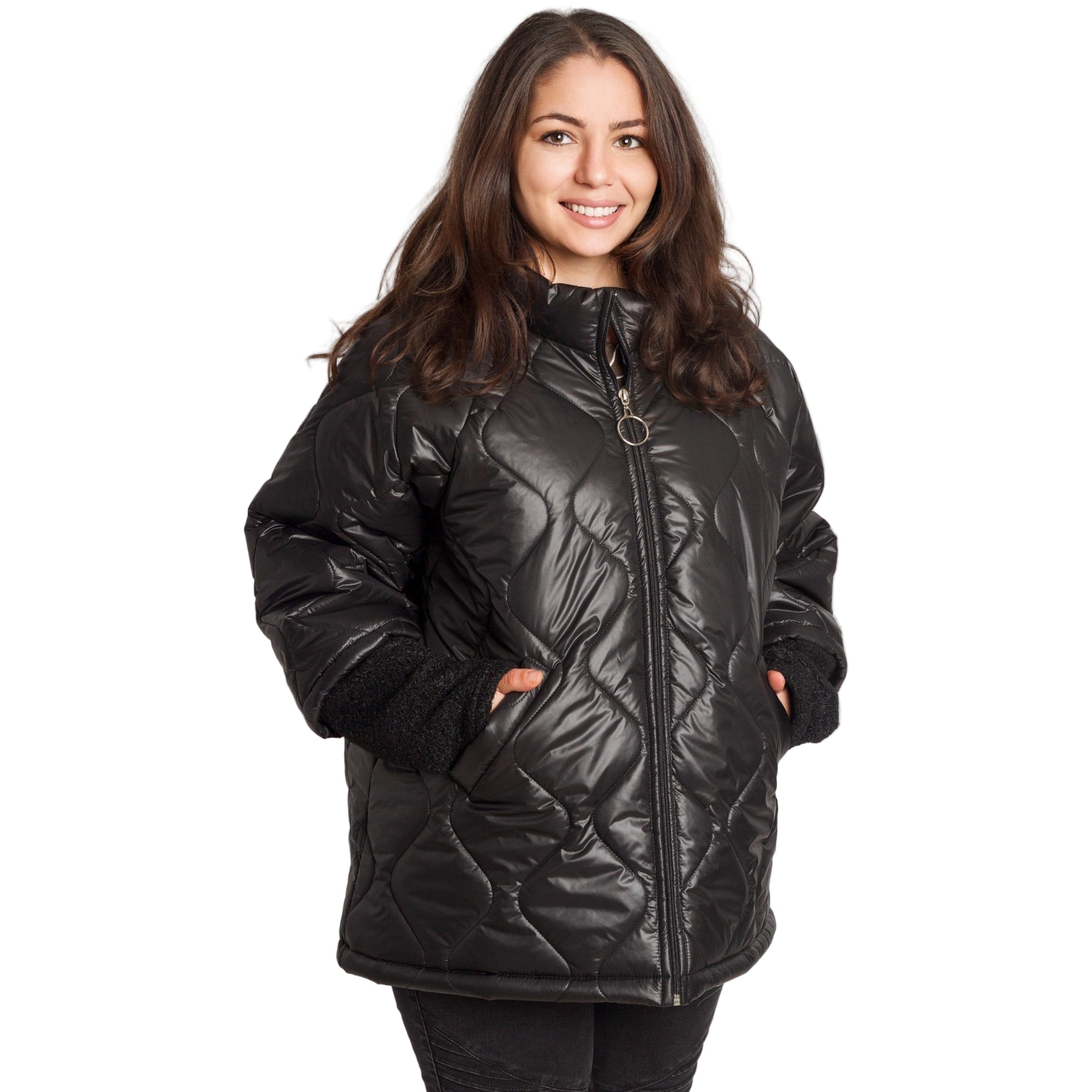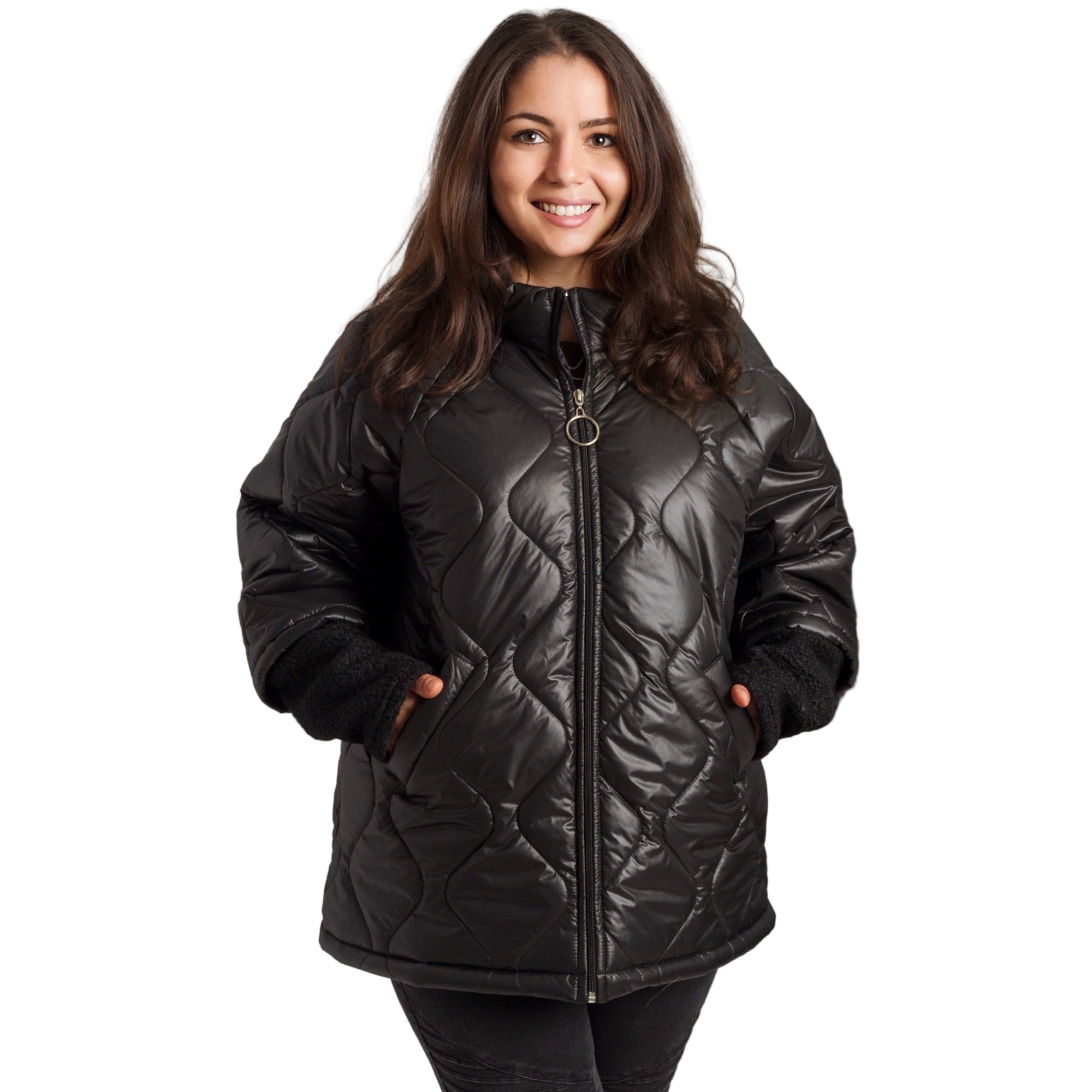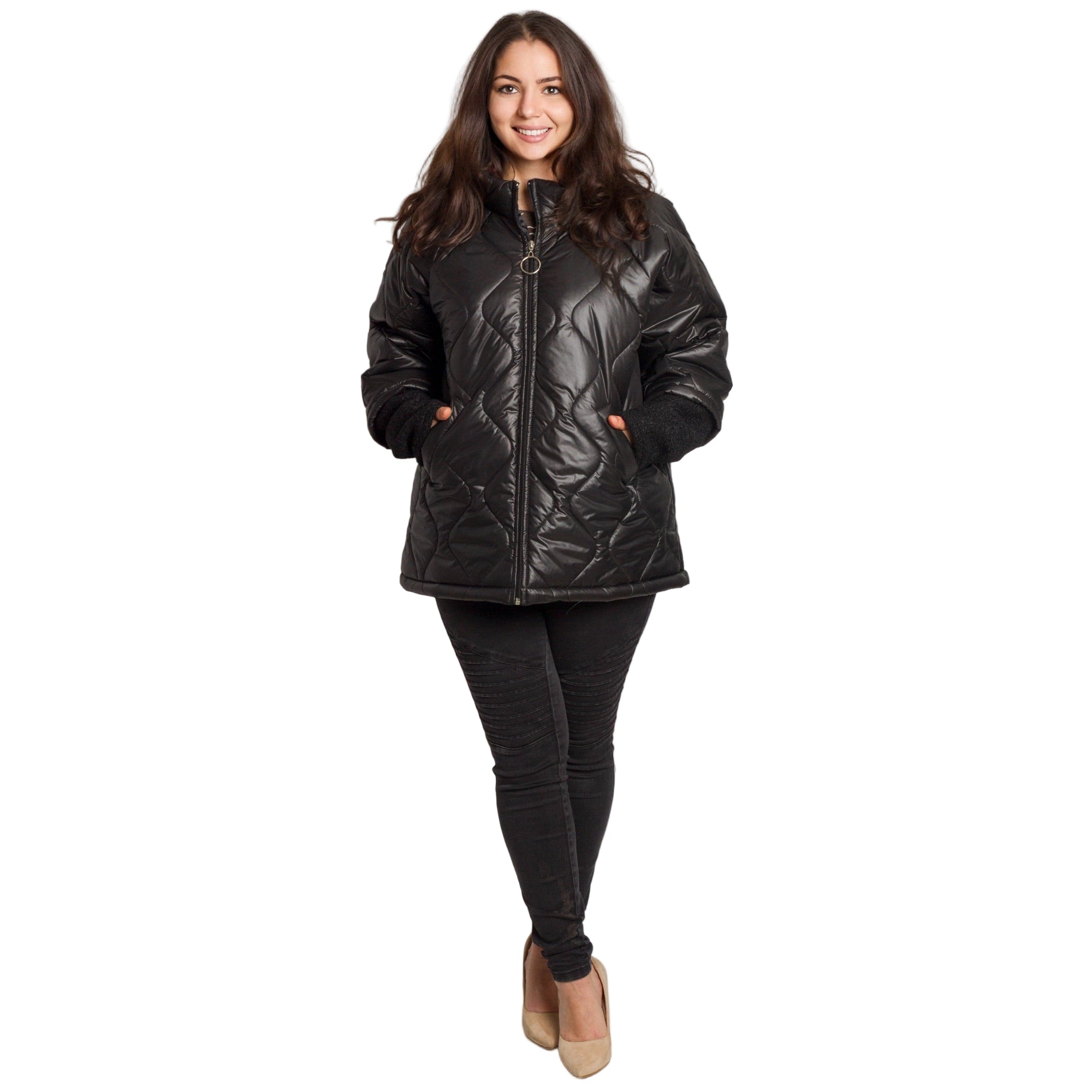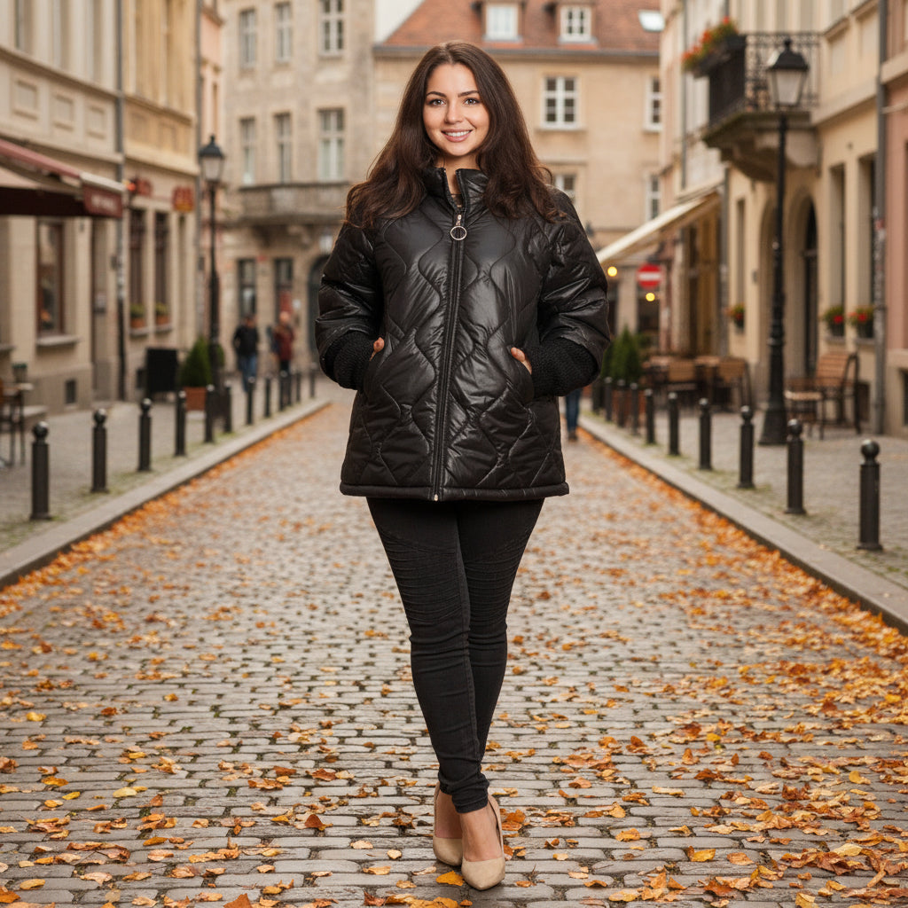 Μαύρο γυναικείο μπουφάν με ίσια γραμμή και φερμουάρ