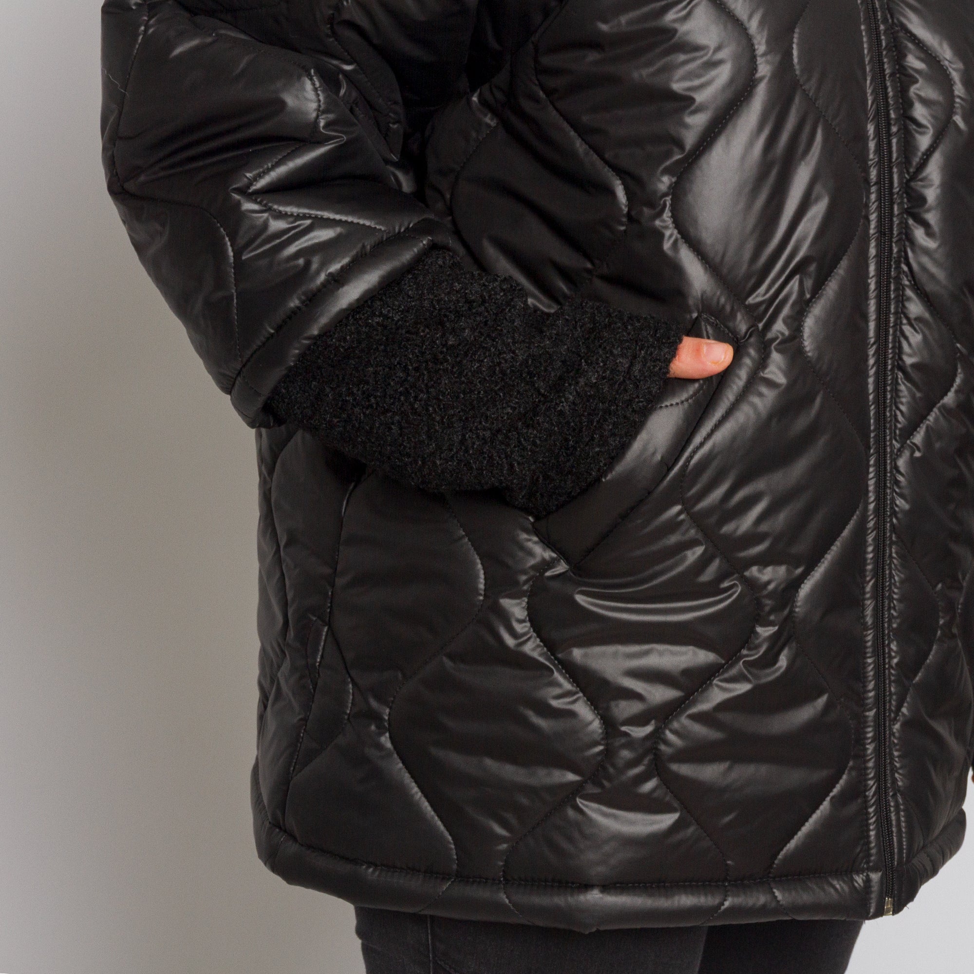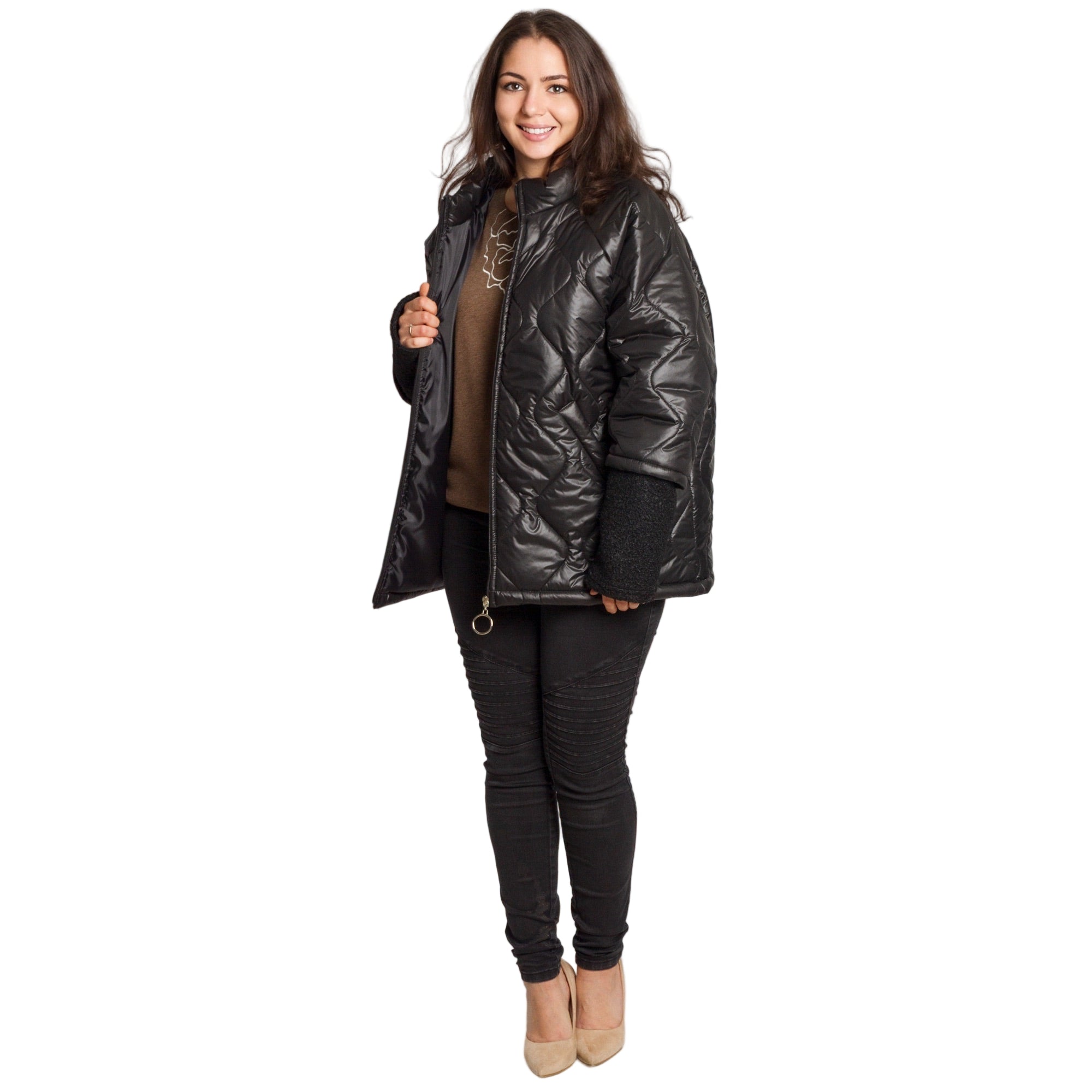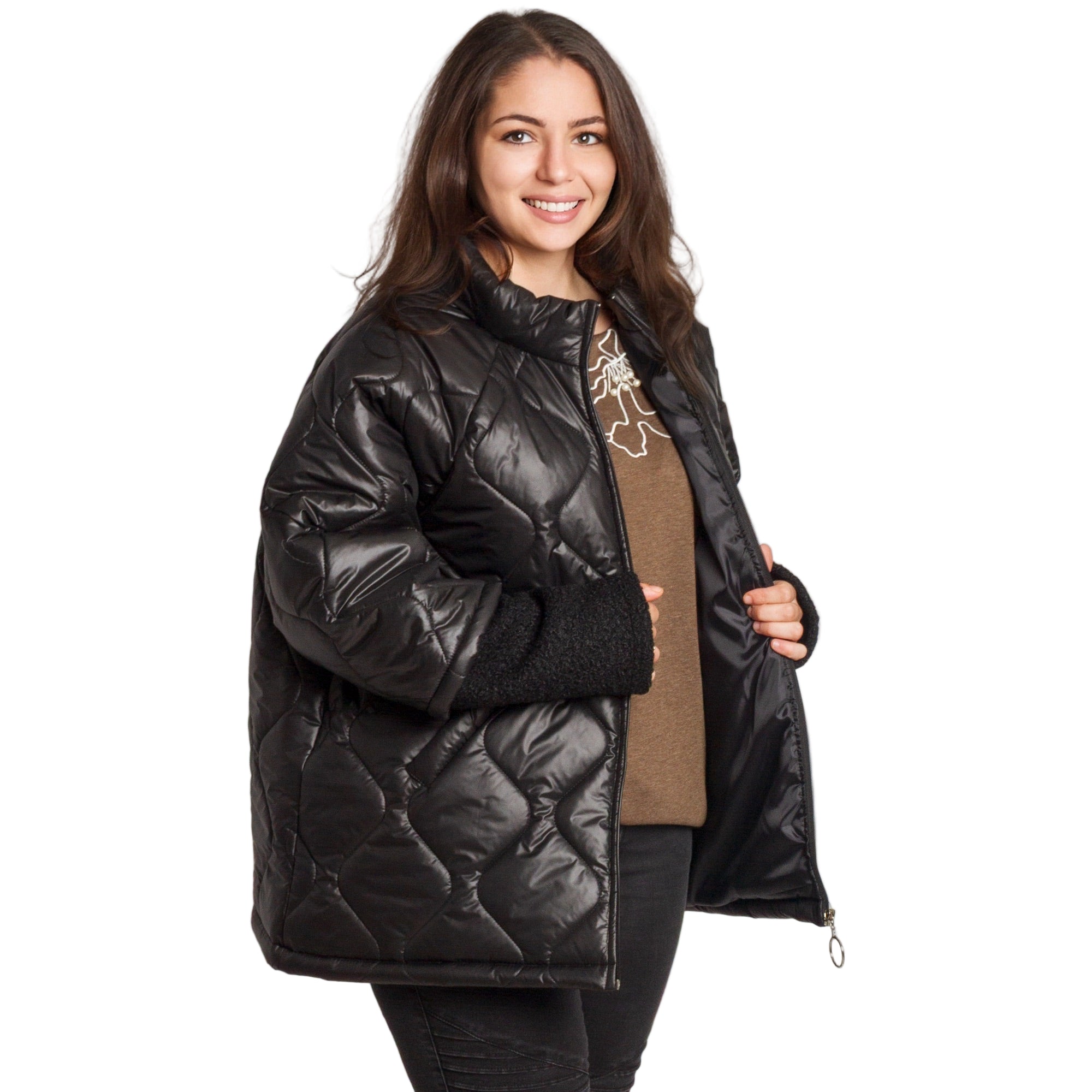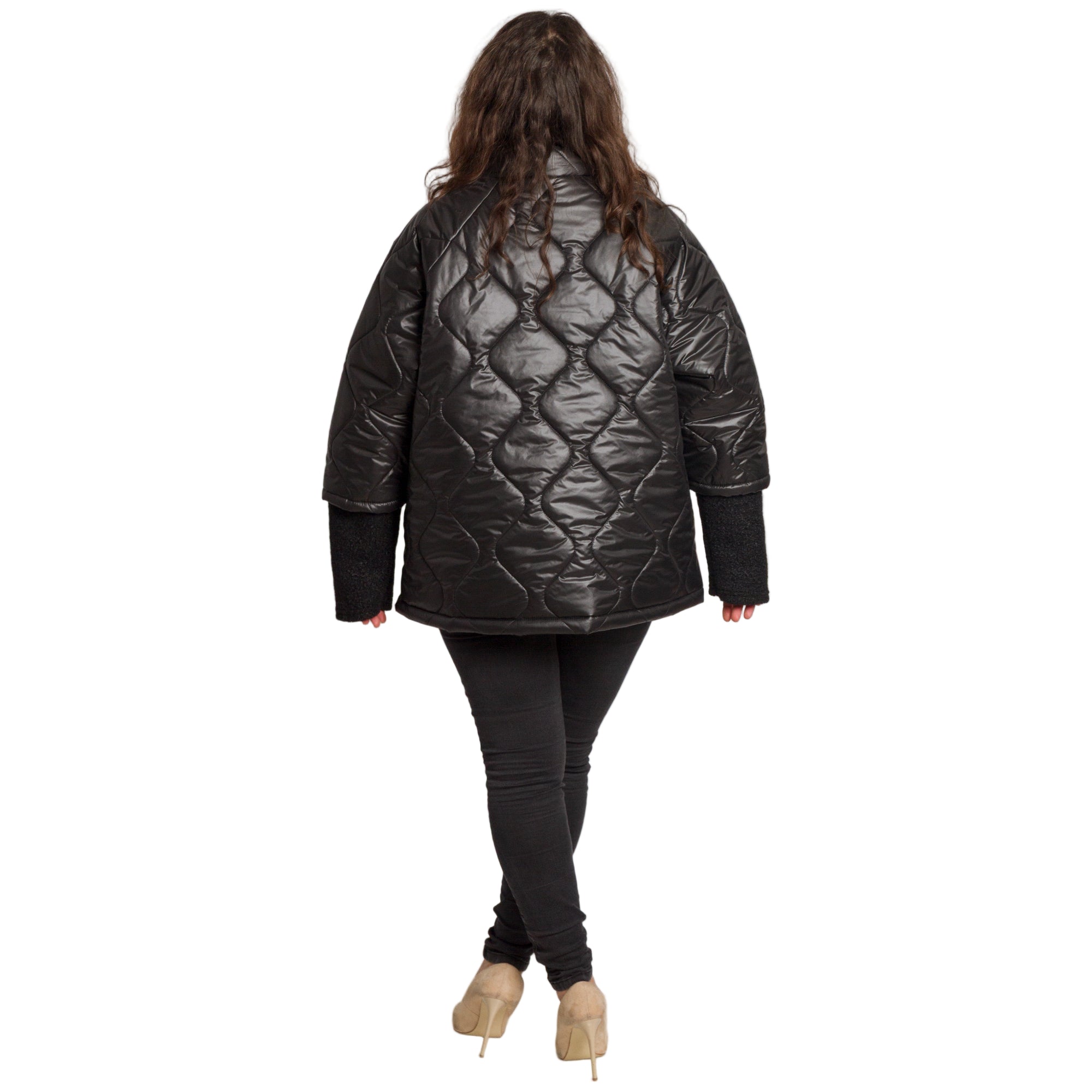 Μαύρο γυναικείο μπουφάν με ίσια γραμμή και φερμουάρ