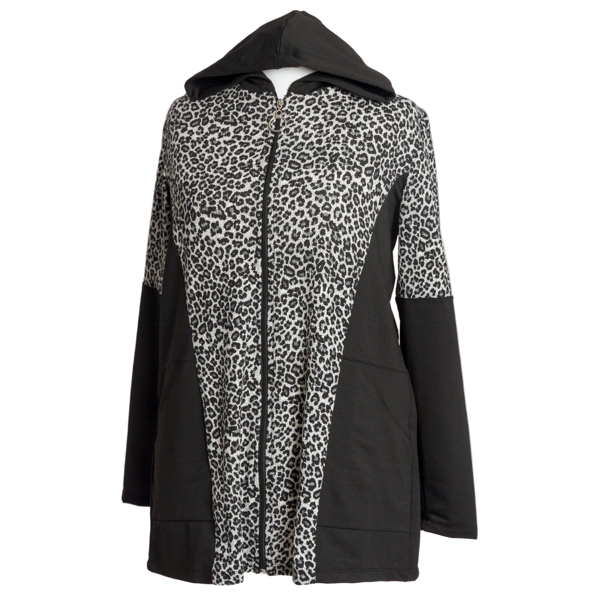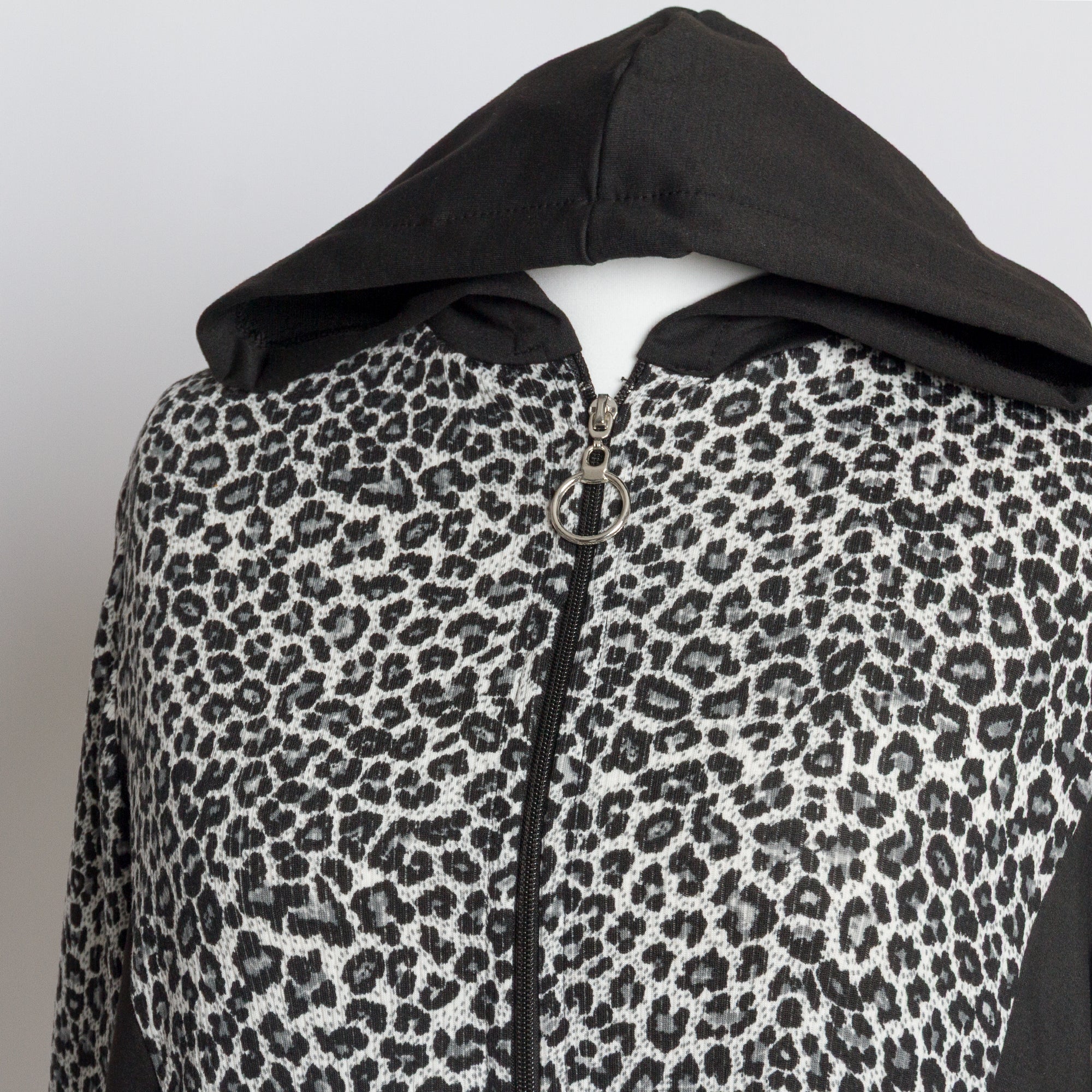 Μαύρο γυναικείο μπουφάν με animal print και κουκούλα
