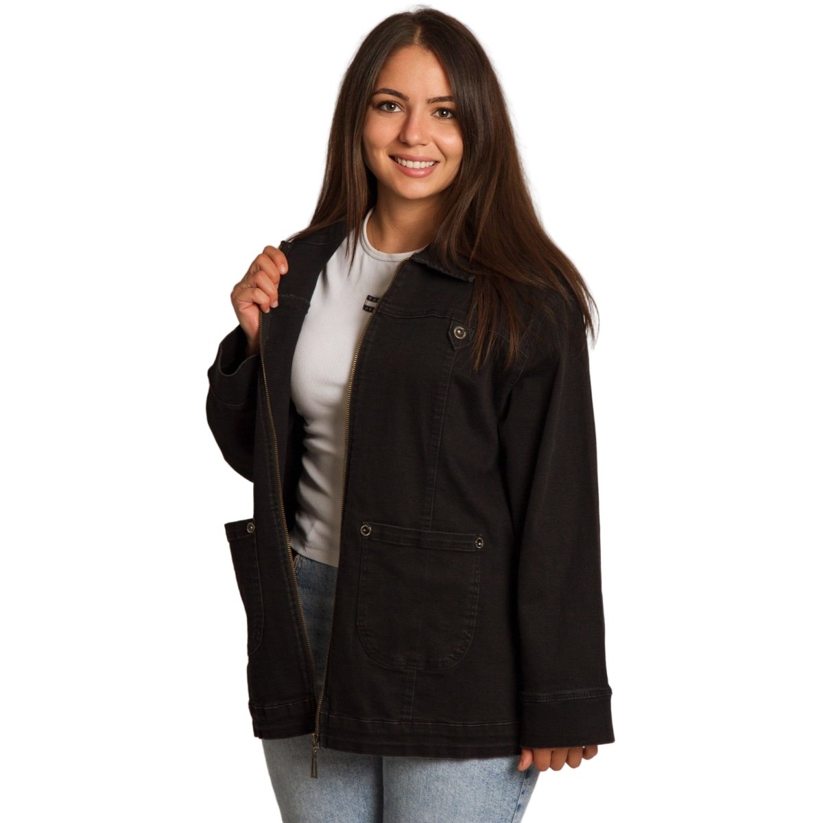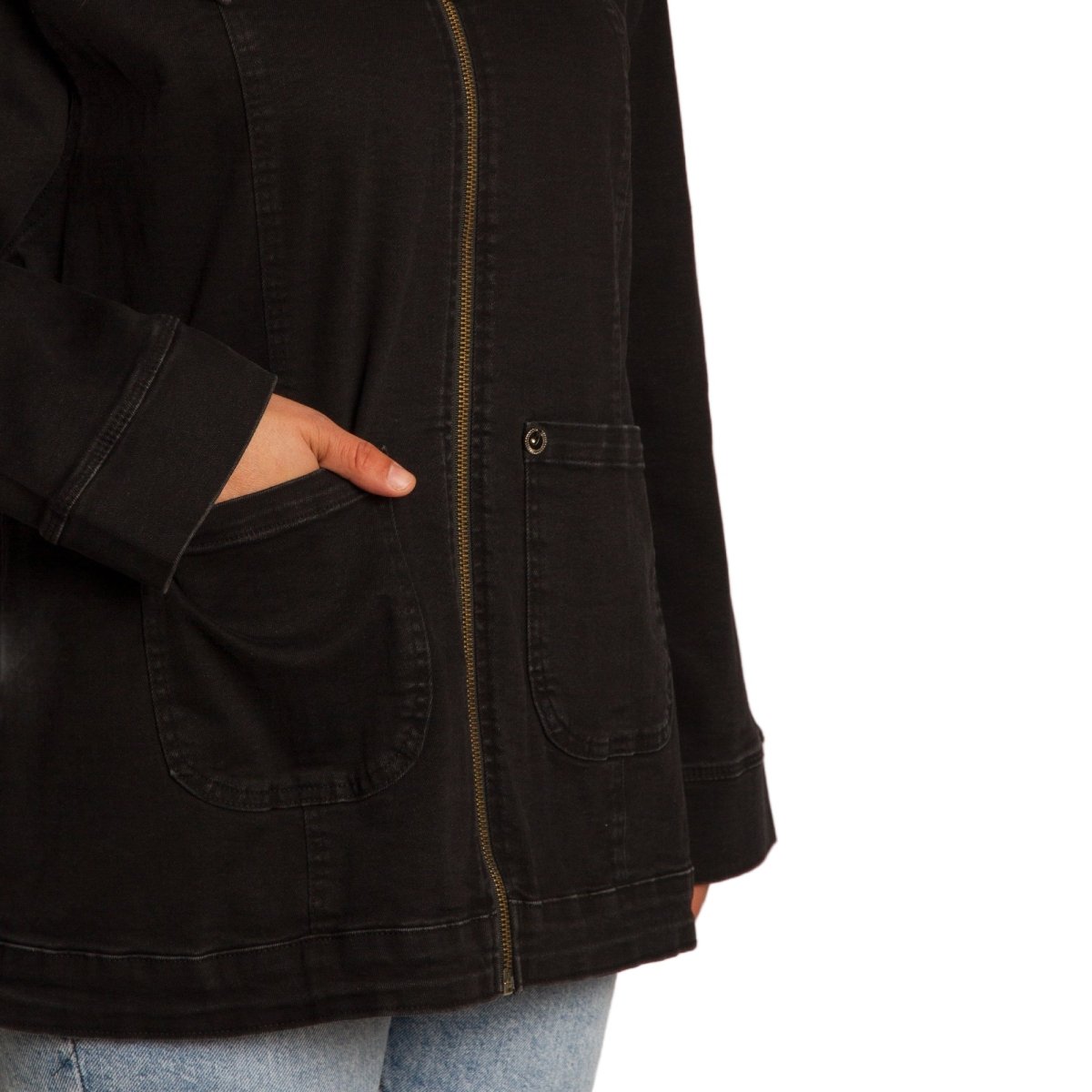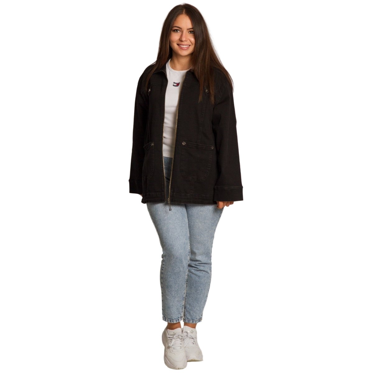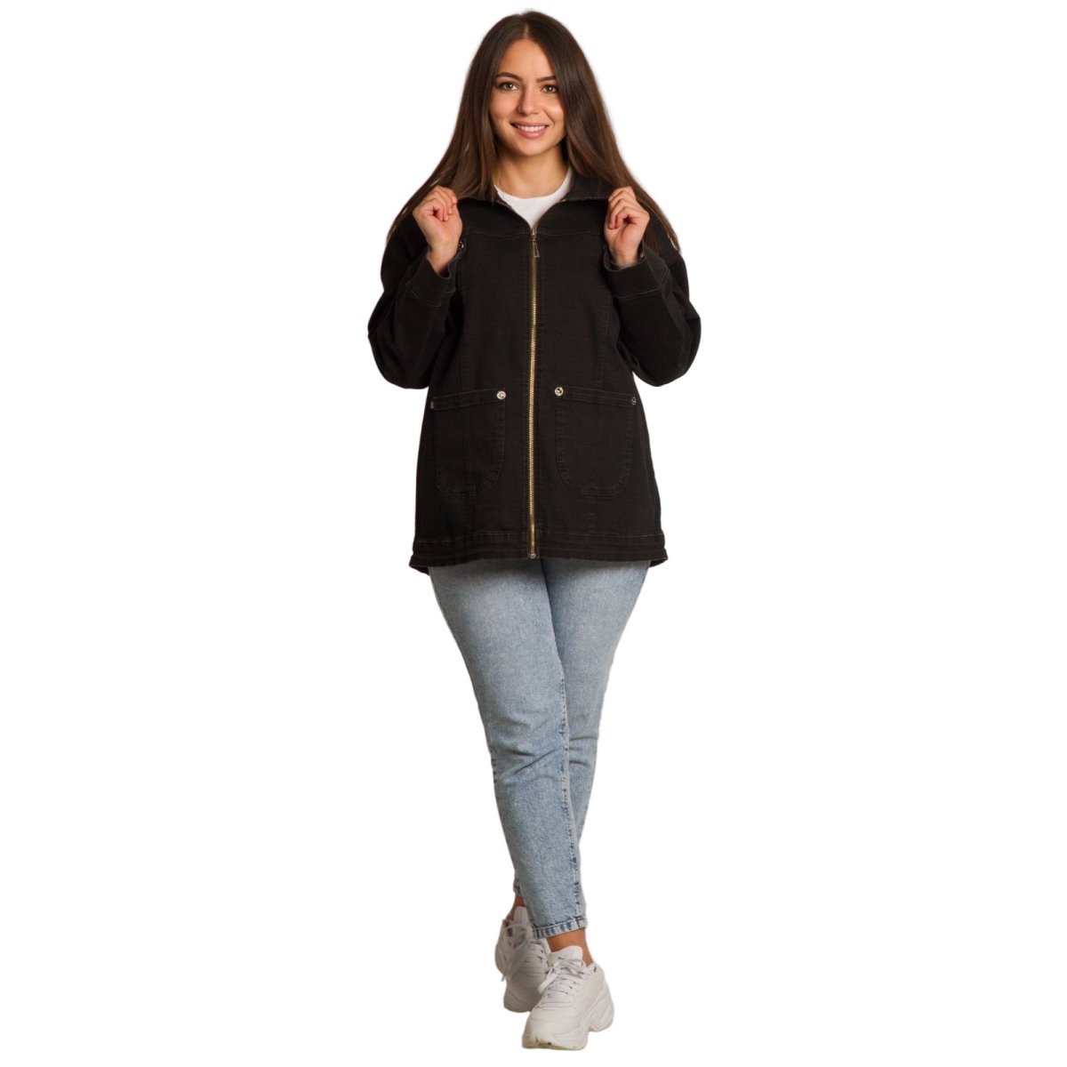 Μαύρο τζιν μπουφάν με τσέπες σε μεγάλα μεγέθη