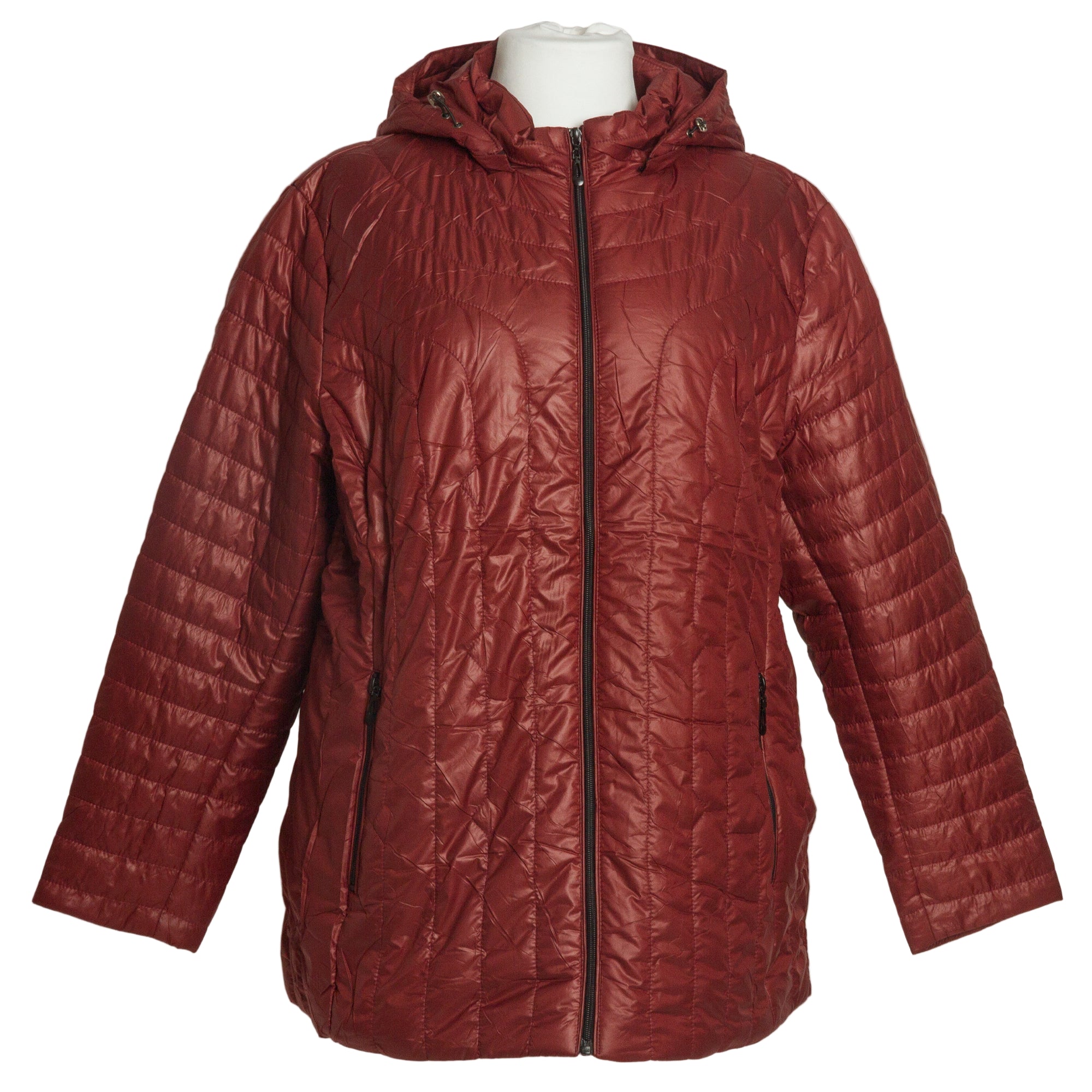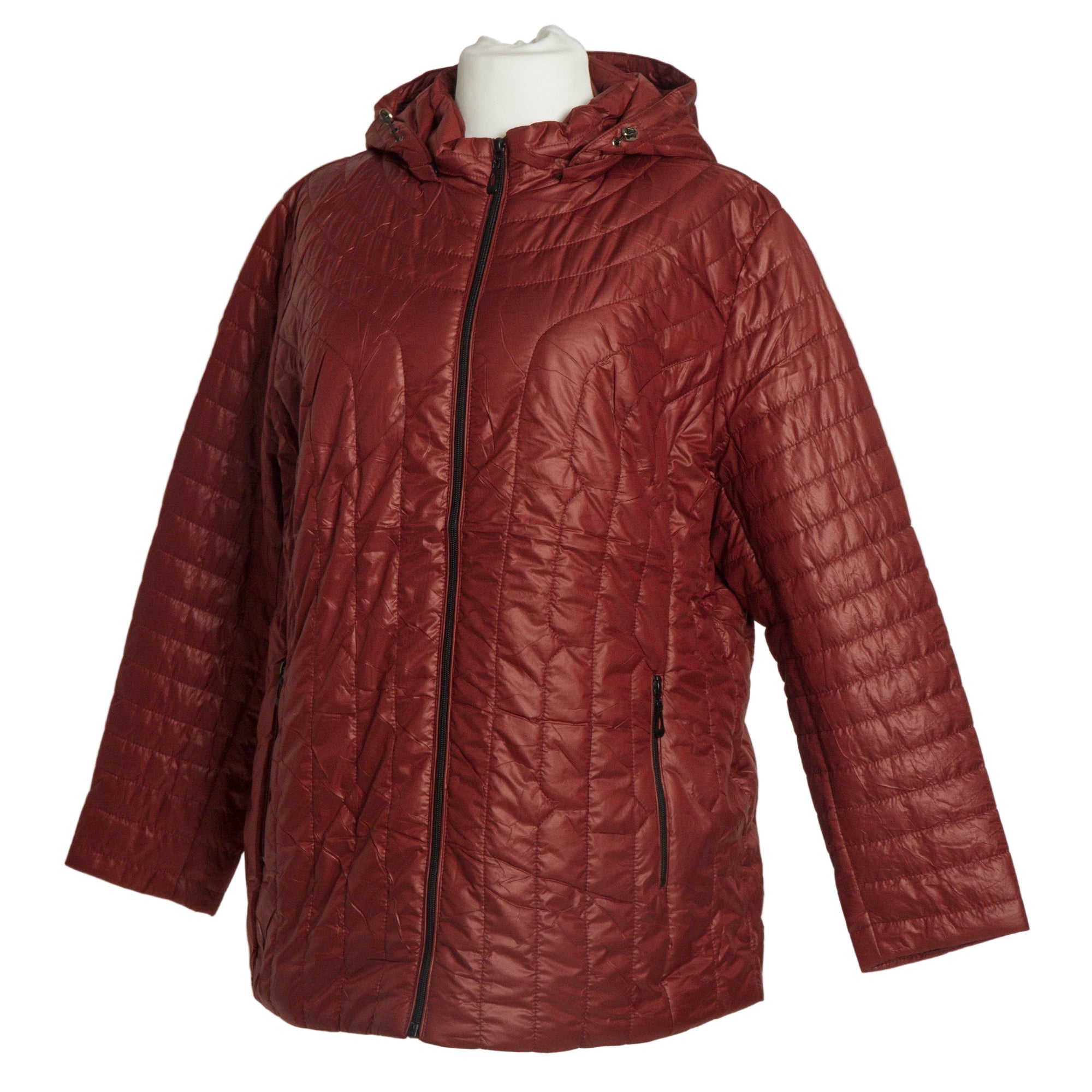 Γυναικείο μπουφάν μπορντό με κουκούλα και ίσια γραμμή