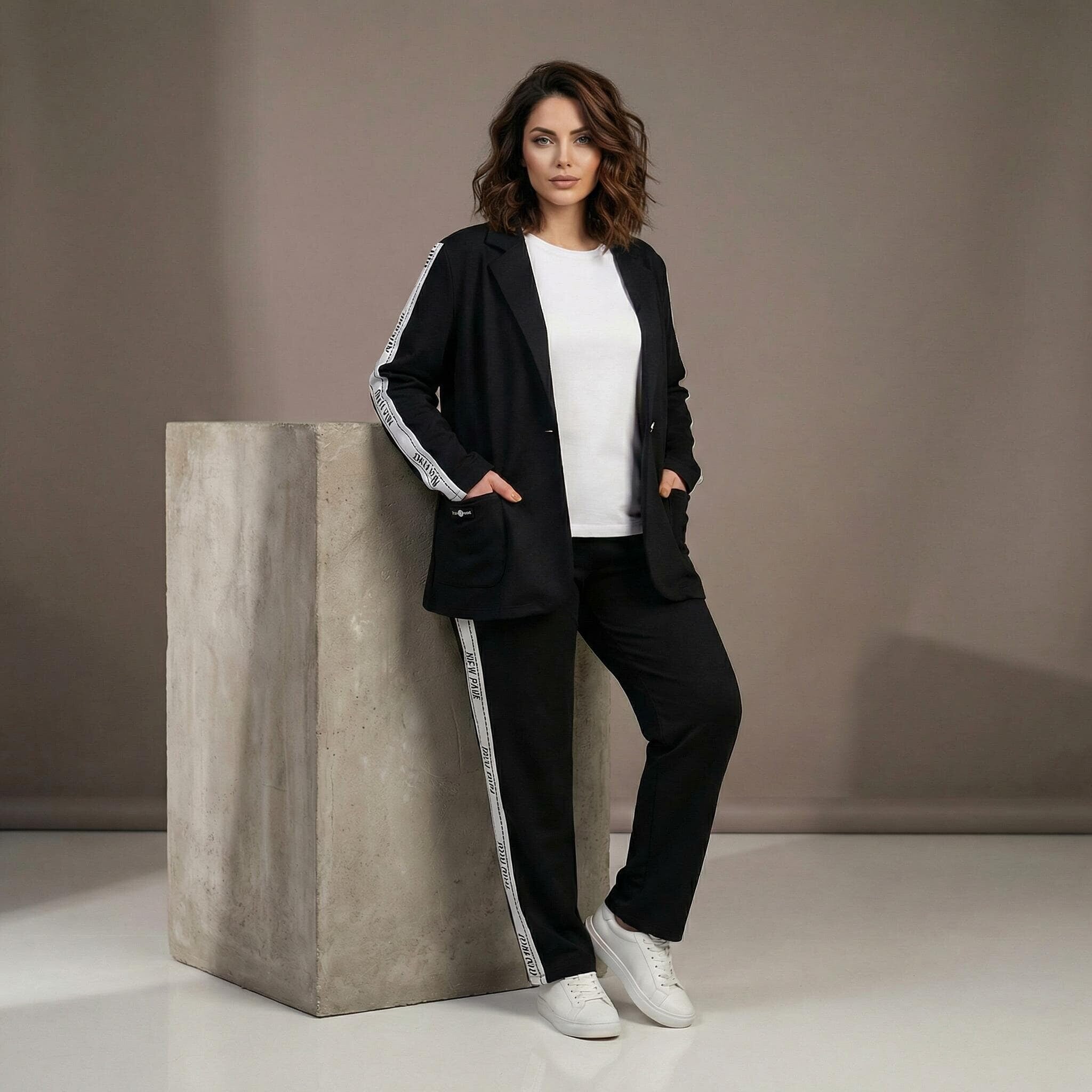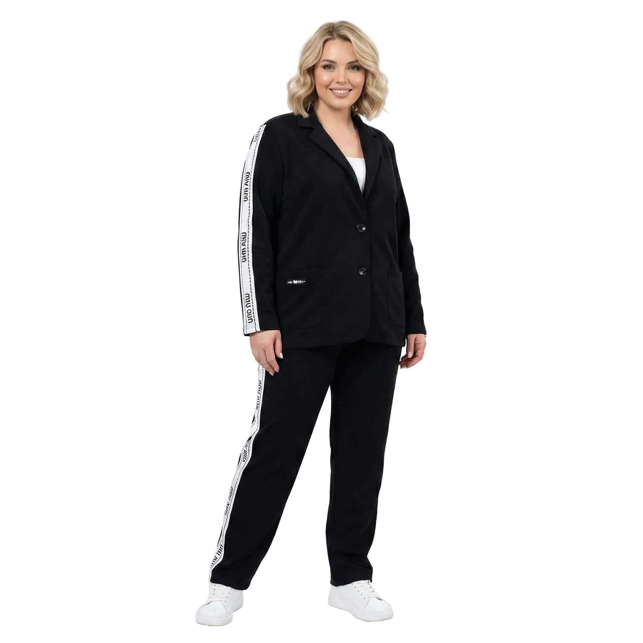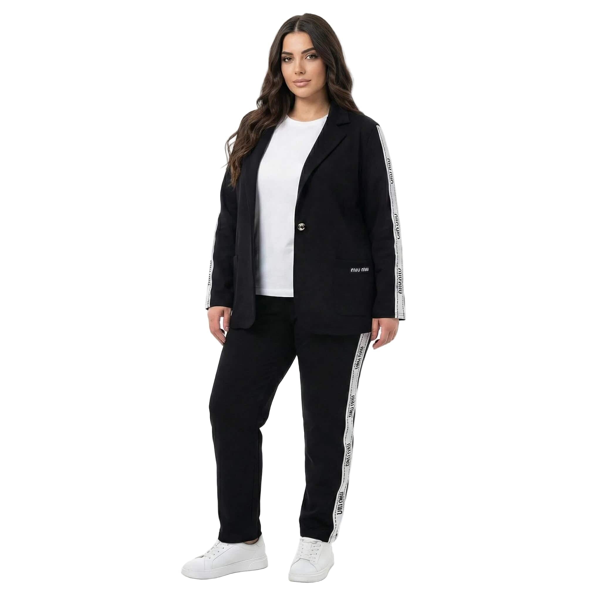 Μαύρο καθημερινό γυναικείο σετ σακάκι και παντελόνι σε μεγάλα μεγέθη