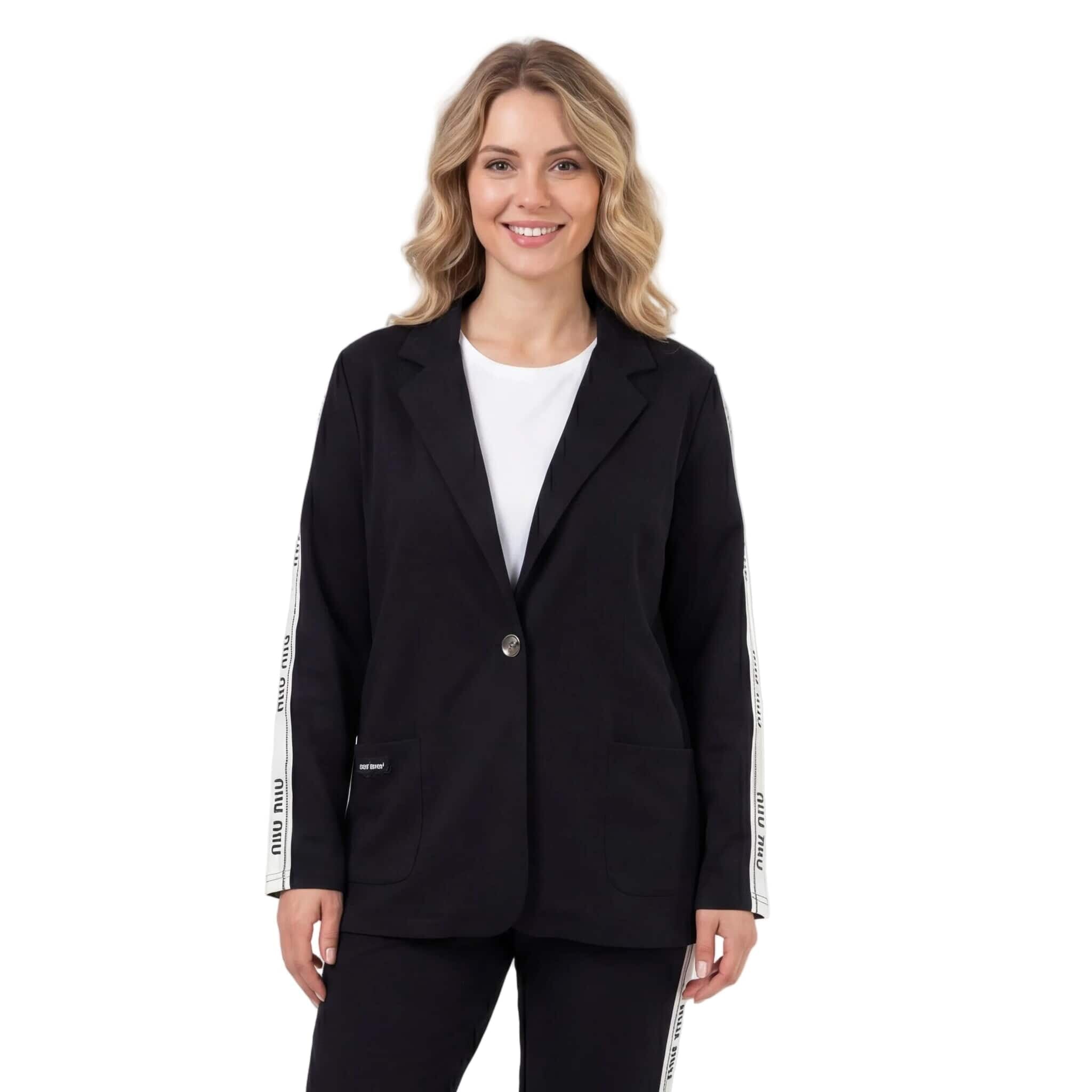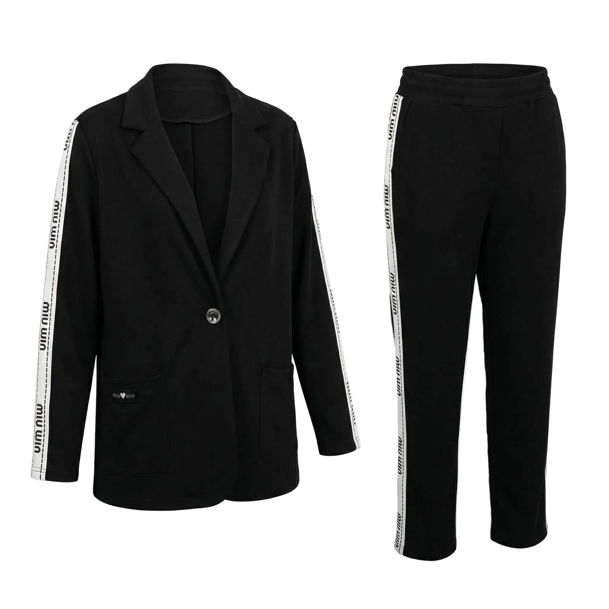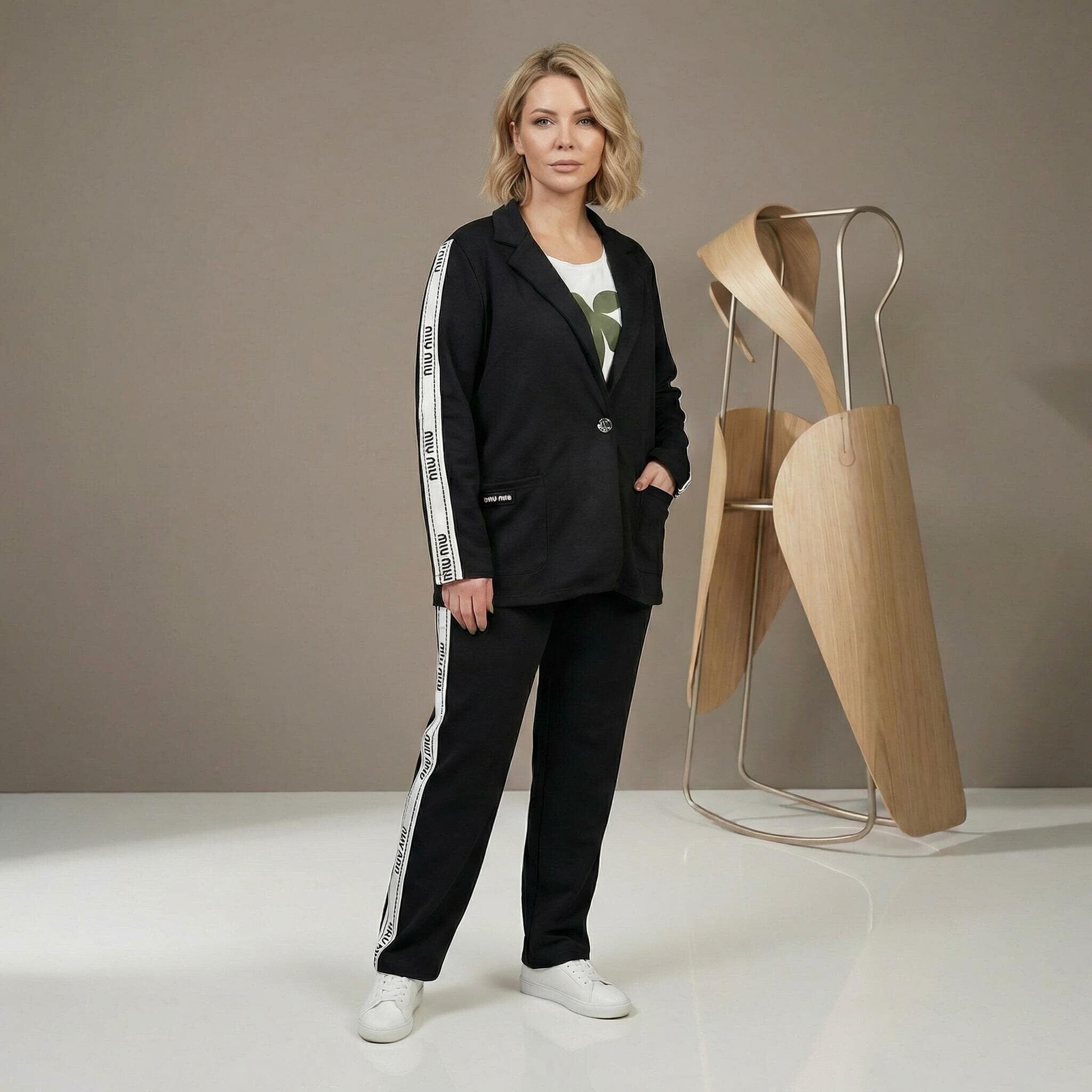 Μαύρο καθημερινό γυναικείο σετ σακάκι και παντελόνι σε μεγάλα μεγέθη