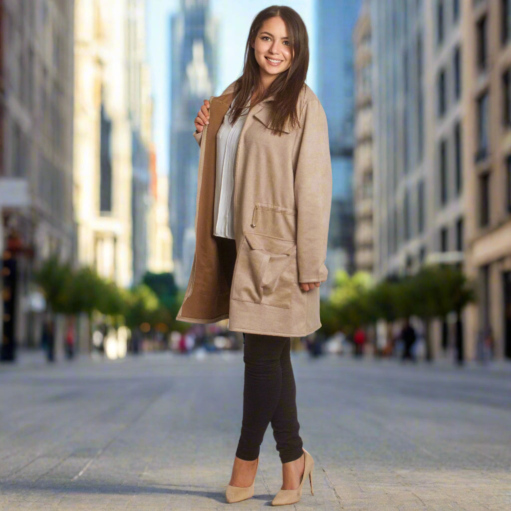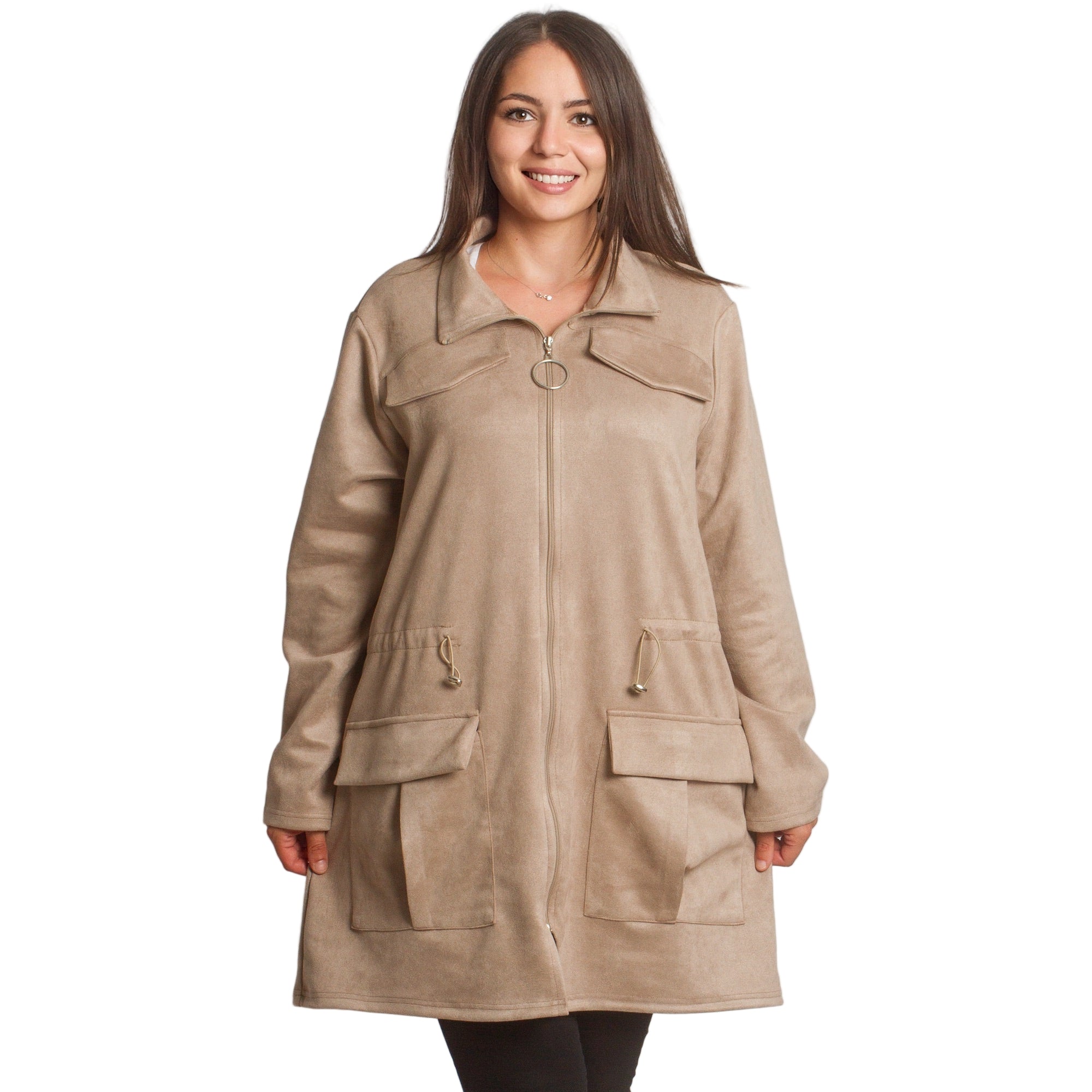 Μπεζ ζακέτα σε μεγάλα μεγέθη με φερμουάρ