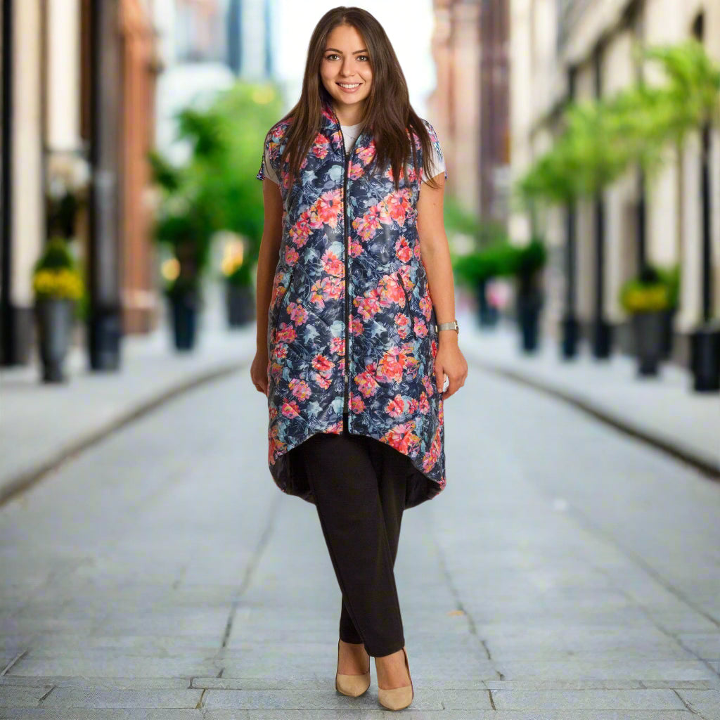 Πολύχρωμο γιλέκο με φλοράλ σχέδιο σε μεγάλα μεγέθη