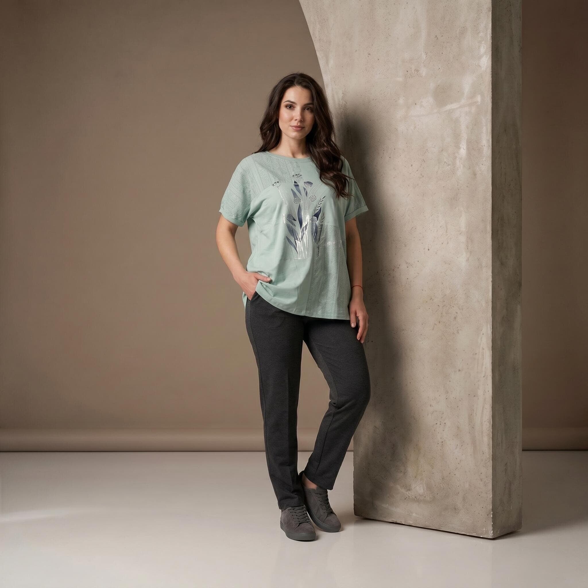 Πράσινη καθημερινή βαμβακερή τουνίκ σε μεγάλα μεγέθη