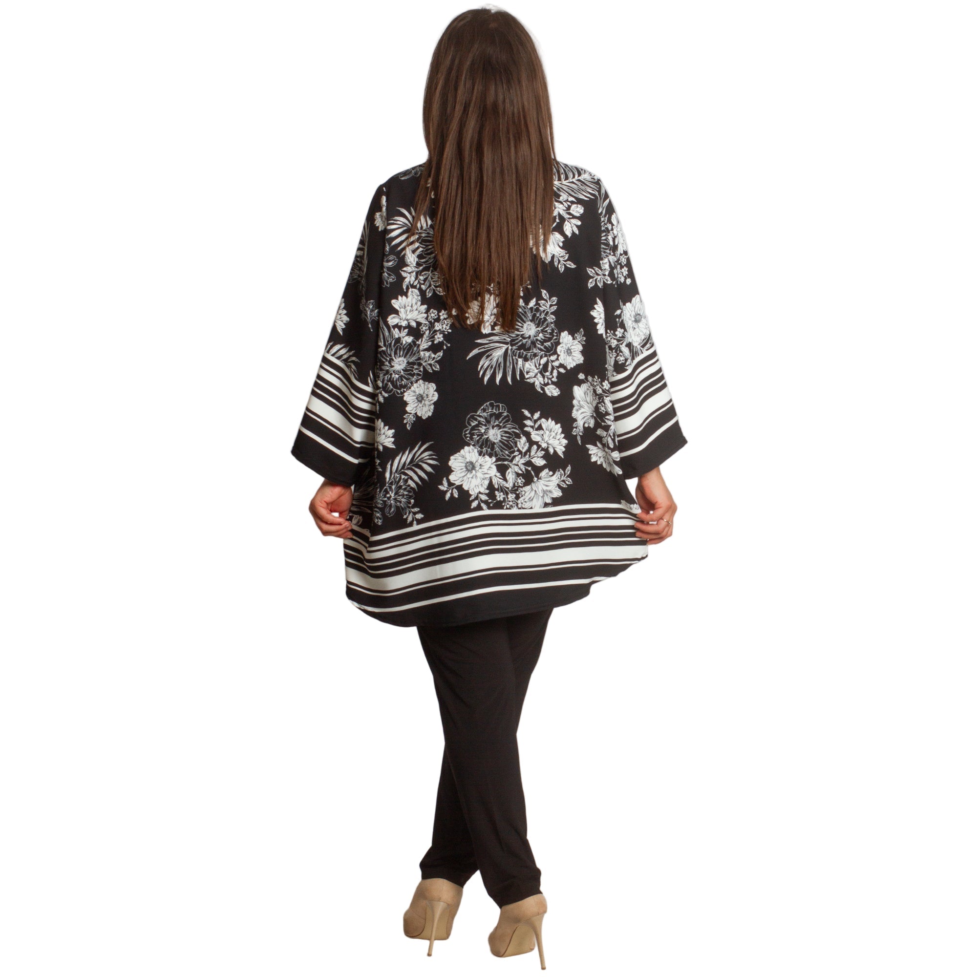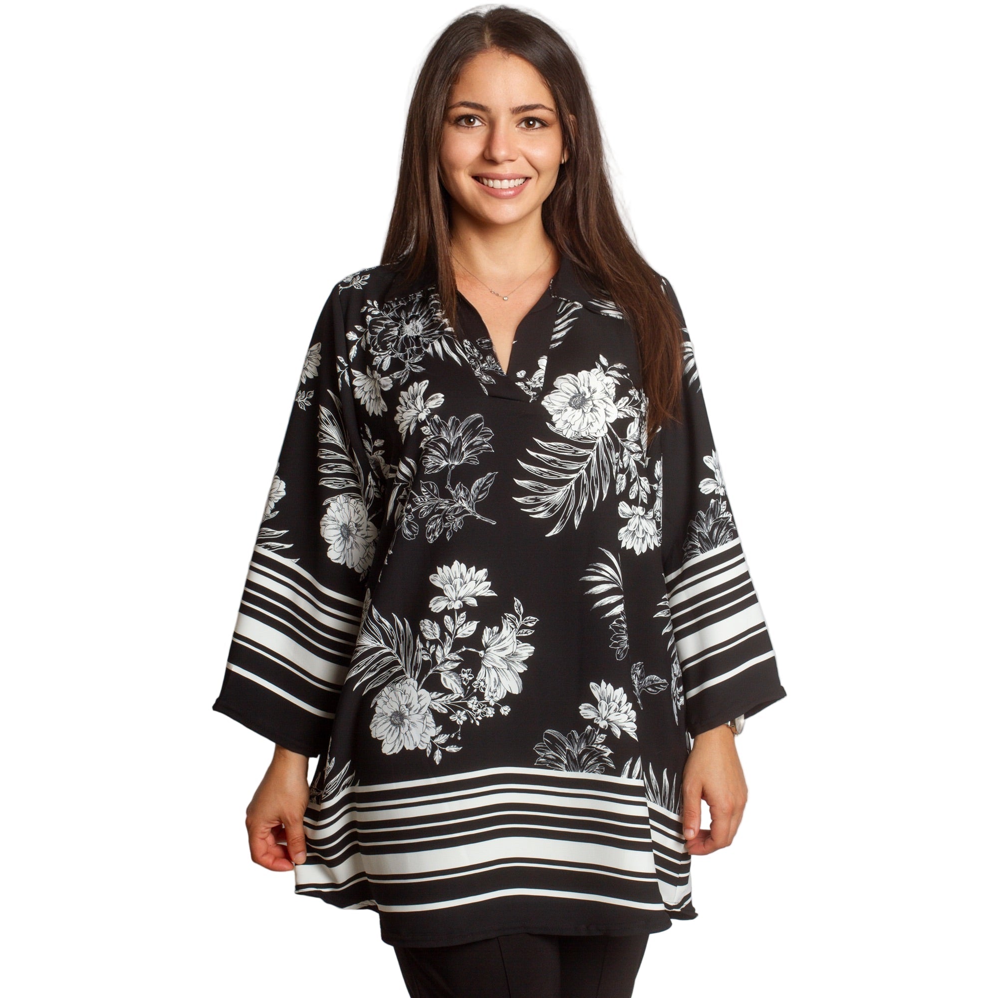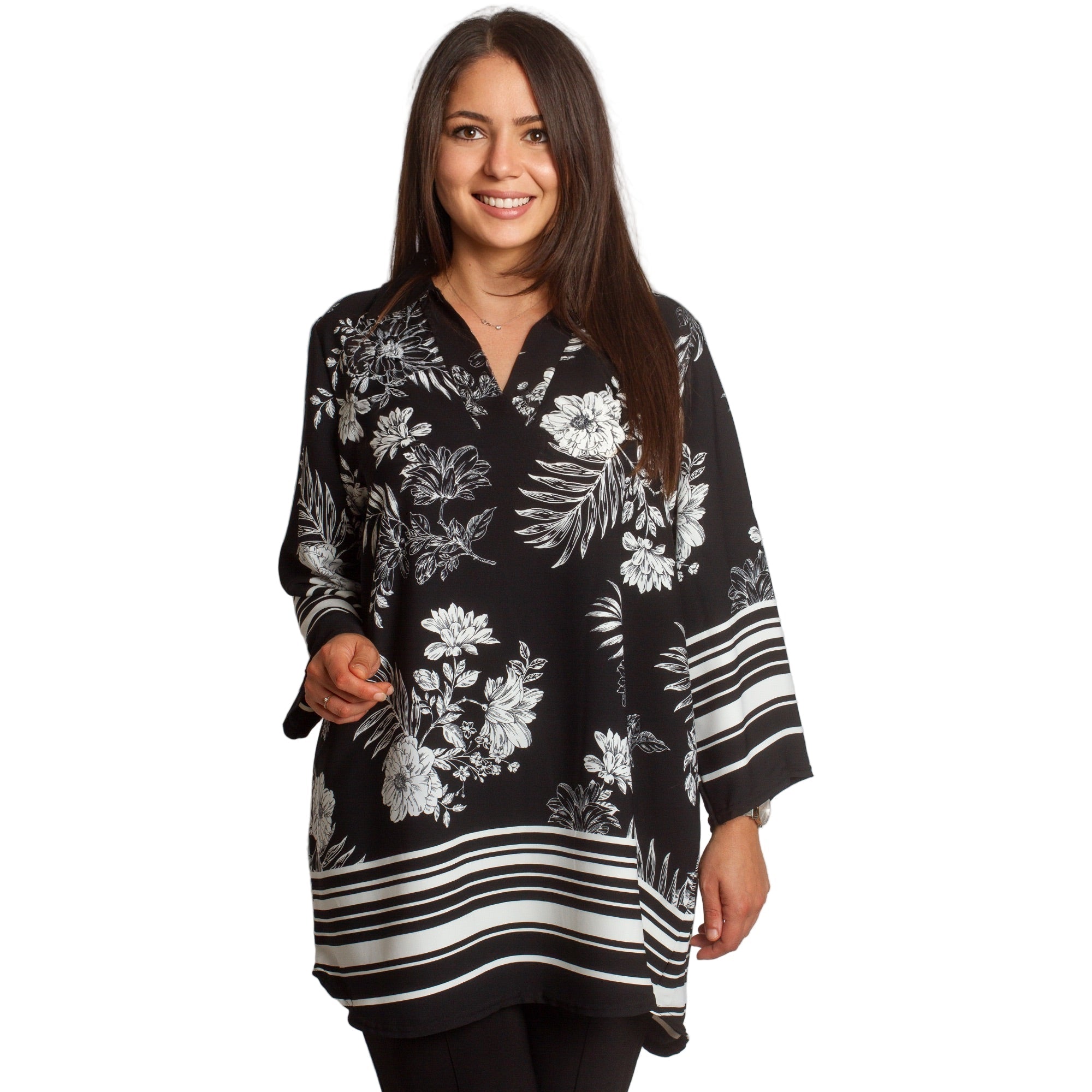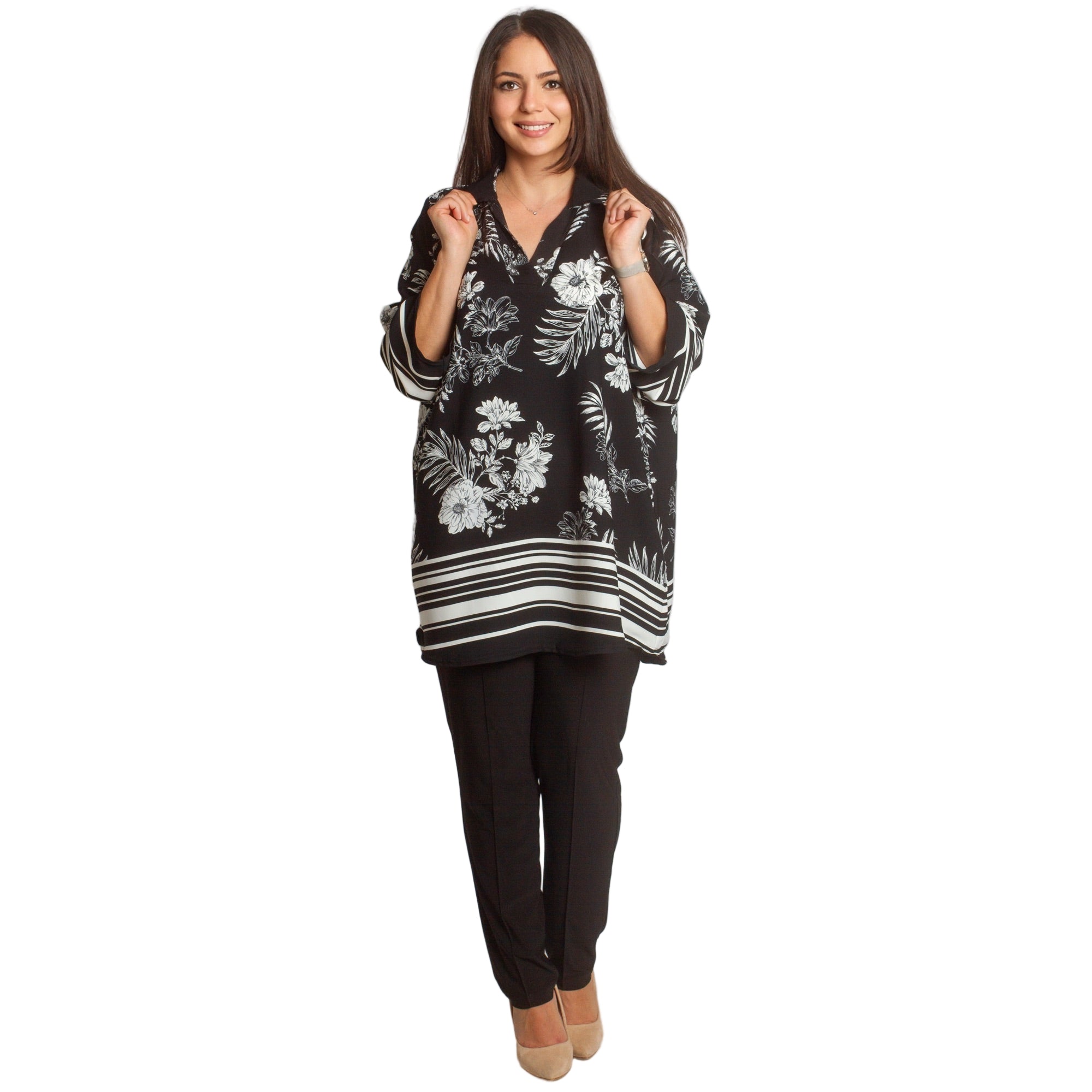 Ριχτή μπλούζα σε μεγάλα μεγέθη με V λαιμό και print