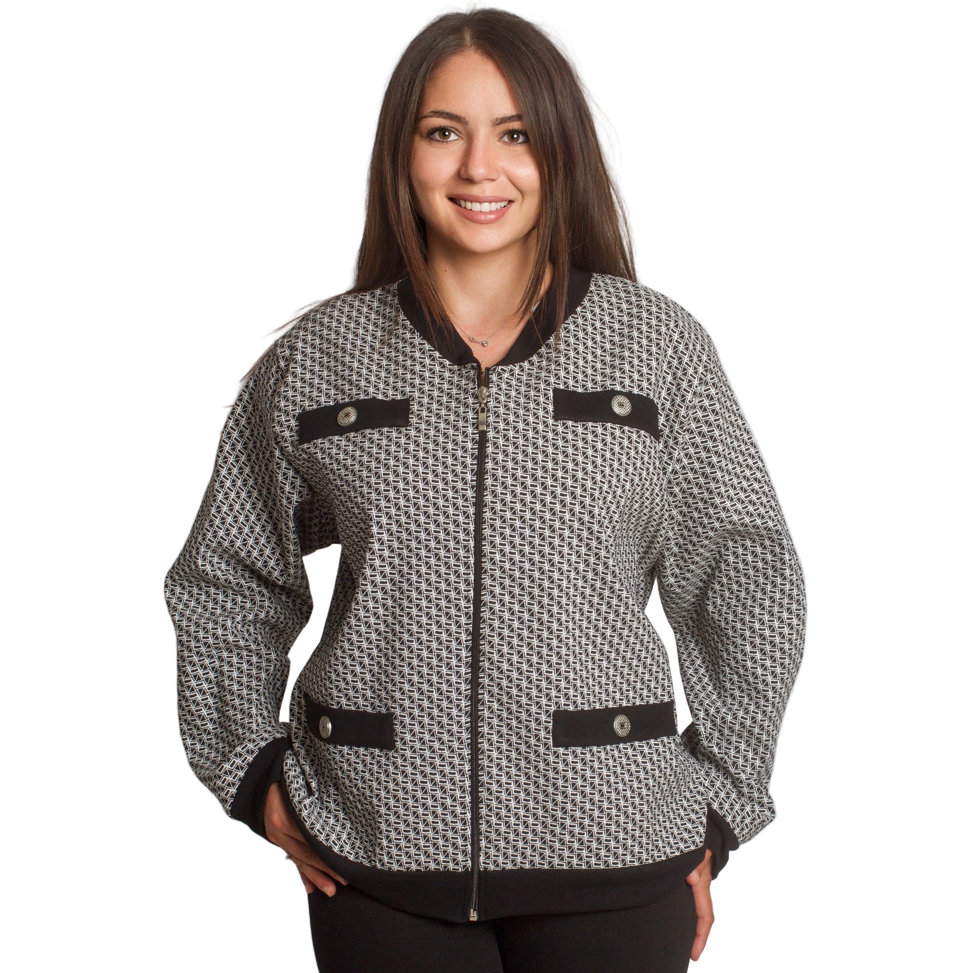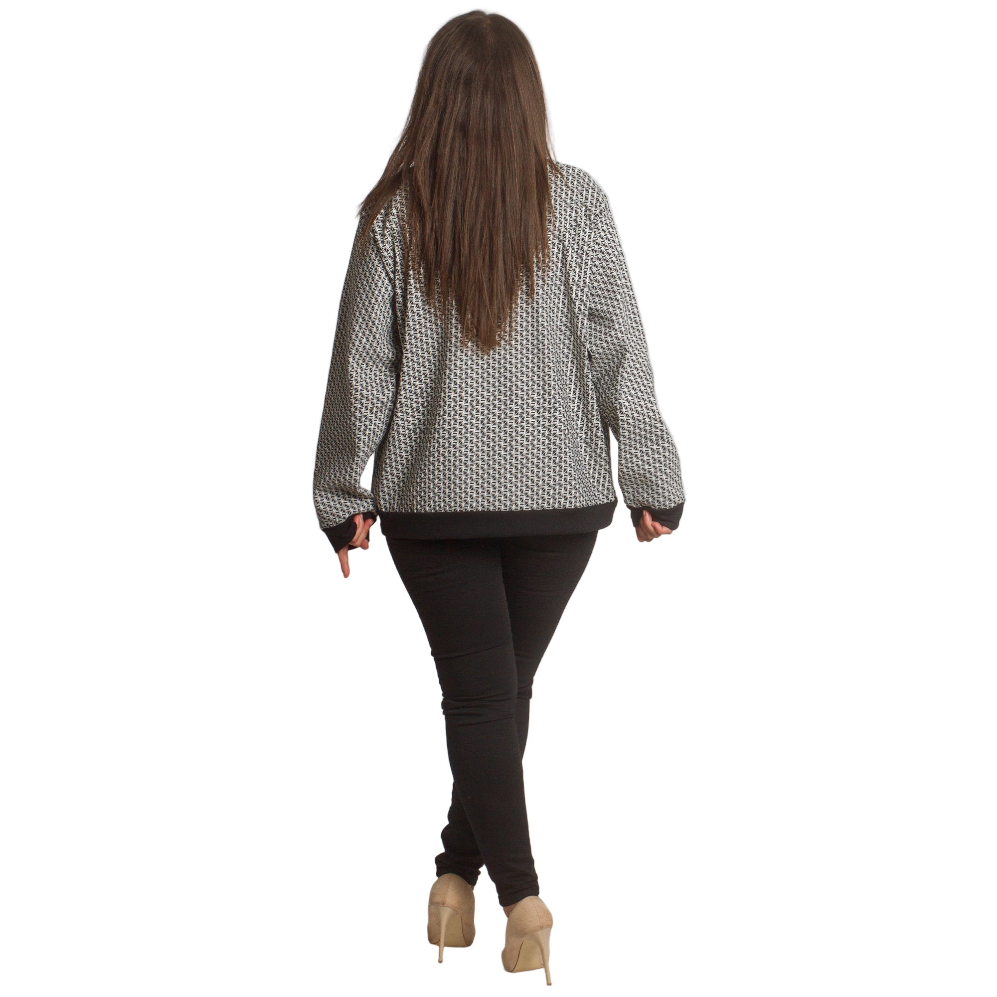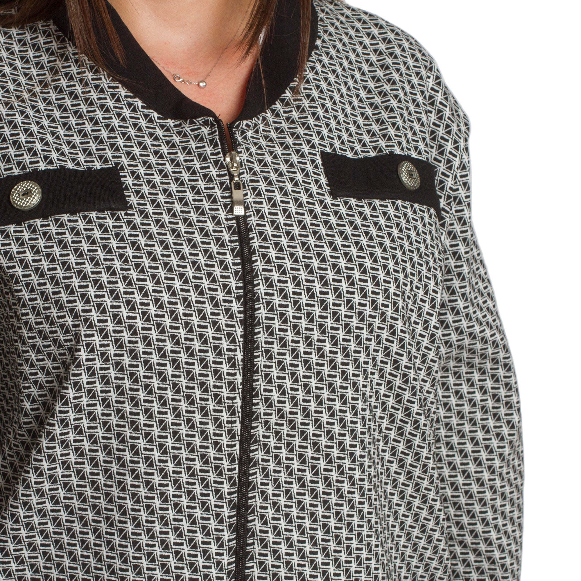 Στιλάτη ζακέτα με γεωμετρικό σχέδιο σε μεγάλα μεγέθη