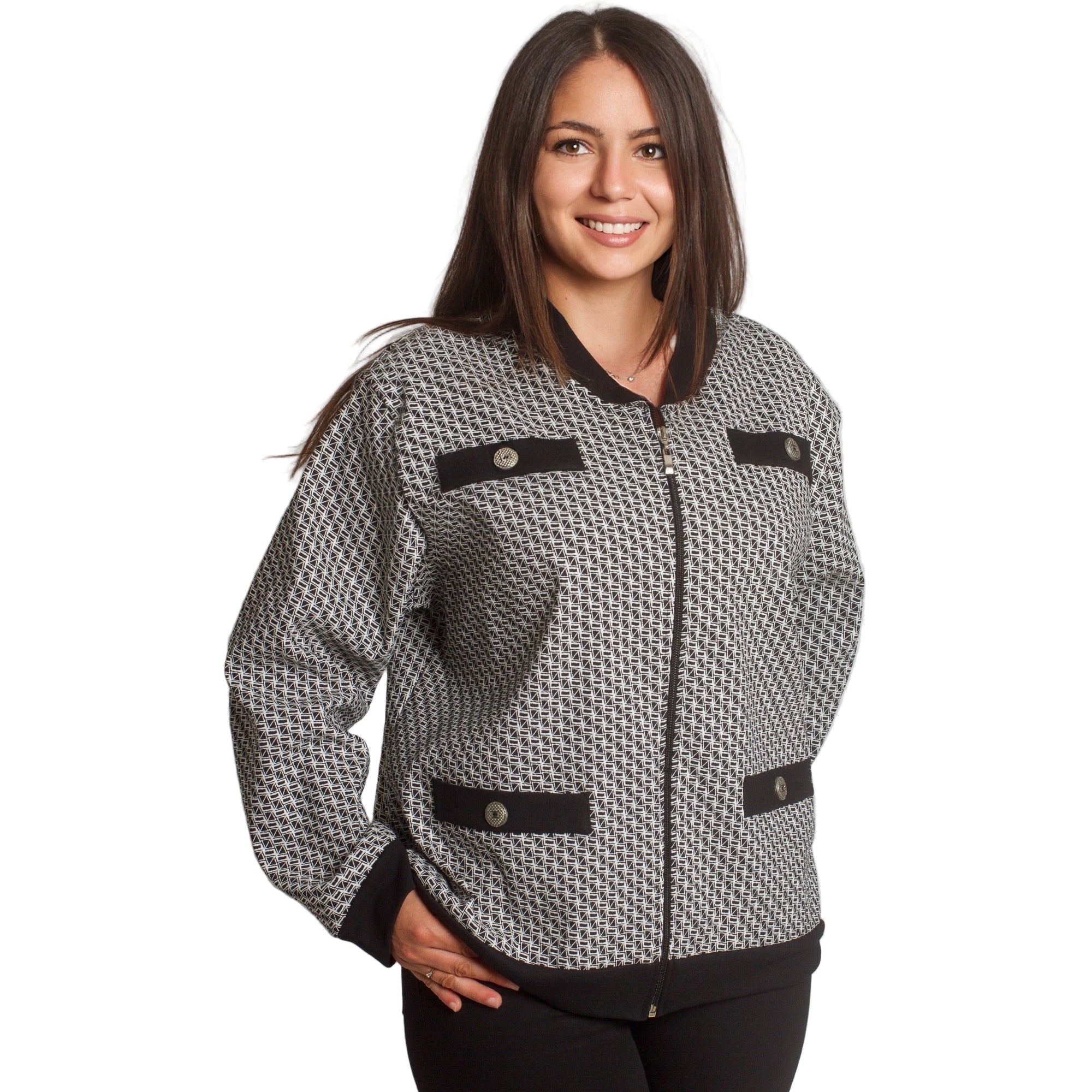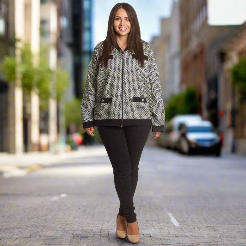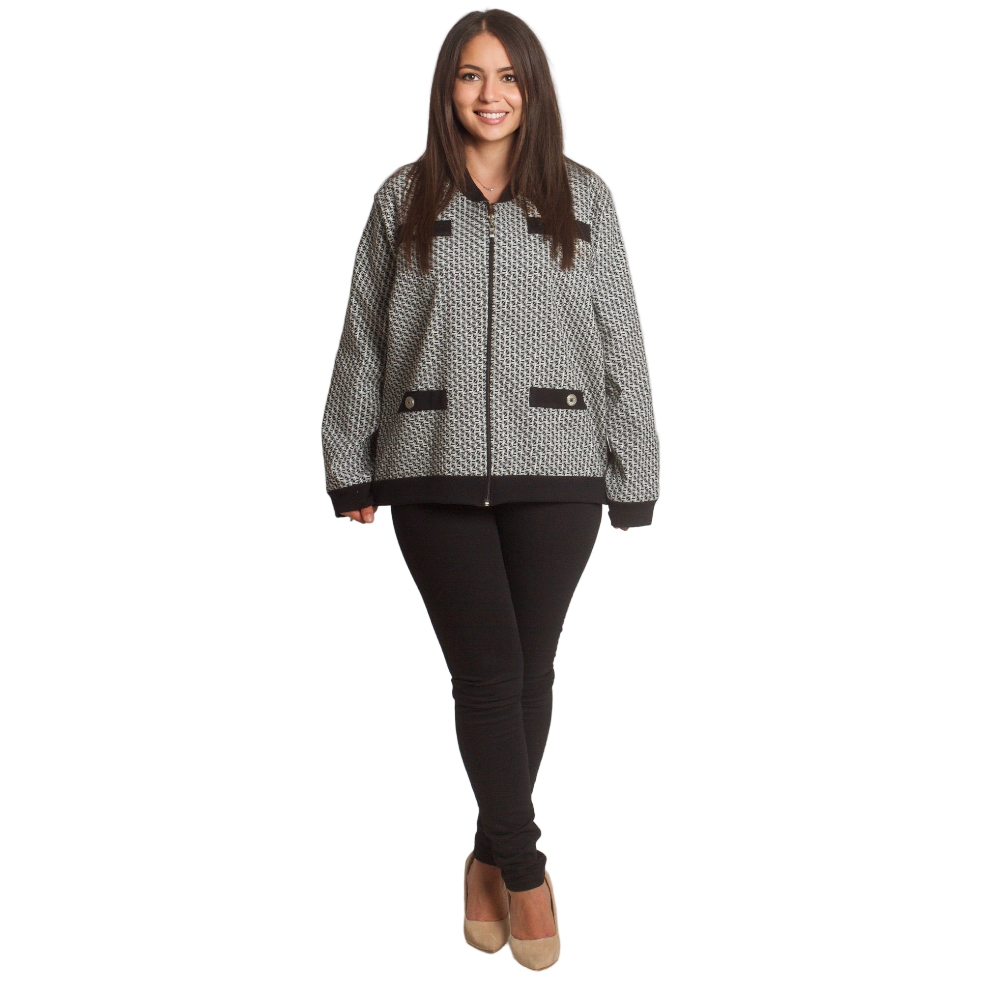 Στιλάτη ζακέτα με γεωμετρικό σχέδιο σε μεγάλα μεγέθη