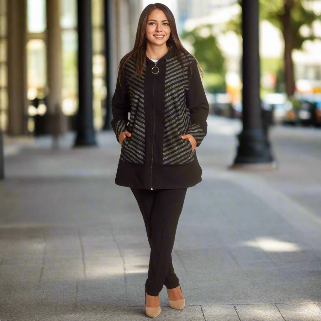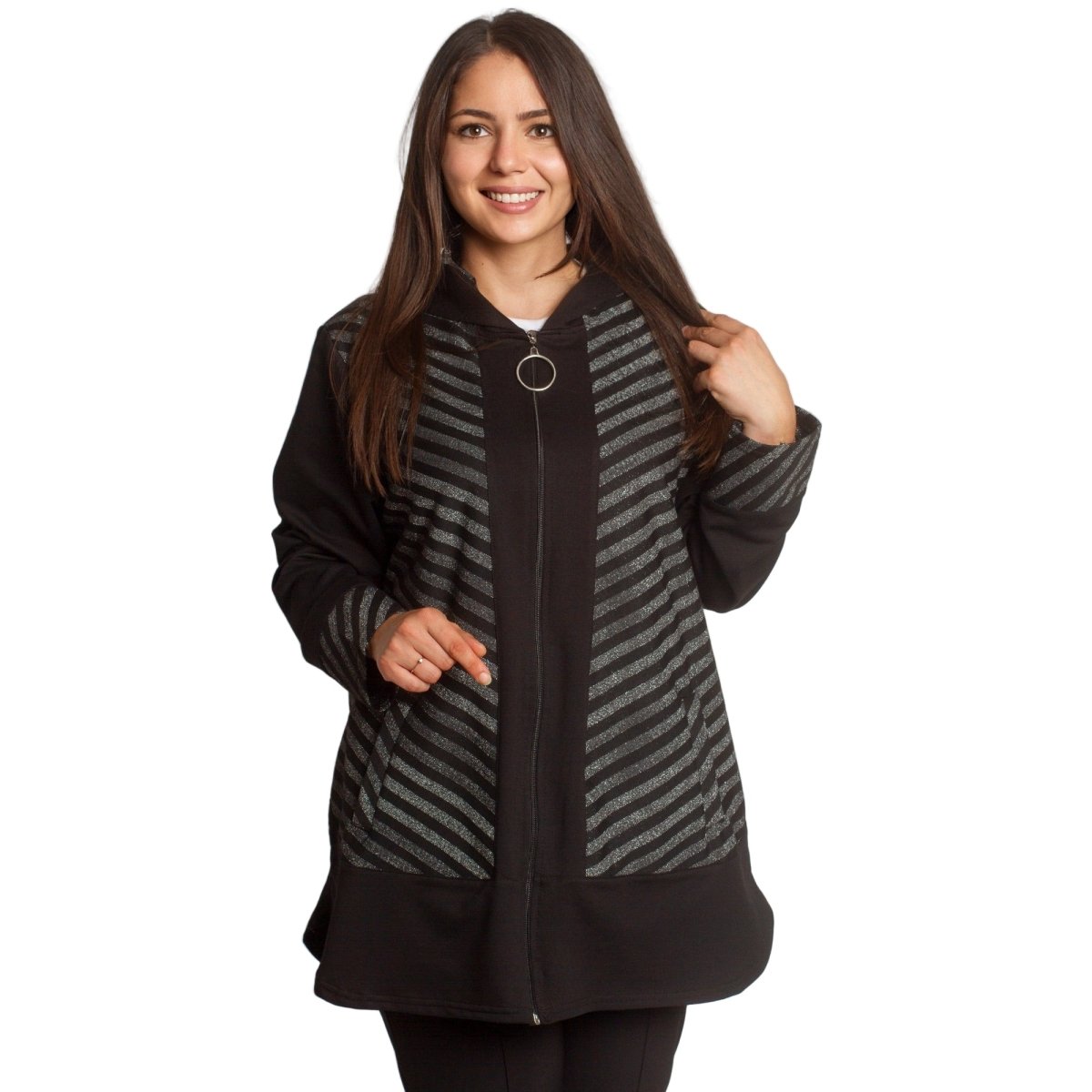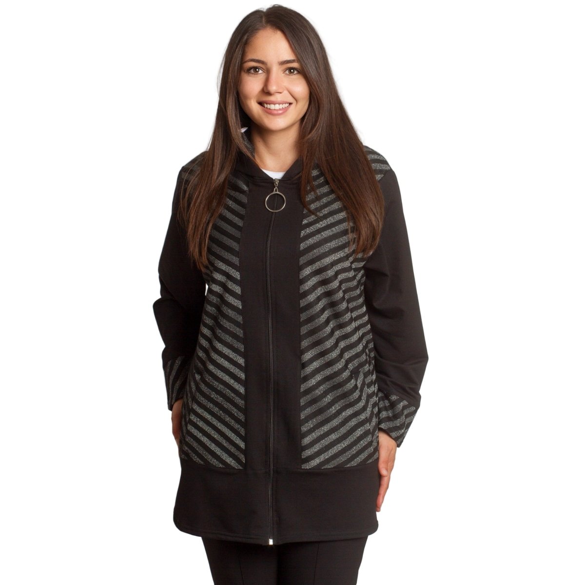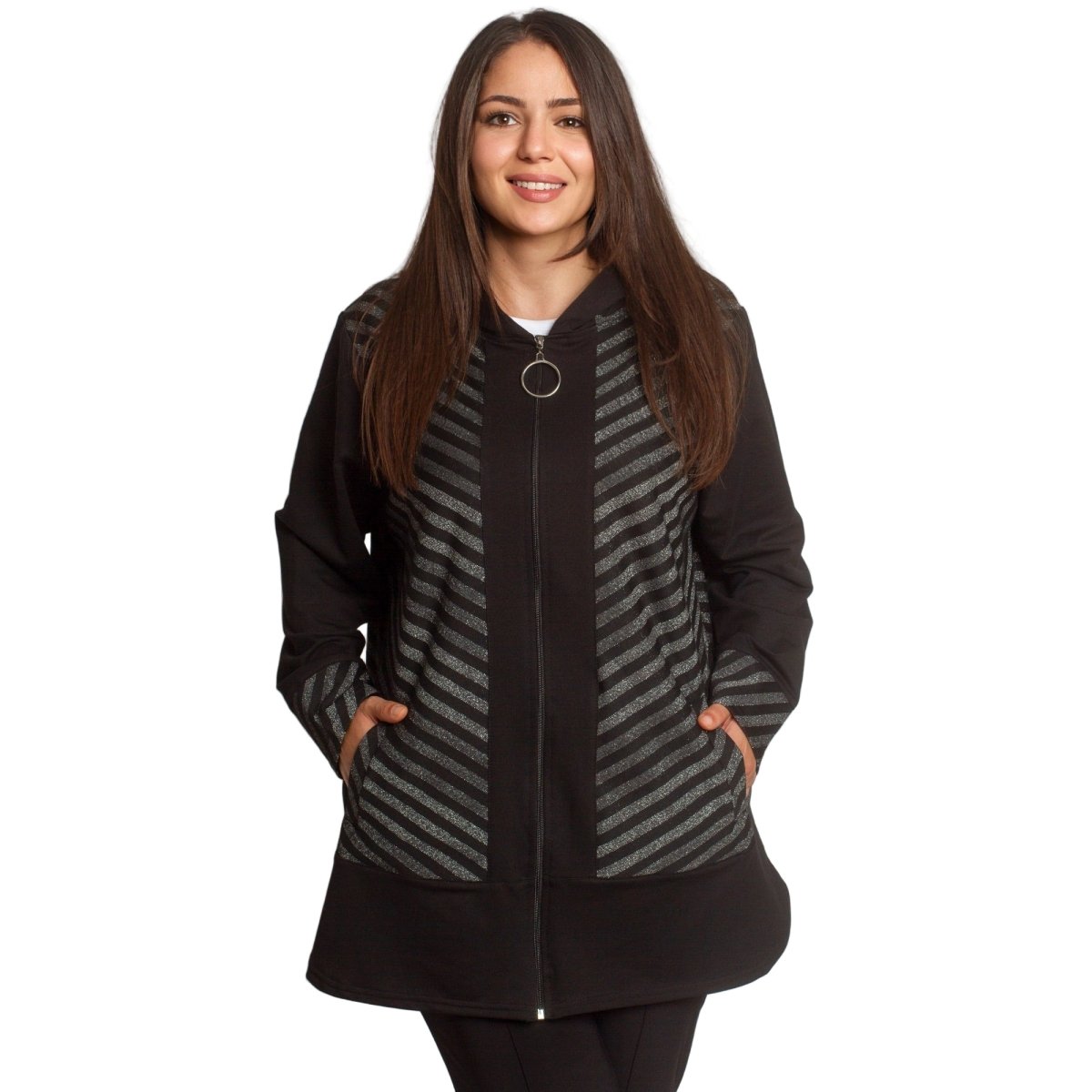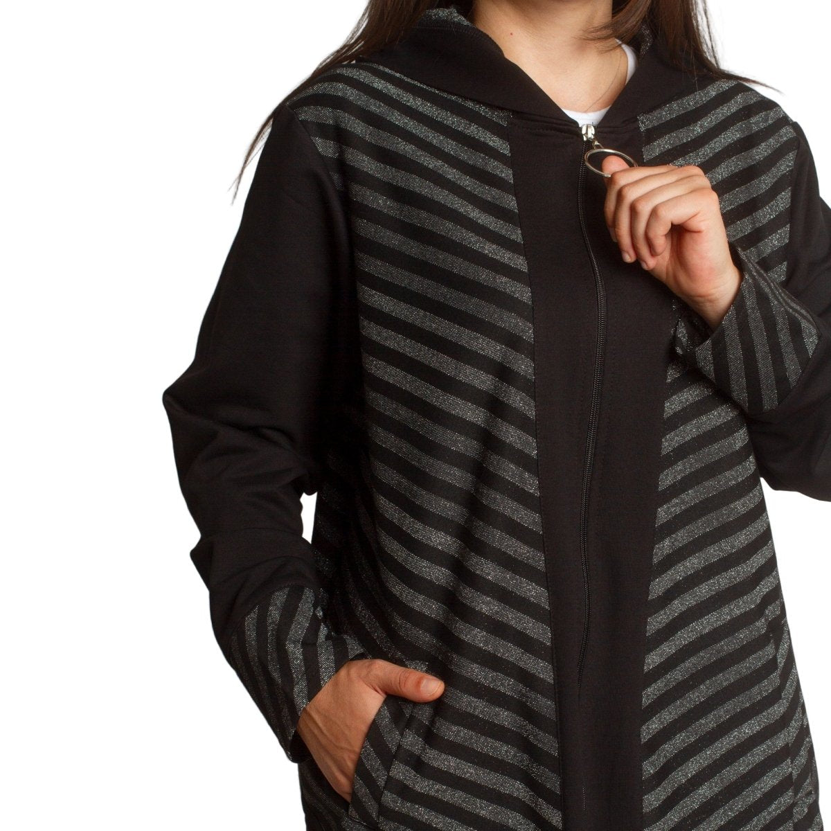 Στιλάτη ζακέτα μεγάλου μεγέθους με κουκούλα και ρίγες