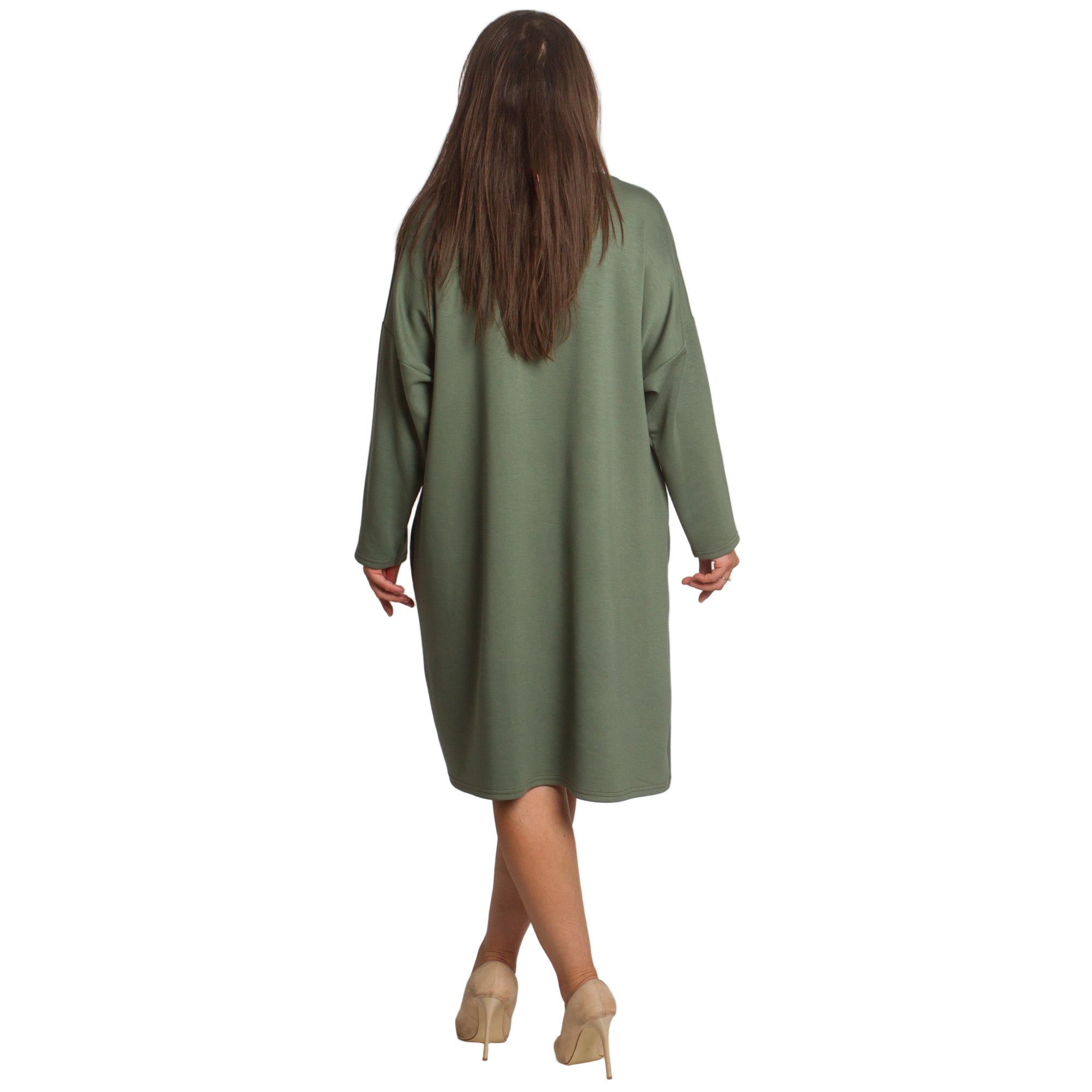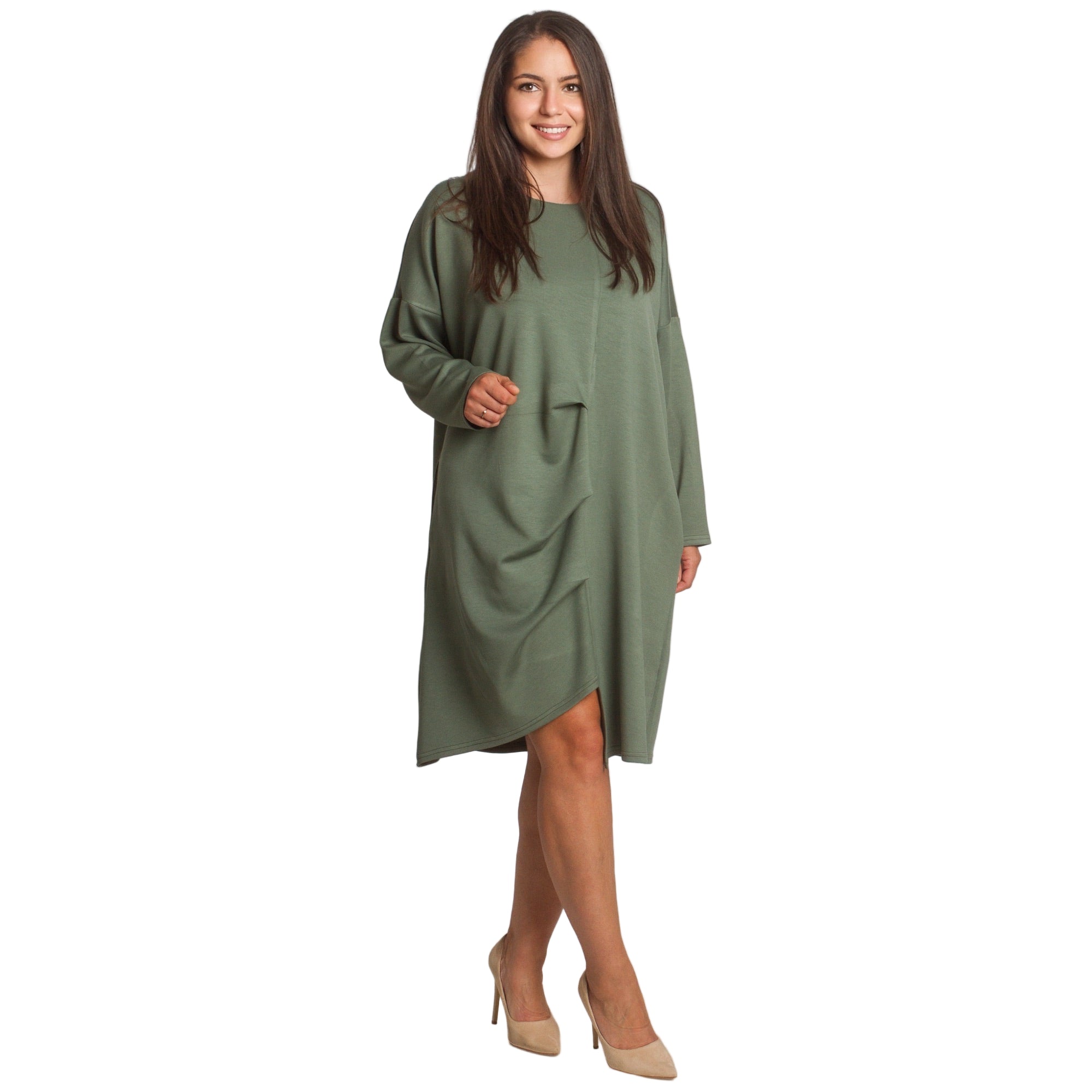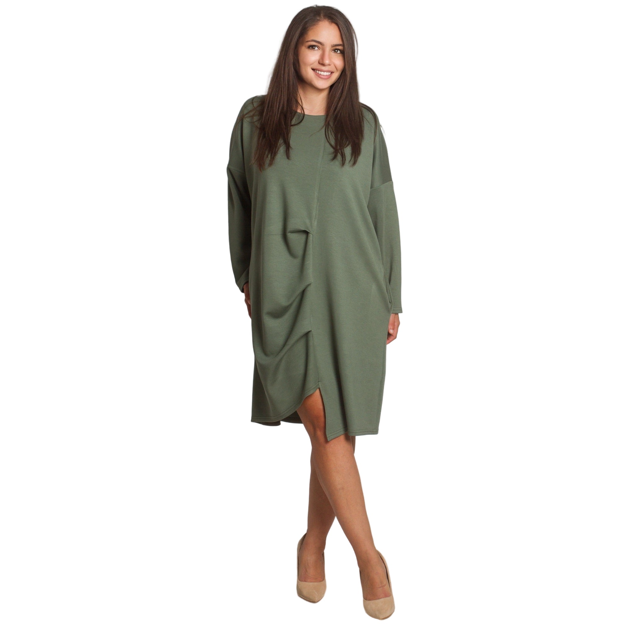 Χαλαρό πράσινο φόρεμα με τσέπες και ασύμμετρες πιέτες